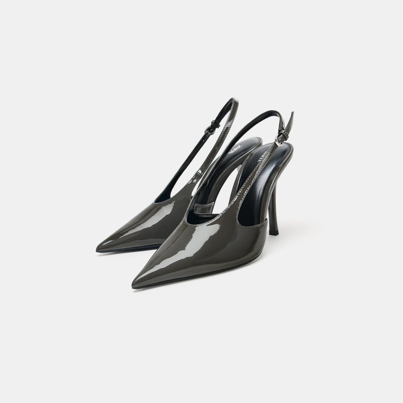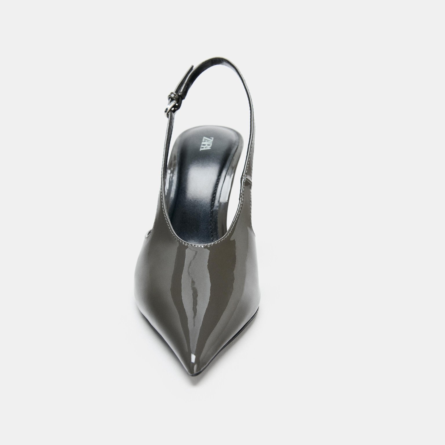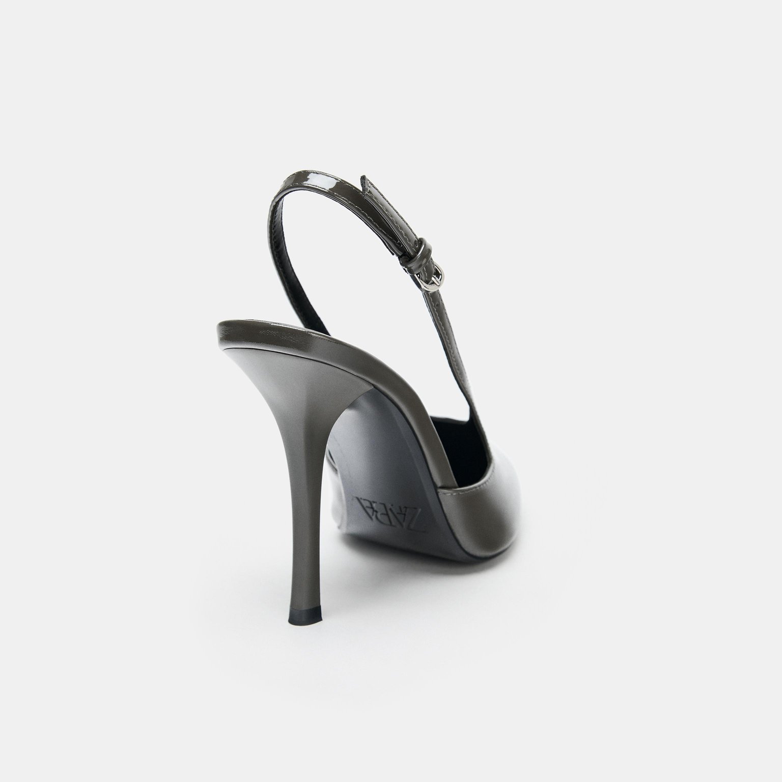 حذاء سلاباك بتأثير لامع – لون رمادي – Grey (Faux Patent Slingback Shoes) حذاء أنيق بتأثير لامع يمنح مظهرًا عصريًا راقيًا، يتميز بسير خلفي قابل للتعديل وكعب رفيع يمنح إطلالة أنثوية جذابة. تصميمه البسيط يجعله مناسبًا للإطلالات اليومية والمسائية.