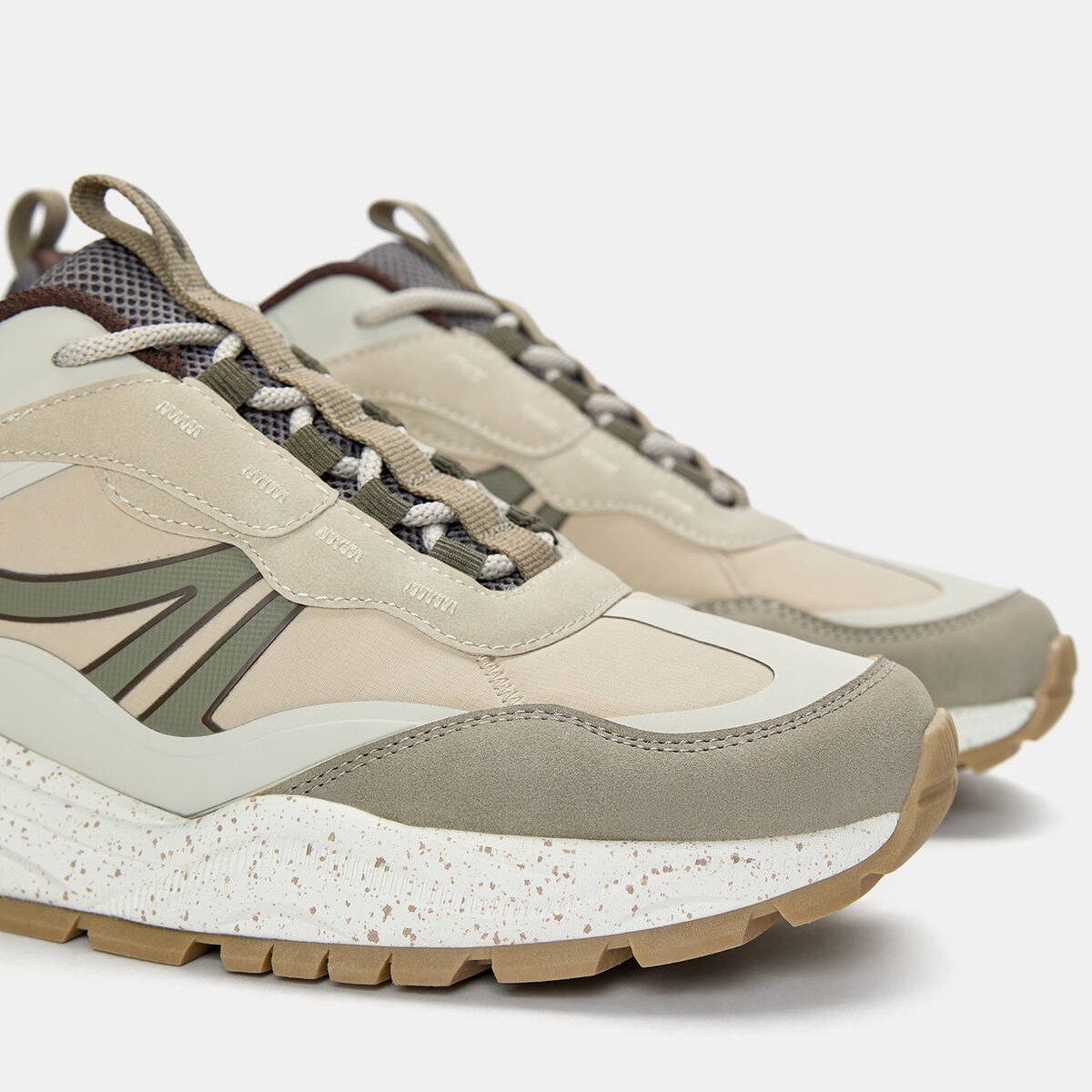 Pull & Bear – حذاء رياضي رجالي بتصميم متعدد الأجزاء ونعل سميك بلون إكرو