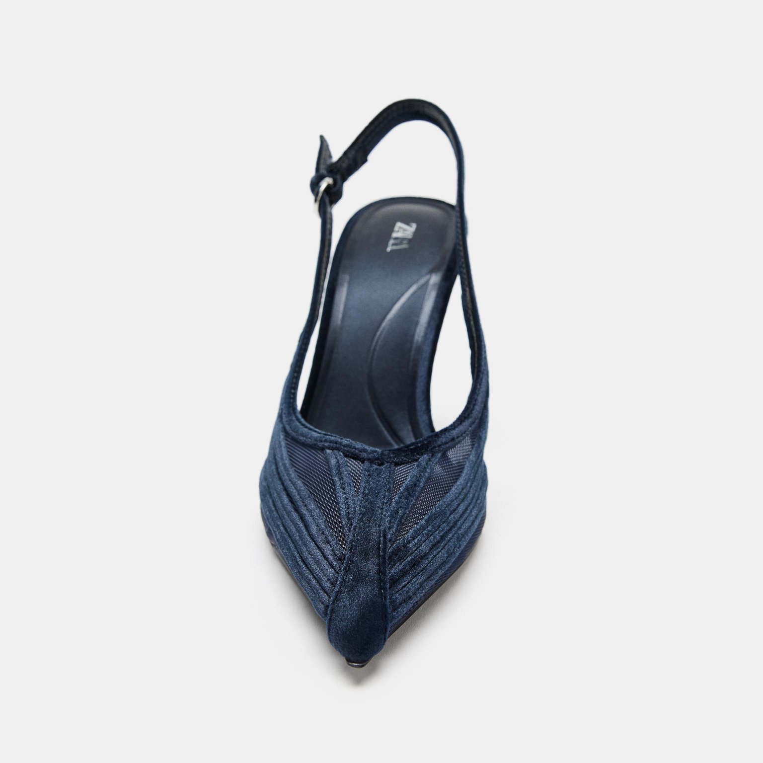 حذاء بكعب عالٍ بتصميم مشترك – لون أزرق – Blue (Combined High-Heel Shoes) حذاء أنيق بتصميم عصري يجمع بين خامات شبكية ومخملية في الجزء العلوي، مع سير خلفي قابل للتعديل لمزيد من الثبات. يأتي بكعب رفيع ومقدمة مدببة تمنح إطلالة أنثوية راقية، مما يجعله خيارًا مثاليًا للإطلالات المسائية والمناسبات.