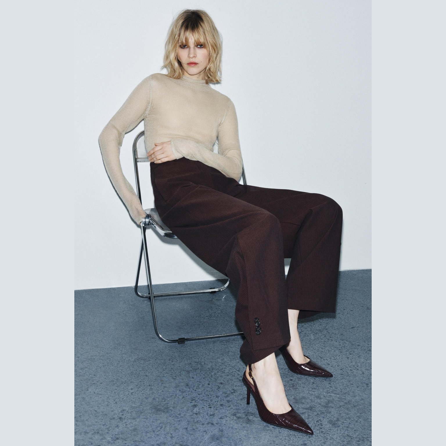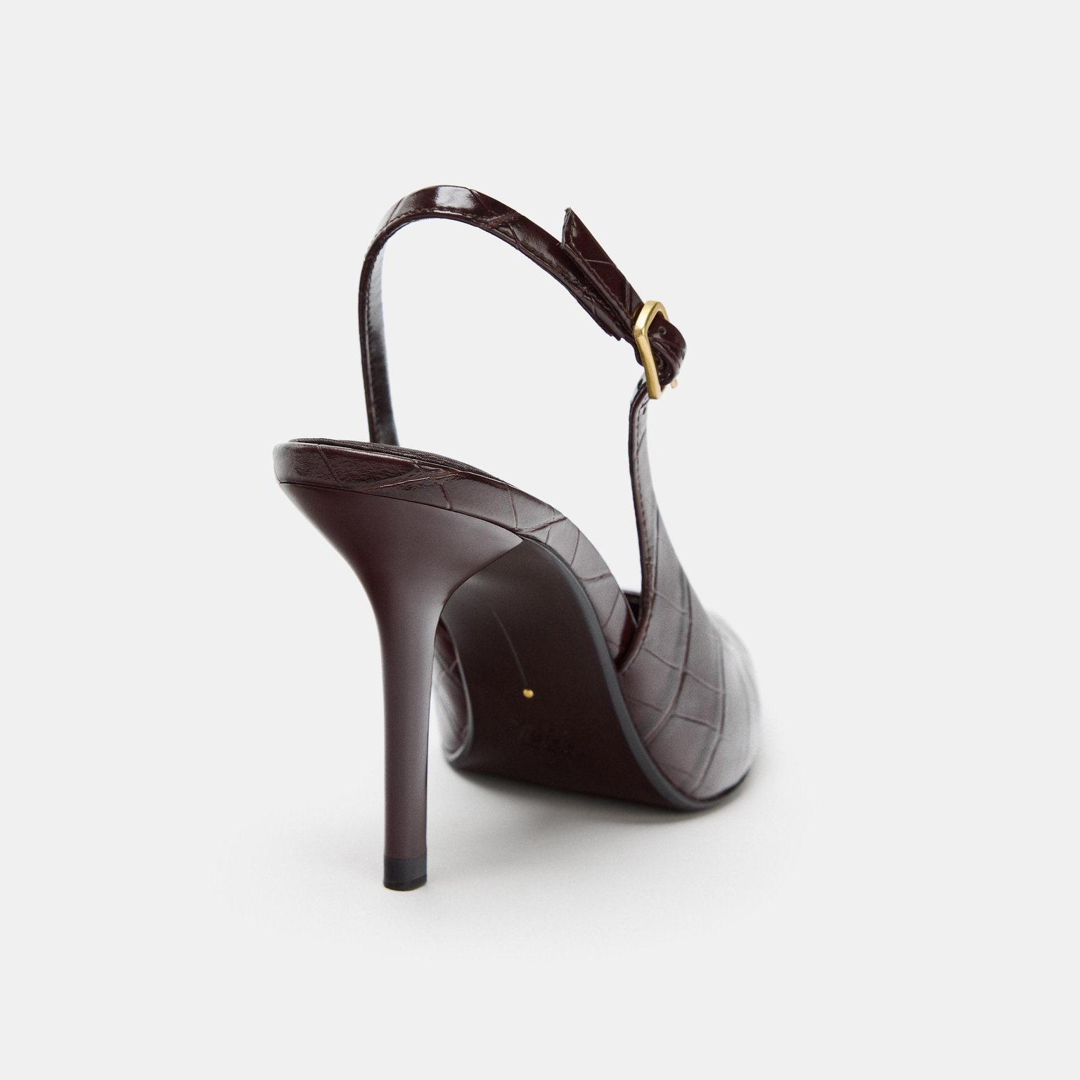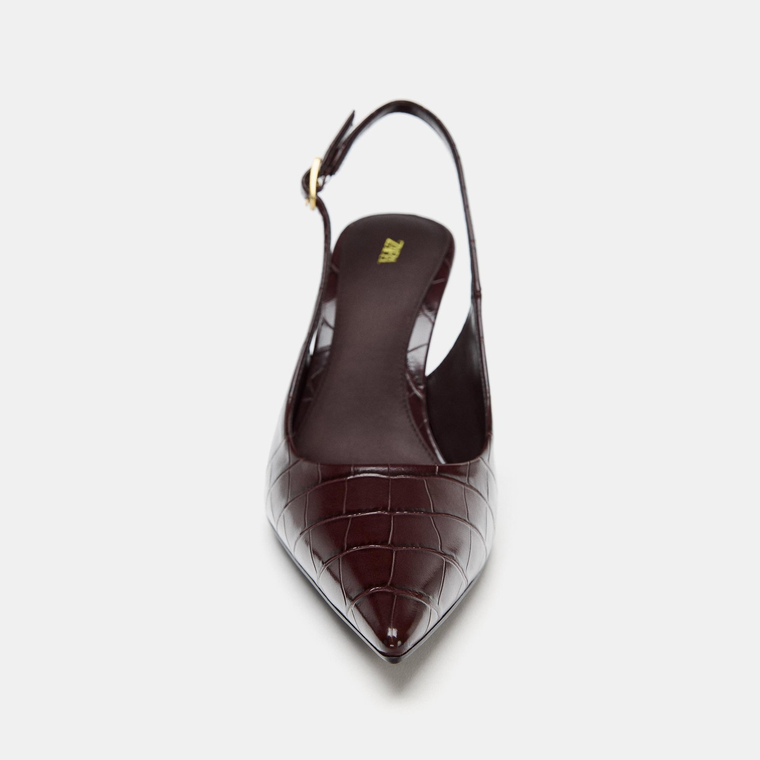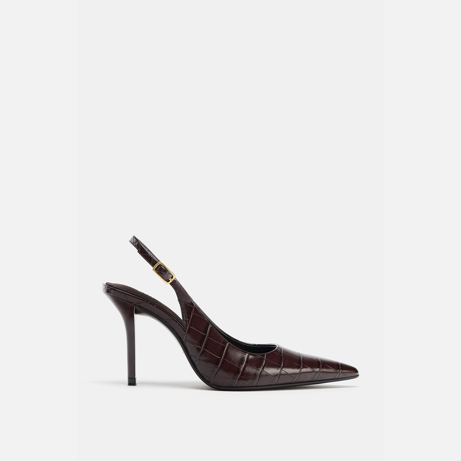 حذاء سلاباك بنقشة بارزة – لون خمري – Burgundy Red (Embossed Slingback Shoes) حذاء أنيق بتصميم عصري، يتميز بنقشة بارزة على الجزء العلوي تمنح مظهرًا فاخرًا، مع سير خلفي قابل للتعديل لثبات أفضل. يأتي بكعب رفيع ومقدمة مدببة تضيف لمسة أنثوية راقية، مما يجعله مناسبًا للإطلالات اليومية والمسائية.