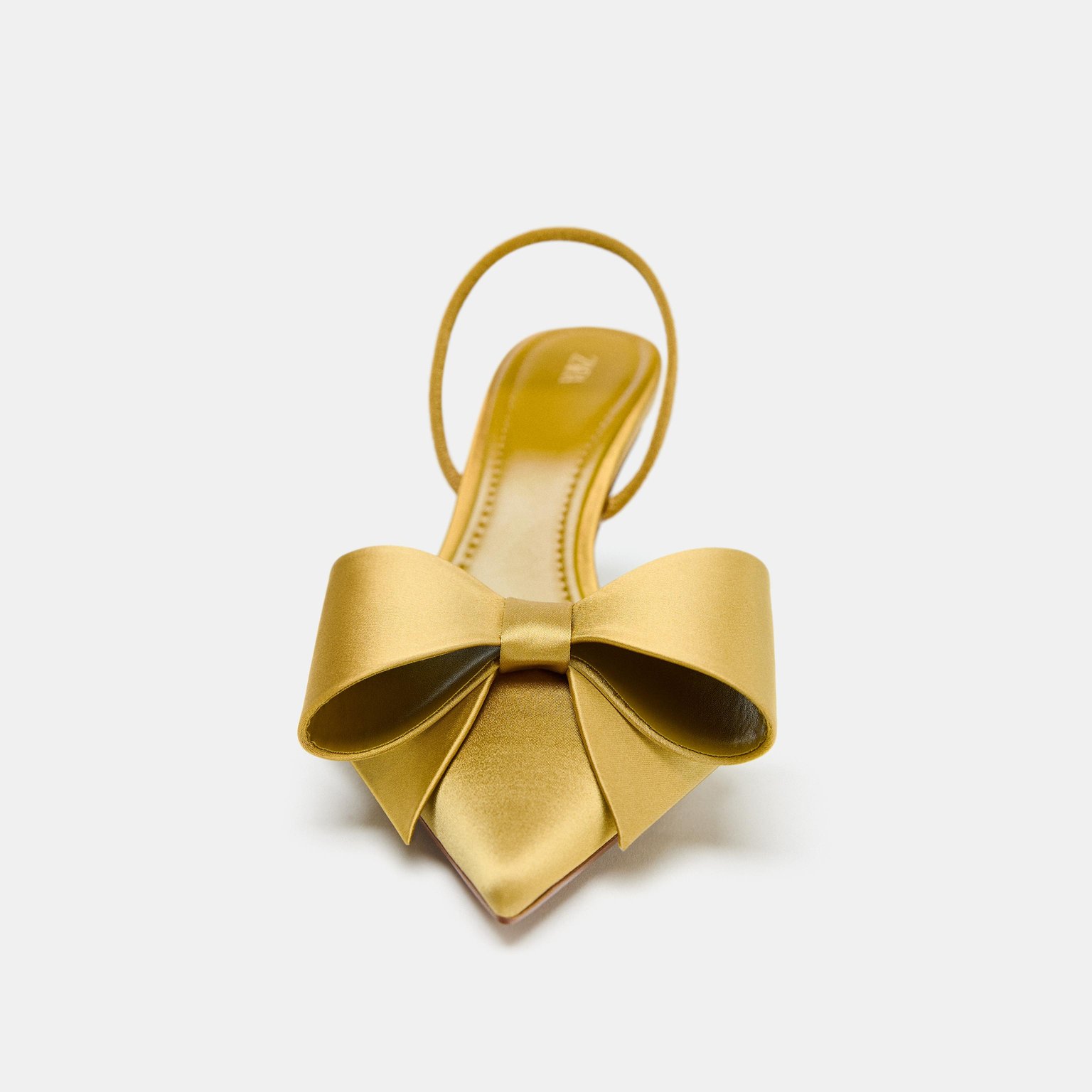 حذاء سلاباك بتأثير الساتان – لون أصفر خردلي – Mustard (Satin‑Effect Slingback Shoes) حذاء أنيق بتصميم ساتان ناعم يمنح لمسة فاخرة، يأتي مع فيونكة كبيرة في الأمام تضيف مظهرًا أنثويًا جذابًا. يتميز بسير خلفي مطاطي لثبات وراحة، إضافة إلى كعب رفيع يمنح إطلالة راقية مناسبة للمناسبات والإطلالات المسائية.