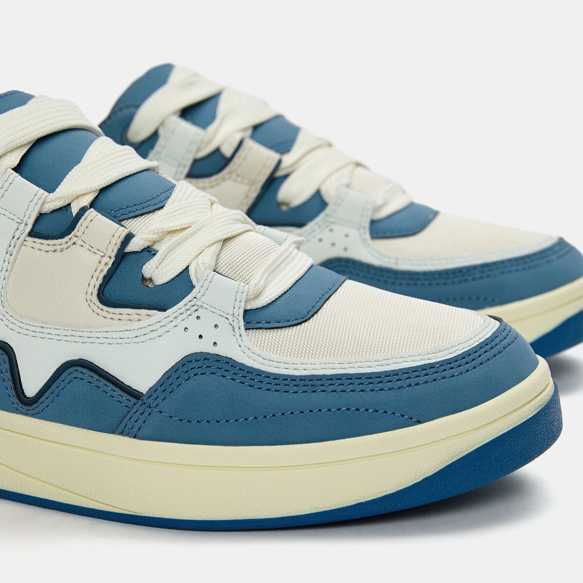 Pull & Bear – حذاء رياضي رجالي بتصميم سكايت متعدد الأجزاء ونعل سميك بلون أزرق