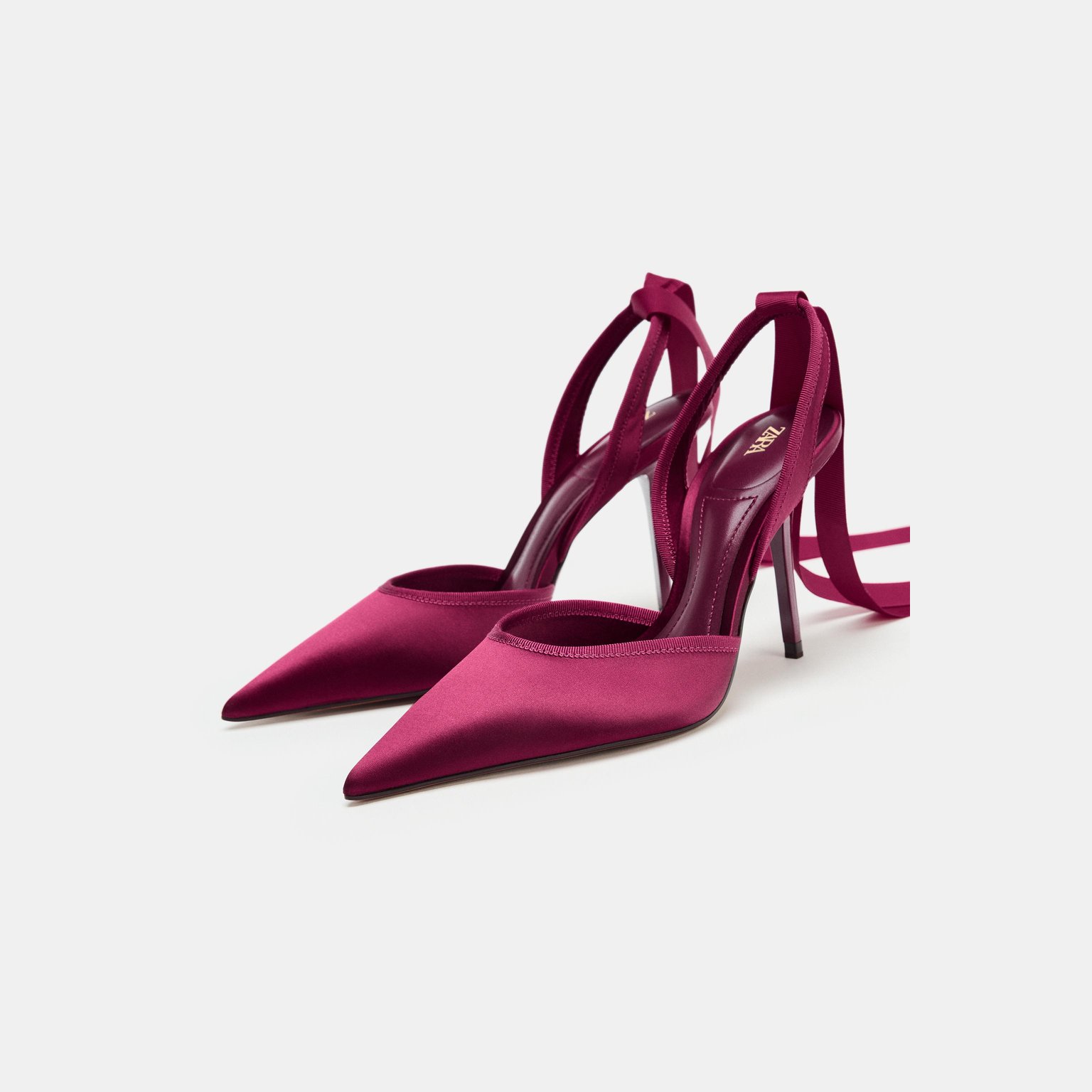 حذاء سلاباك بكعب عالٍ مع سير – لون فوشيا – Fuchsia (Slingback Heeled Shoes with Strap) حذاء أنيق بتصميم ساتان ناعم، يتميز بسير يلتف حول الكاحل لإحكام الثبات، مع كعب رفيع يمنح إطلالة أنثوية راقية. يأتي بمقدمة مدببة تضيف لمسة عصرية، مما يجعله خيارًا مثاليًا للإطلالات المسائية والمناسبات.