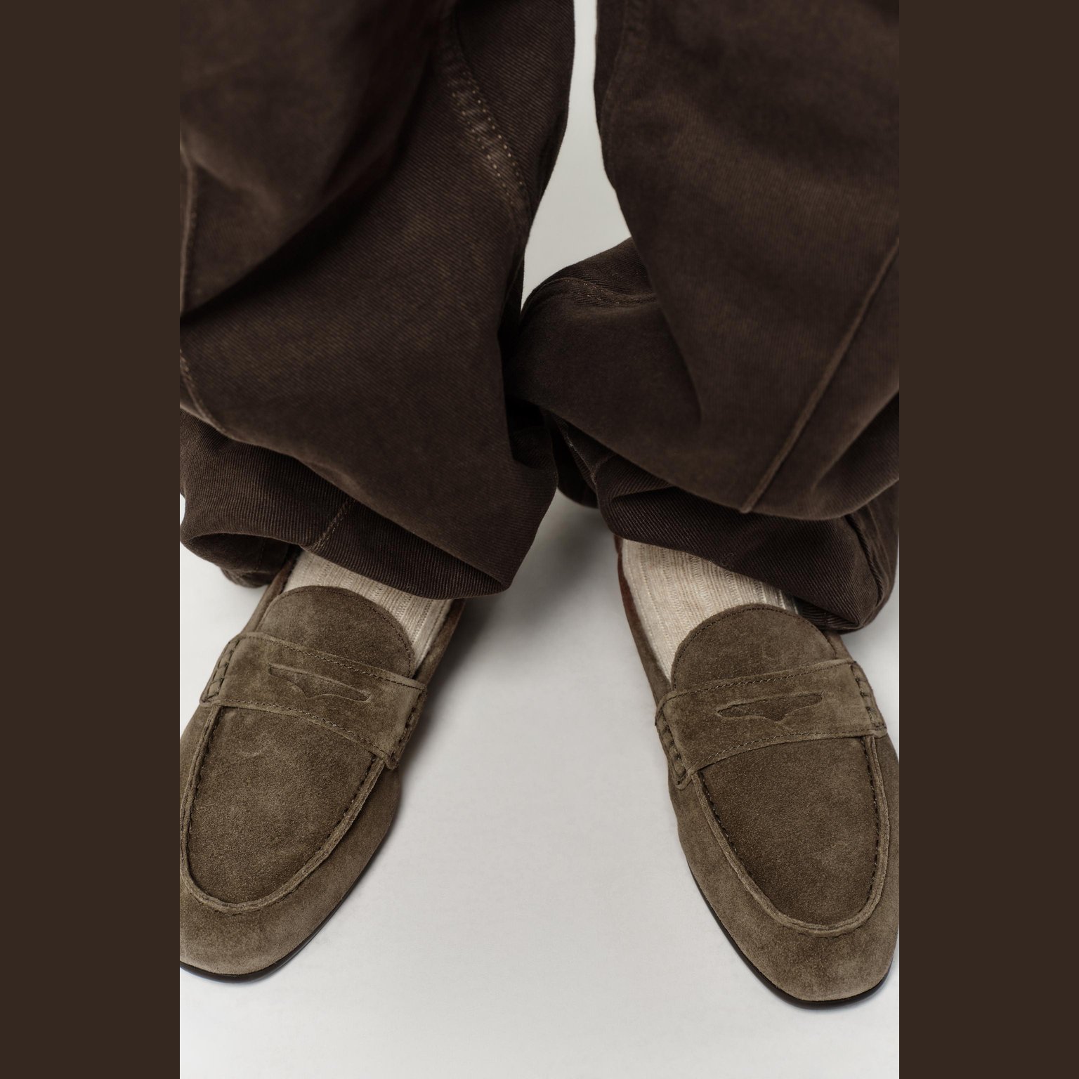 لوفر من الشمواه الطبيعي – لون رمادي توب – Taupe Grey (Split Suede Loafers) لوفر كلاسيكي أنيق مصنوع من الشمواه الطبيعي، يتميز بتصميم بسيط وراقي مع شريط أمامي بتفصيلة البيني التقليدية. يأتي بمقدمة مستديرة ونعل مريح بارتفاع خفيف، مما يجعله خيارًا مثاليًا للإطلالات اليومية والكاجوال الراقية.