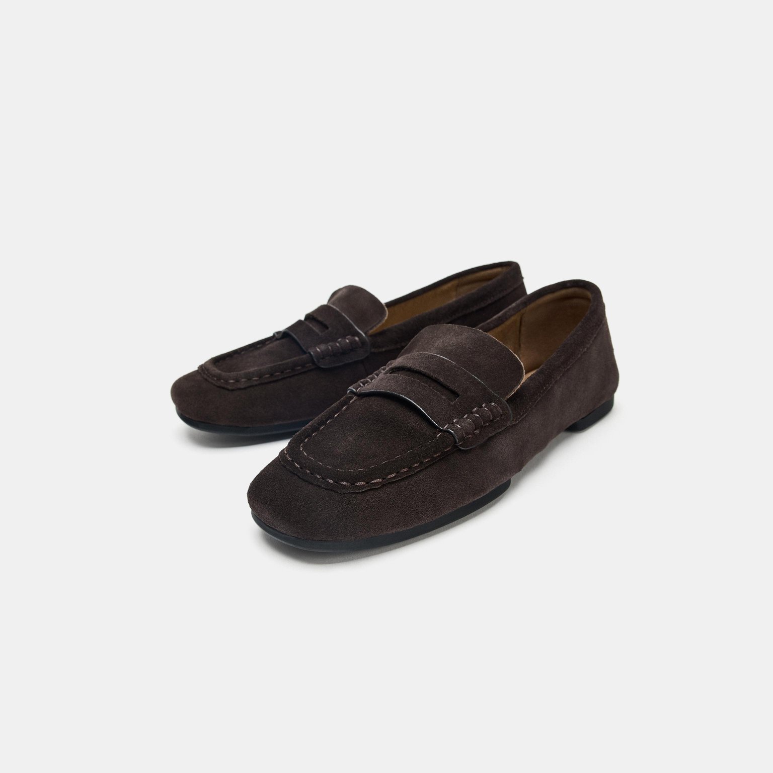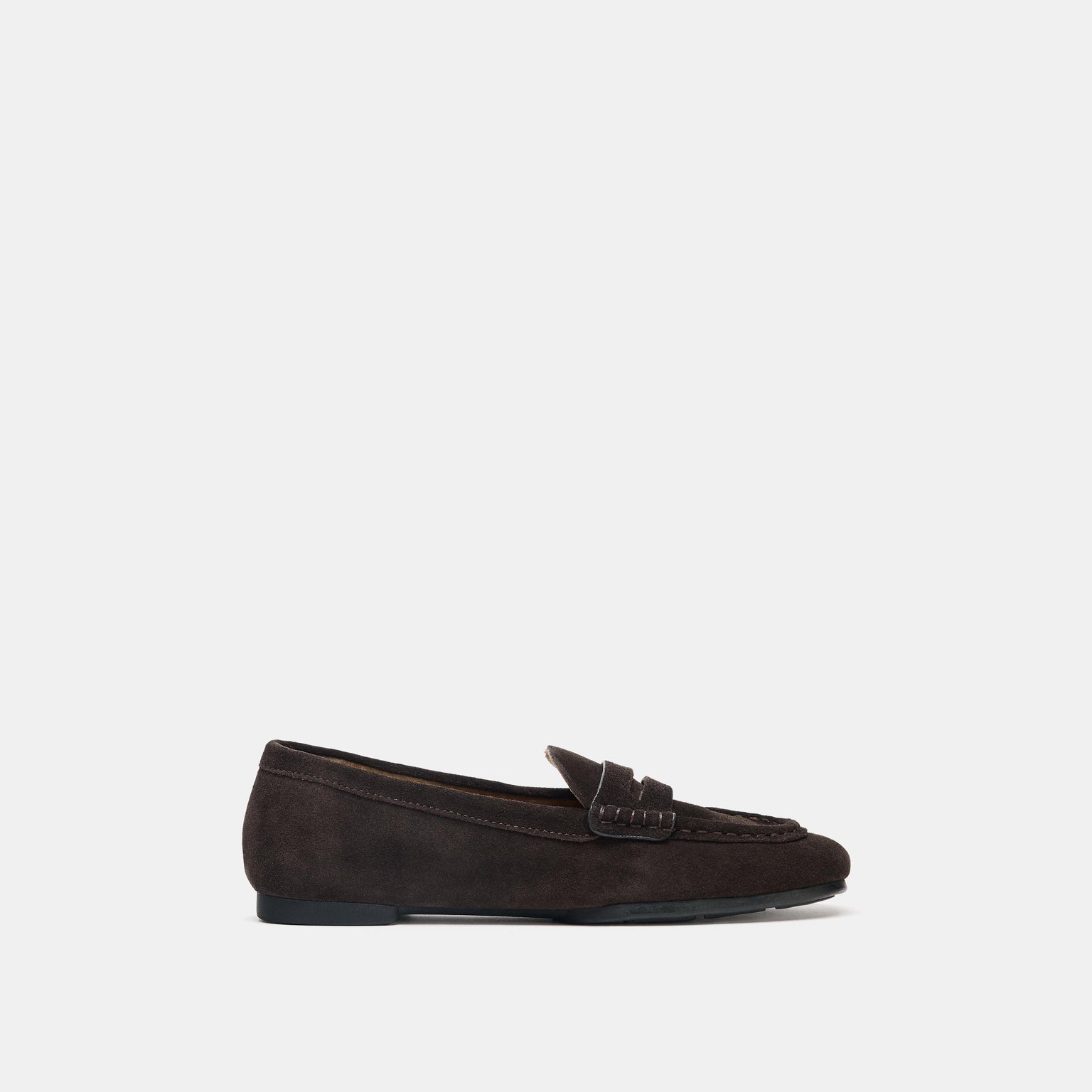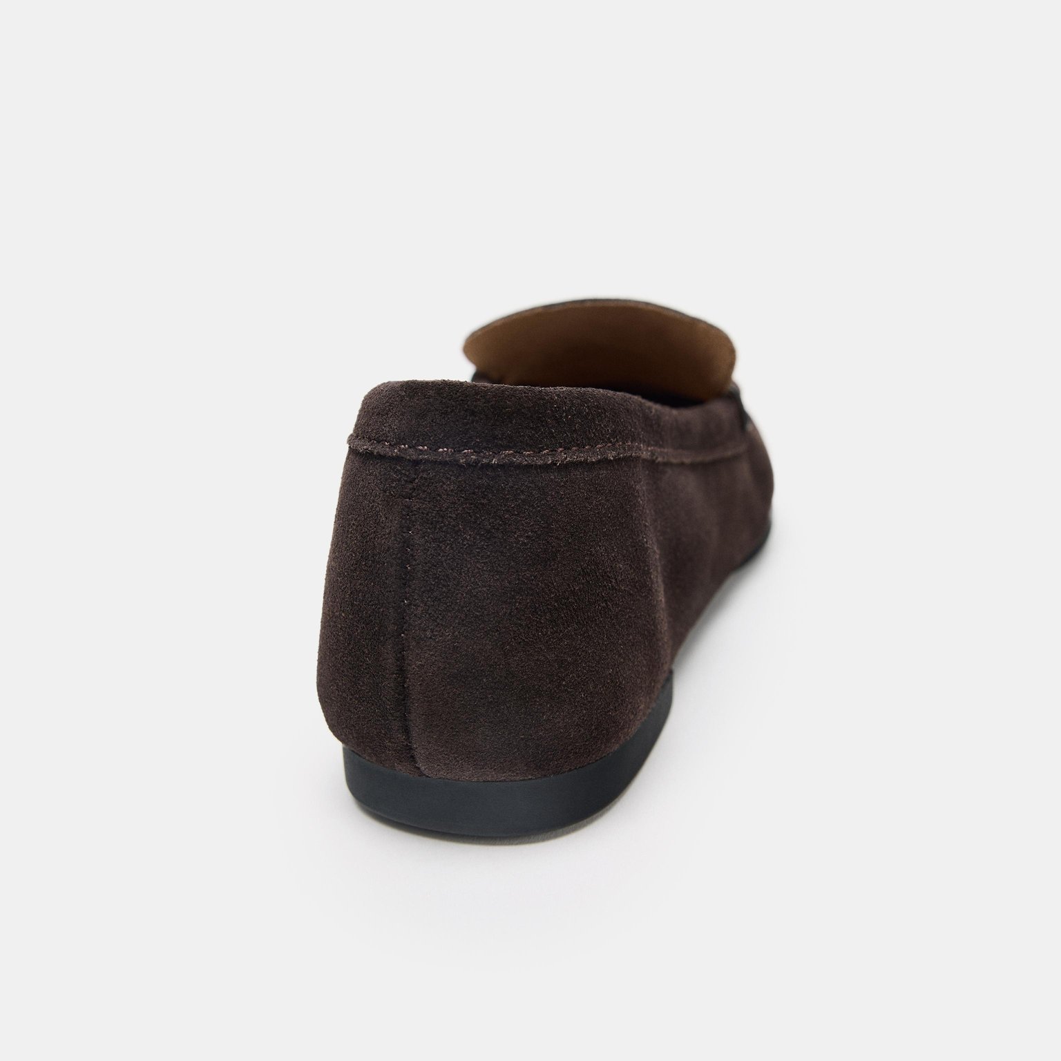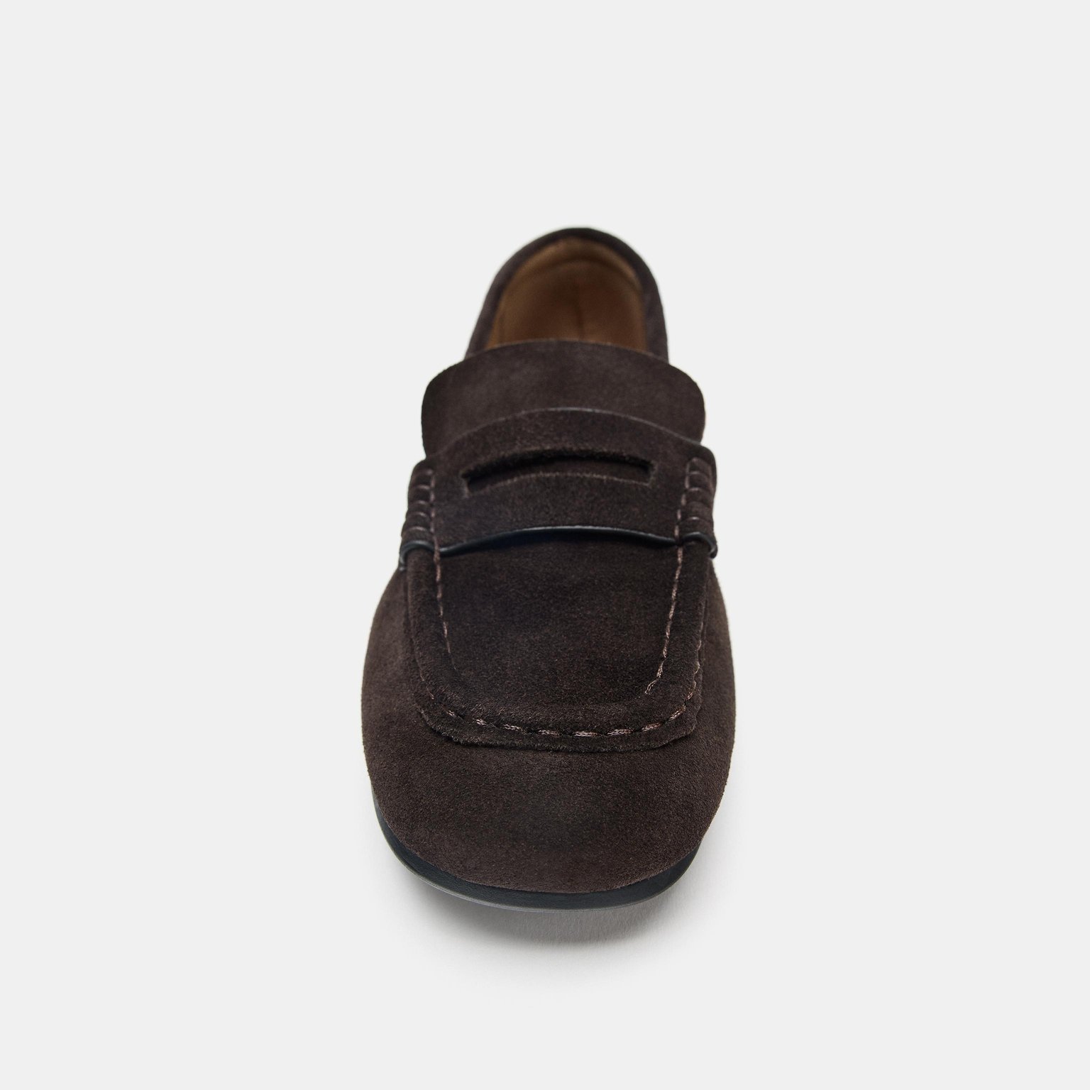 لوفر من الشمواه الطبيعي – لون بني شوكولاتة – Chocolate Brown (Split Suede Loafers) لوفر كلاسيكي أنيق مصنوع من الشمواه الطبيعي، يتميز بتصميم بسيط وراقي مع شريط أمامي بتفصيلة البيني التقليدية. يأتي بمقدمة مستديرة ونعل مريح بارتفاع خفيف، مما يجعله خيارًا مثاليًا للإطلالات اليومية والكاجوال الراقية.