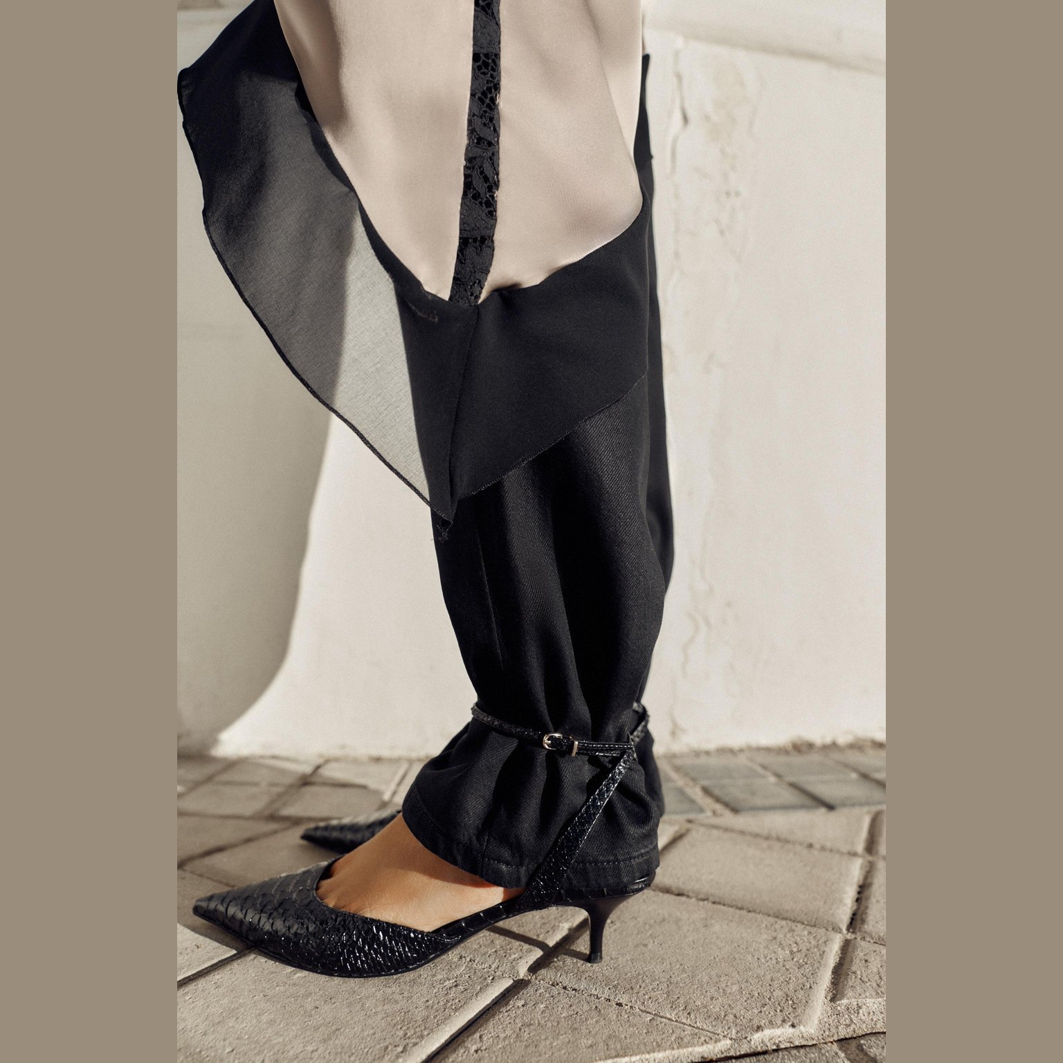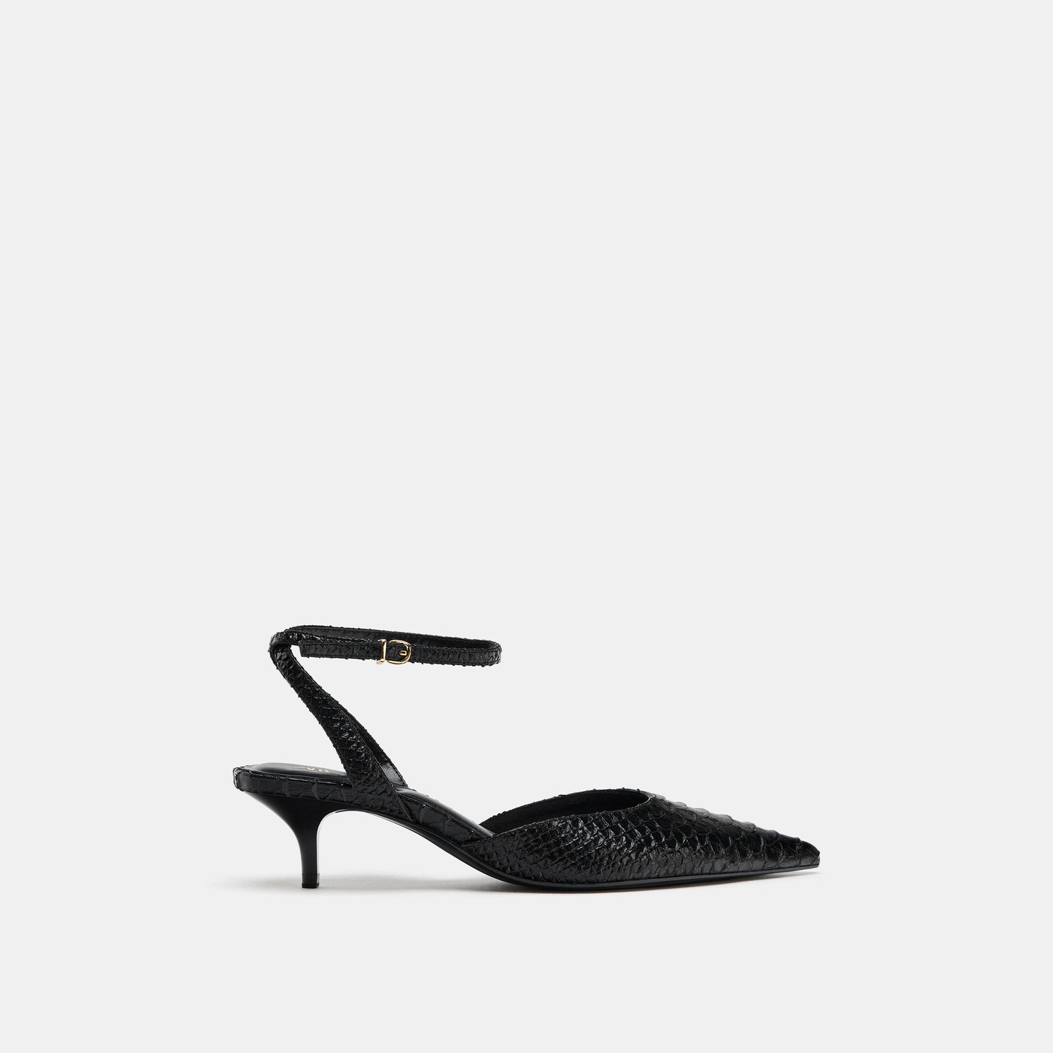 حذاء سلاباك بكعب صغير مع نقش بارز – لون أسود – Black (Embossed Slingback Shoes) حذاء أنيق بتصميم عصري، يتميز بنقشة بارزة على الجزء العلوي تضيف لمسة فاخرة. يأتي بسير خلفي قابل للتعديل مع إبزيم معدني لثبات أفضل، إضافة إلى كعب صغير يمنح راحة وأناقة في آن واحد. تصميمه الأنثوي يجعله مناسبًا للإطلالات اليومية والرسمية.