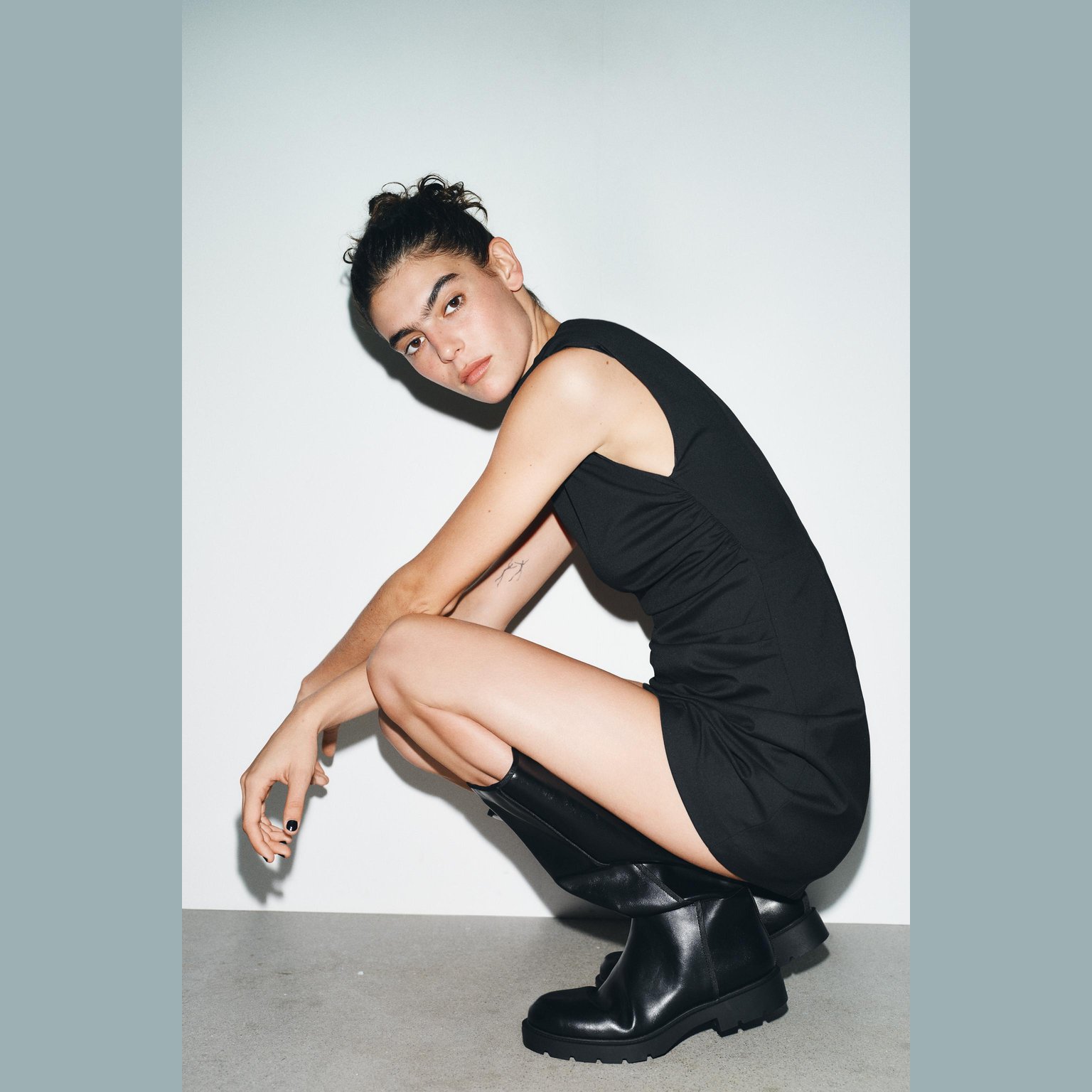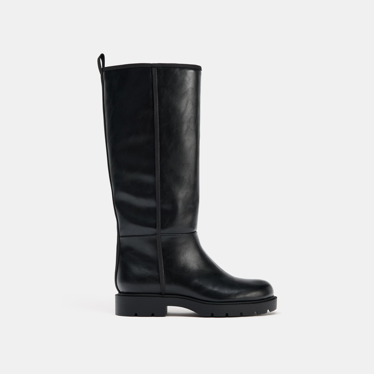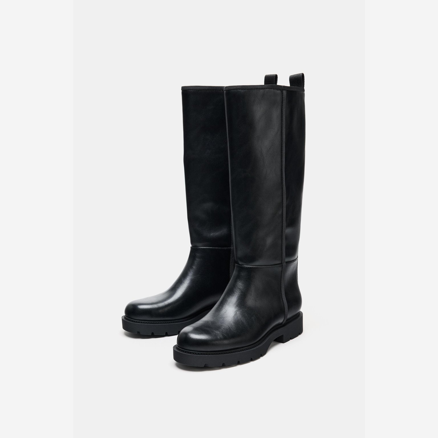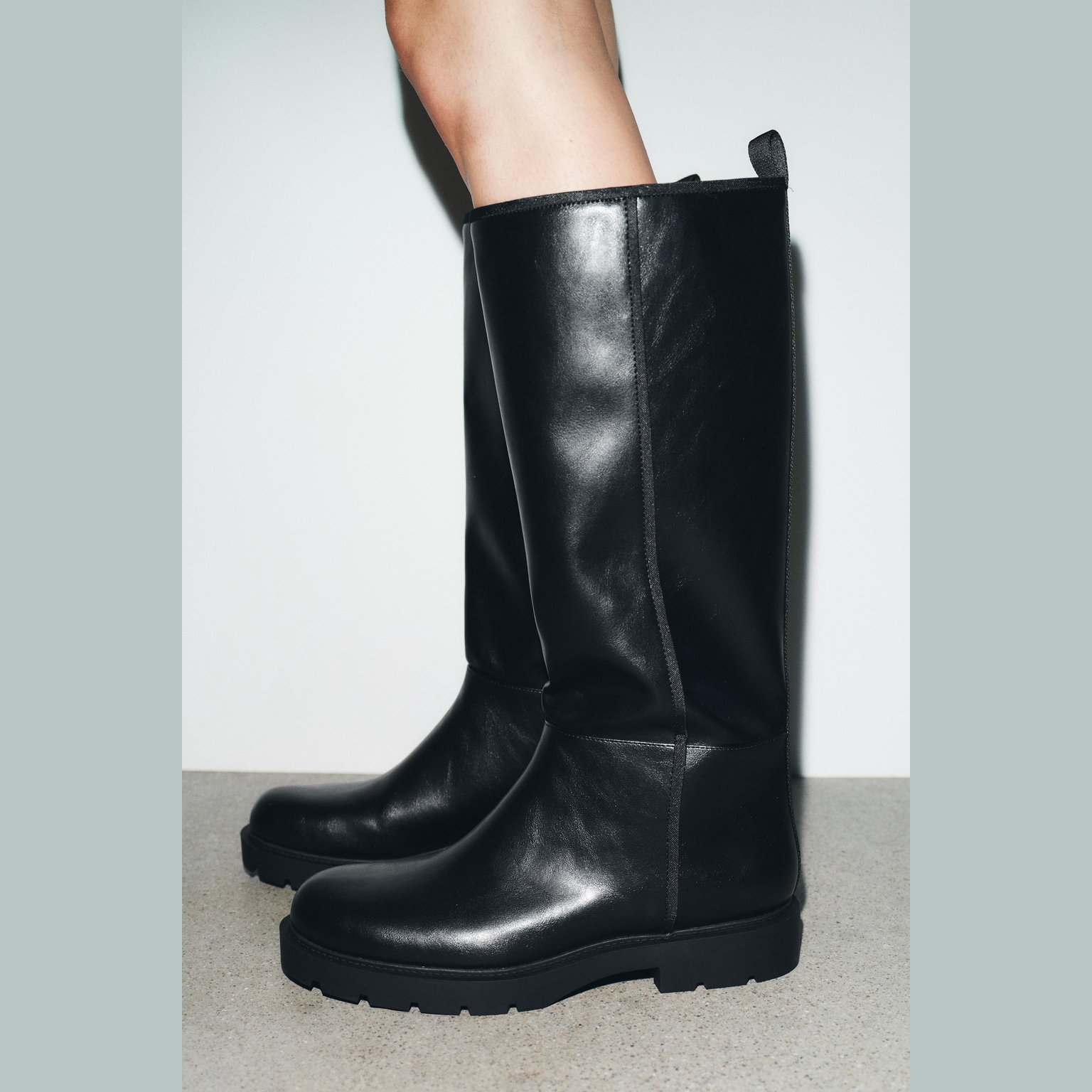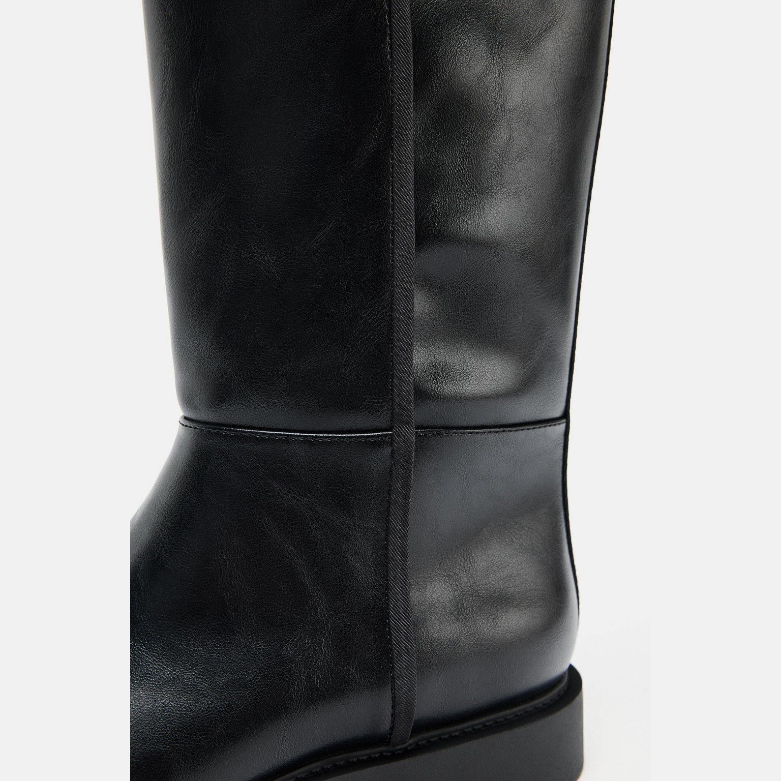 بوت بكعب منخفض مع خياطات علوية – لون أسود – Black (Topstitched Boots) بوت أنيق بتصميم عصري يتميز بخياطات علوية بارزة تضيف لمسة فاخرة. يأتي بتصميم سهل الارتداء مع سحب خلفي، إضافة إلى مقدمة مستديرة وكعب منخفض يوفر راحة وثباتًا أثناء الاستخدام اليومي. خيار مثالي للإطلالات الكاجوال والعملية.