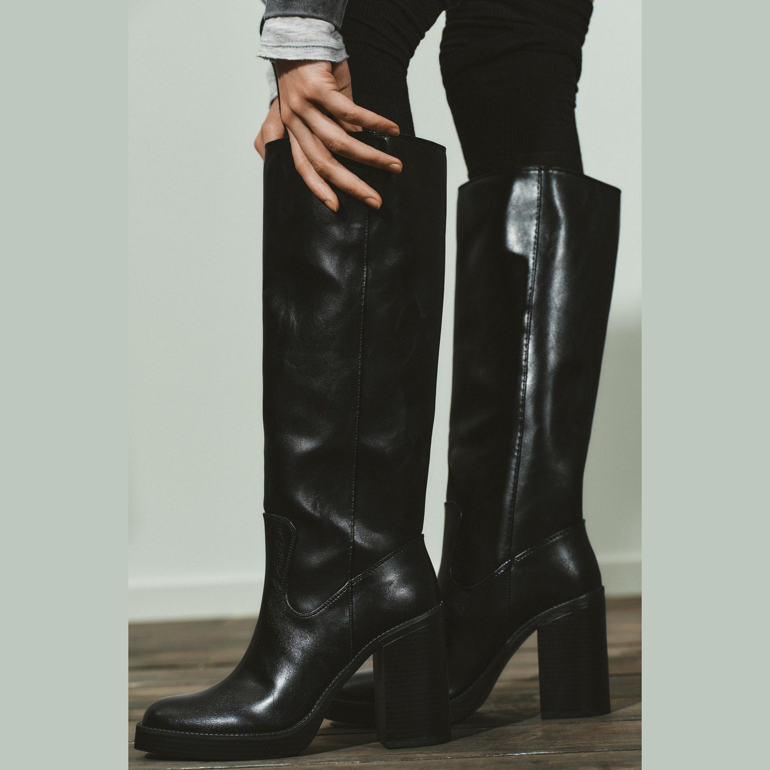 بوت بكعب عالٍ بتصميم عصري – لون أسود – Black (High‑Heel Boots) بوت أنيق بتصميم عصري بخياطات علوية ناعمة تمنح مظهرًا راقيًا. يتميز بكعب عالٍ عريض يوفر توازنًا أفضل أثناء المشي، مع مقدمة مستديرة ولمسة كلاسيكية تجعل التصميم مناسبًا للإطلالات اليومية والمسائية. خاماته العملية تمنح مظهرًا أنيقًا وسهل التنسيق.