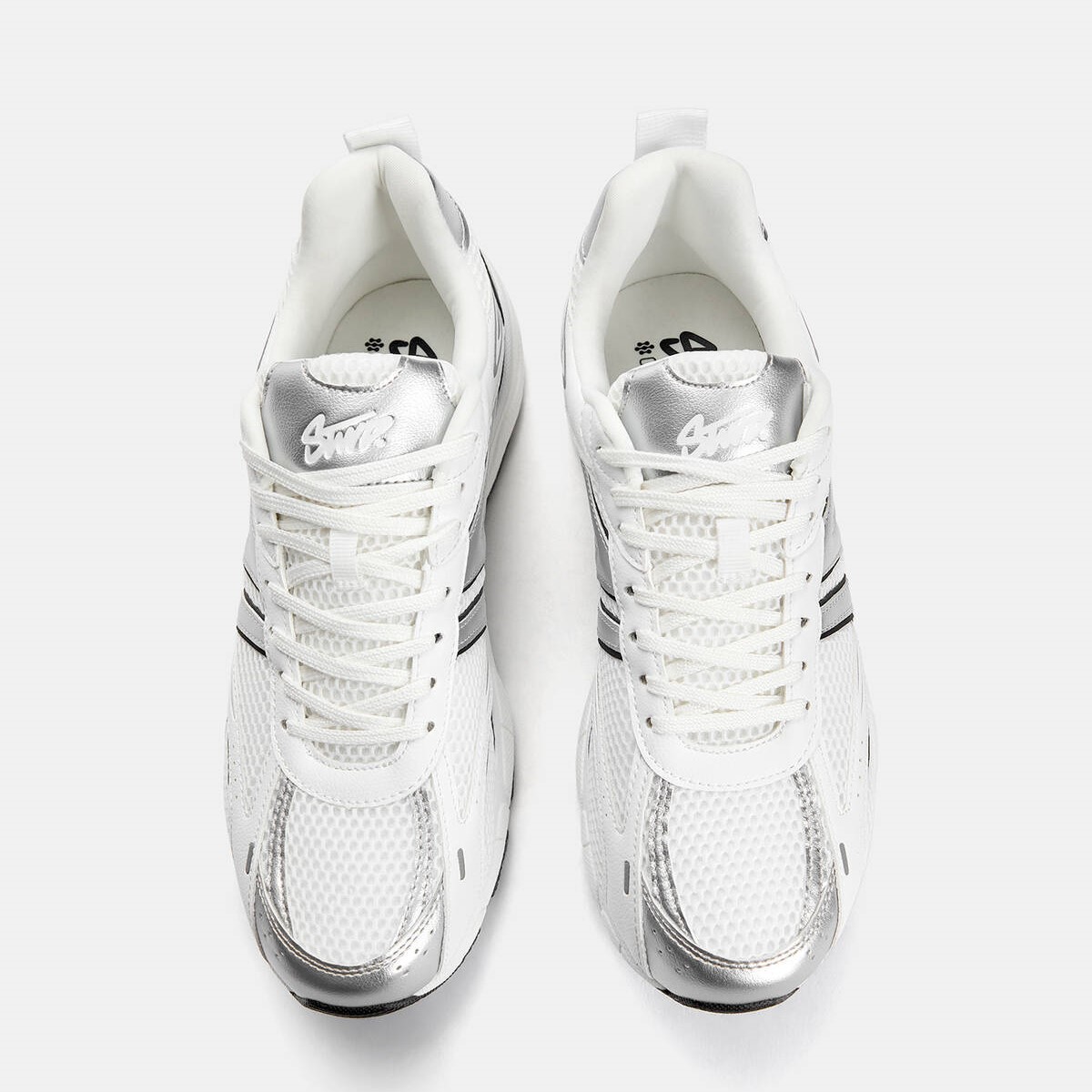 Pull & Bear – حذاء رياضي رجالي بتصميم Basic متعدد الأجزاء بلون أبيض