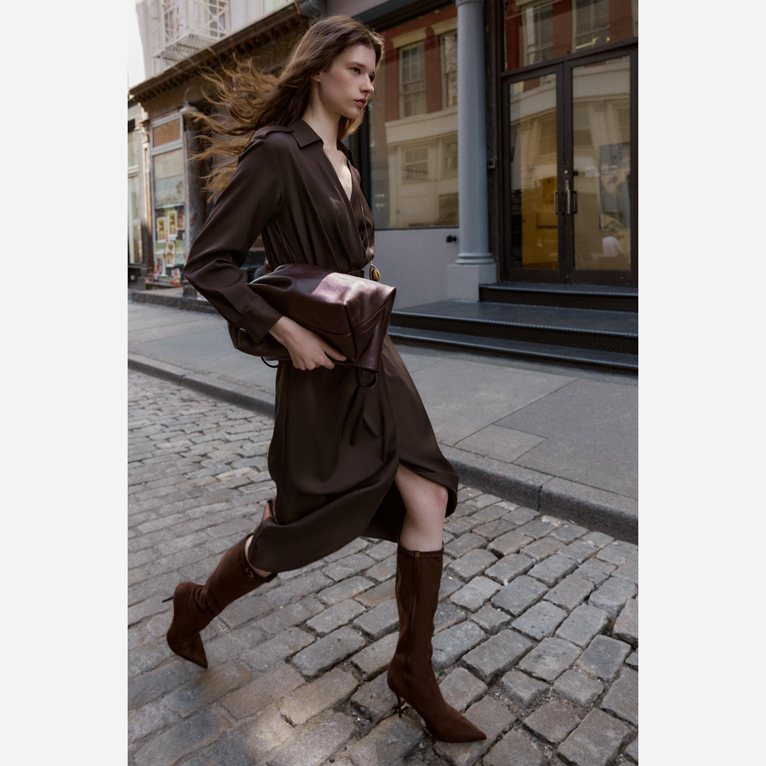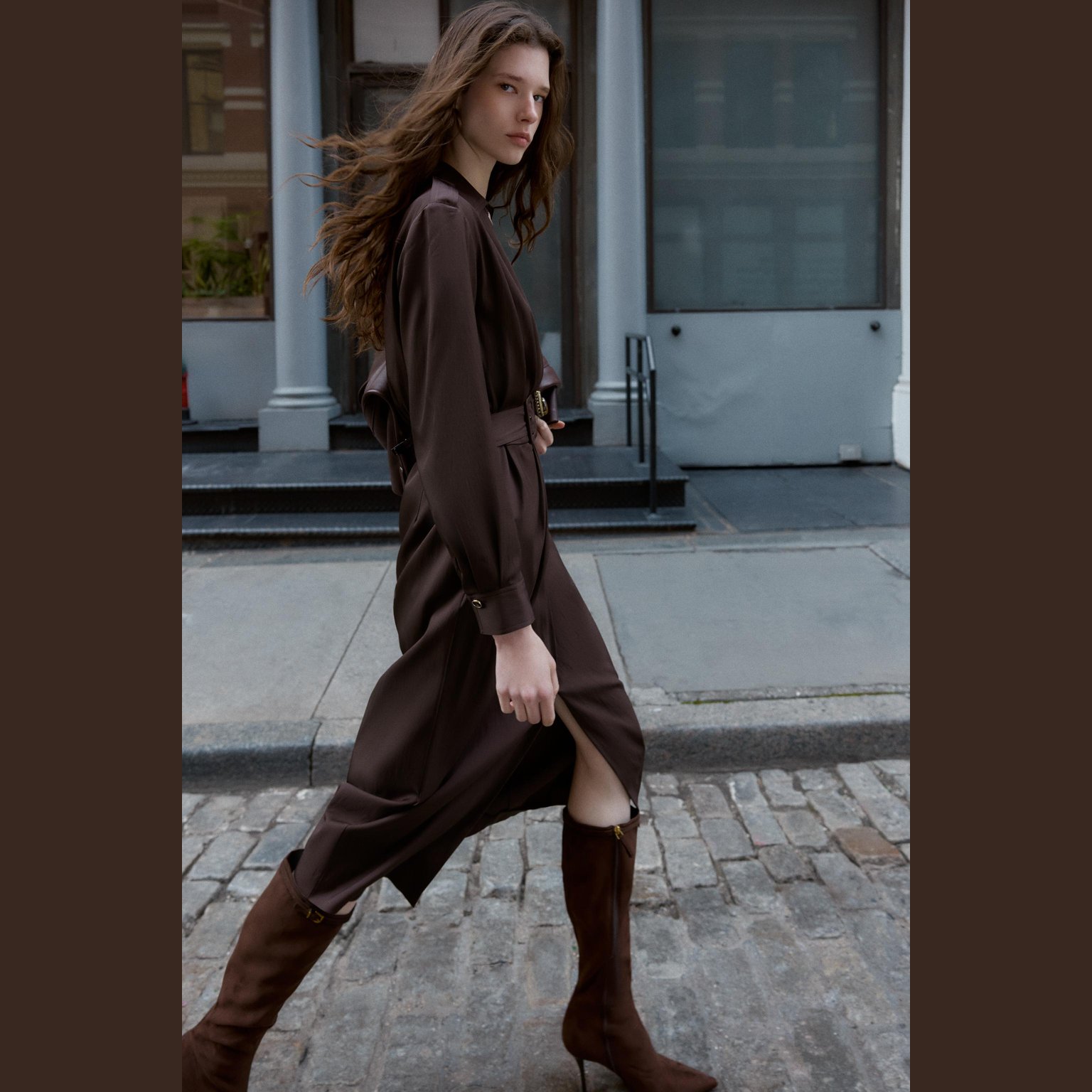 بوت بكعب عالٍ مع إبزيم معدني – لون بني شوكولاتة – Chocolate Brown (Buckled High‑Heel Boots) بوت أنيق بتصميم طويل يصل إلى الركبة، يتميز بتفاصيل إبزيم معدني على الساق تضيف لمسة عصرية فاخرة. يأتي بخياطات علوية ناعمة وكعب رفيع يمنح إطلالة أنثوية راقية، إضافة إلى سحاب جانبي لسهولة الارتداء. تصميمه الانسيابي يجعله خيارًا مثاليًا للإطلالات المسائية والرسمية.