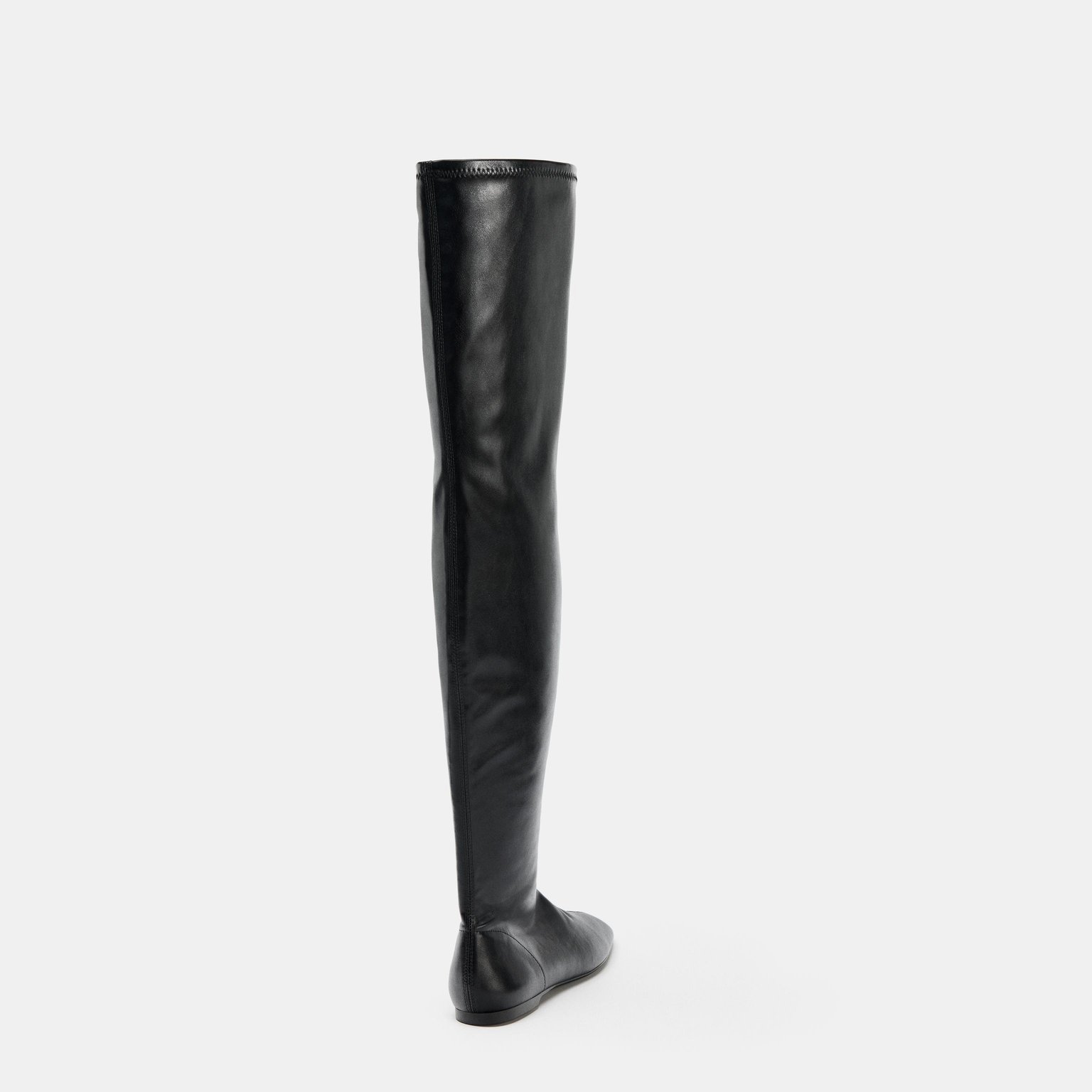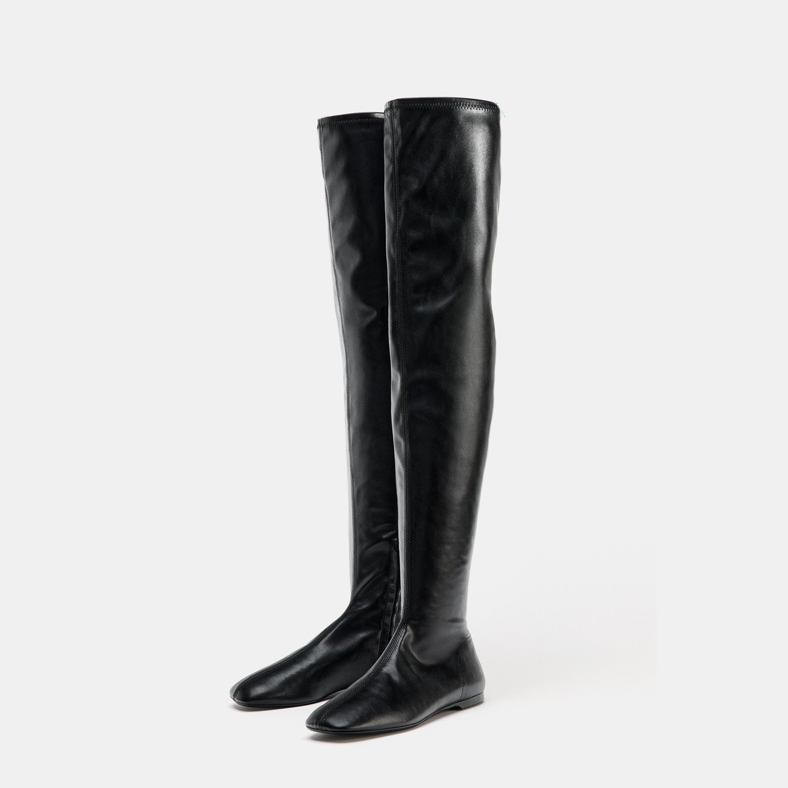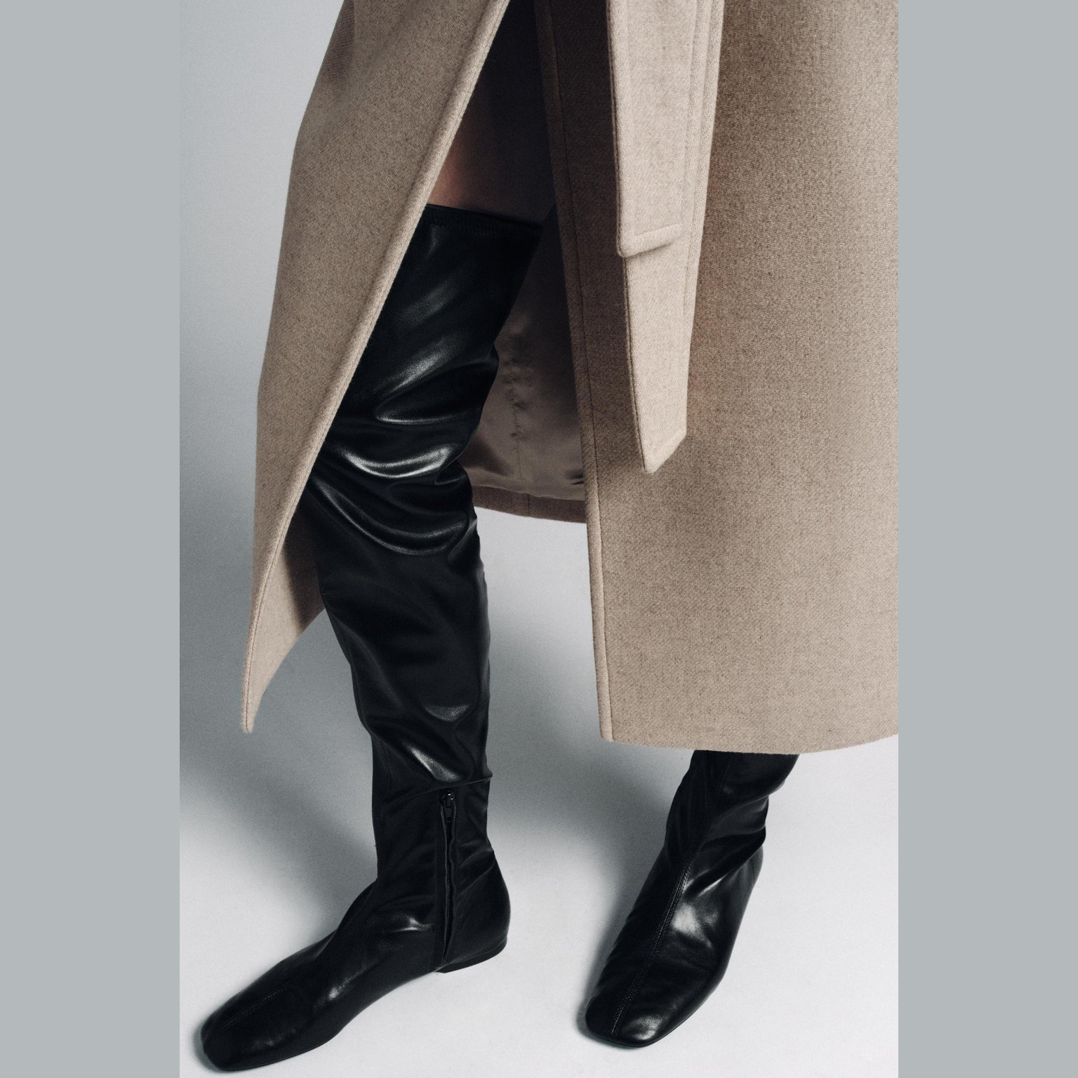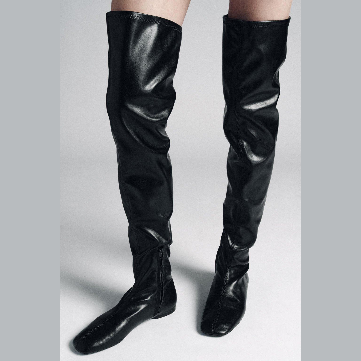 بوت طويل فوق الركبة – لون أسود – Black (Over‑the‑Knee Boots) بوت أنيق بتصميم طويل جدًا يصل فوق الركبة، مصنوع من خامة ناعمة مع خياطات علوية تضيف لمسة عصرية. يتميز بسحاب جانبي لسهولة الارتداء ومقدمة مستديرة تمنح راحة أثناء المشي. تصميمه الانسيابي يجعله خيارًا مثاليًا للإطلالات اليومية والمسائية.