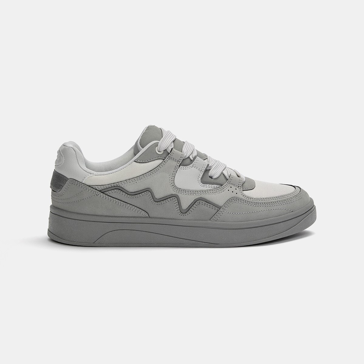 ارتقِ بإطلالتك اليومية مع هذا الحذاء الرياضي من Pull & Bear، المصمم بأسلوب سكايت يجمع بين الجلد الطبيعي وخامة Rugan اللامعة، ليمنحك مظهراً ديناميكياً وعصرياً. يأتي بلون رمادي أنيق مع نعل سميك بارتفاع 3.5 سم، ويمنحك راحة فائقة بفضل النعل الداخلي OrthoLite® المصنوع من الجلد الأصلي.