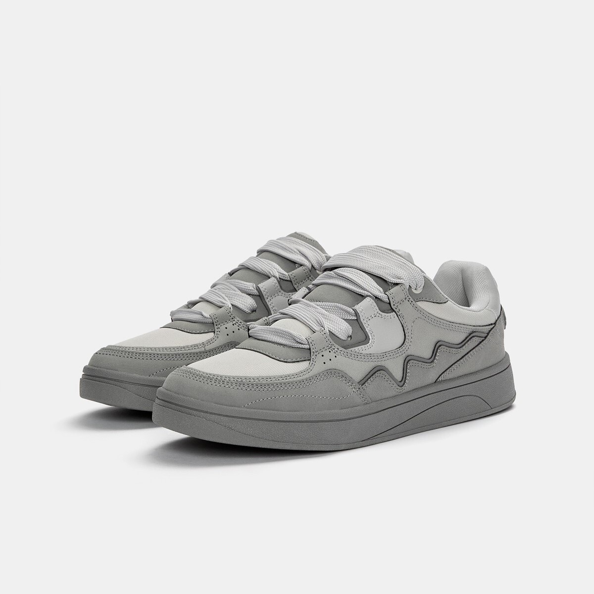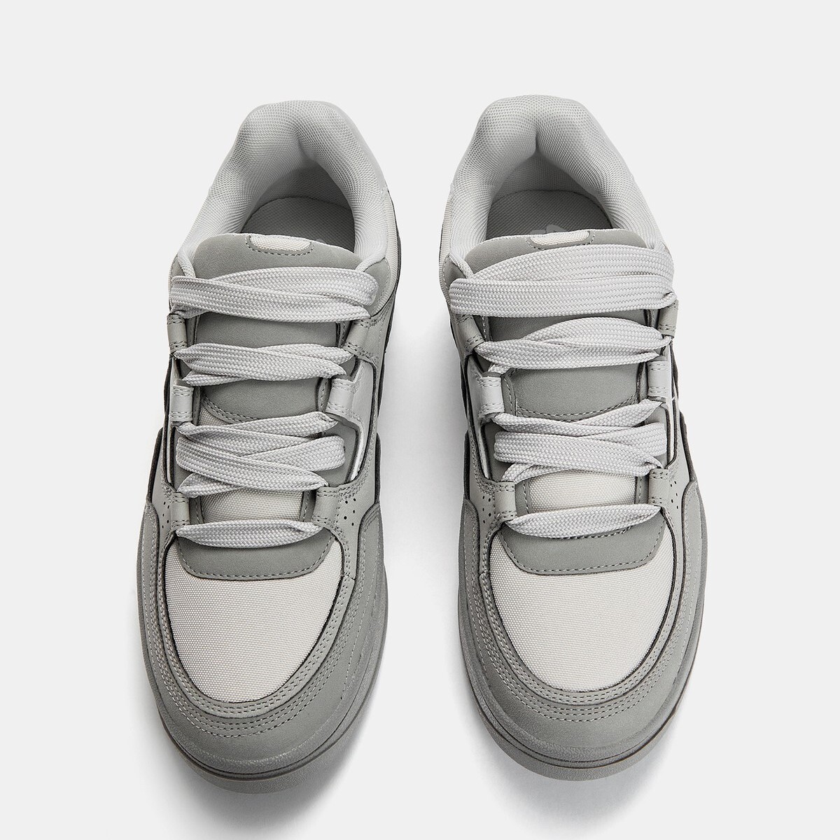 Pull & Bear – حذاء رياضي رجالي بتصميم سكايت متعدد الأجزاء ونعل سميك بلون رمادي