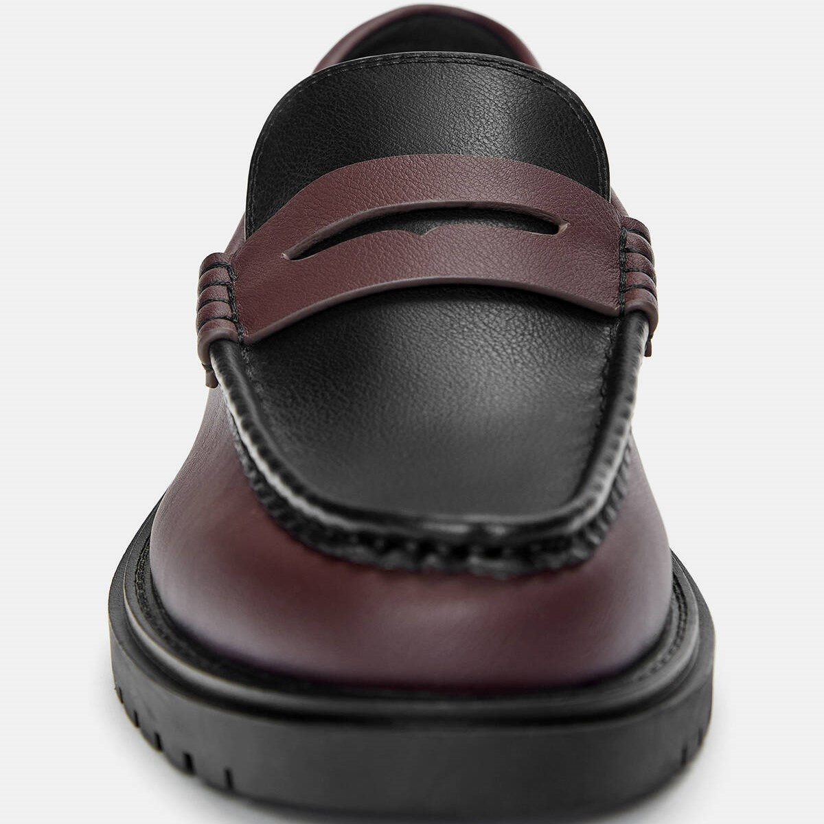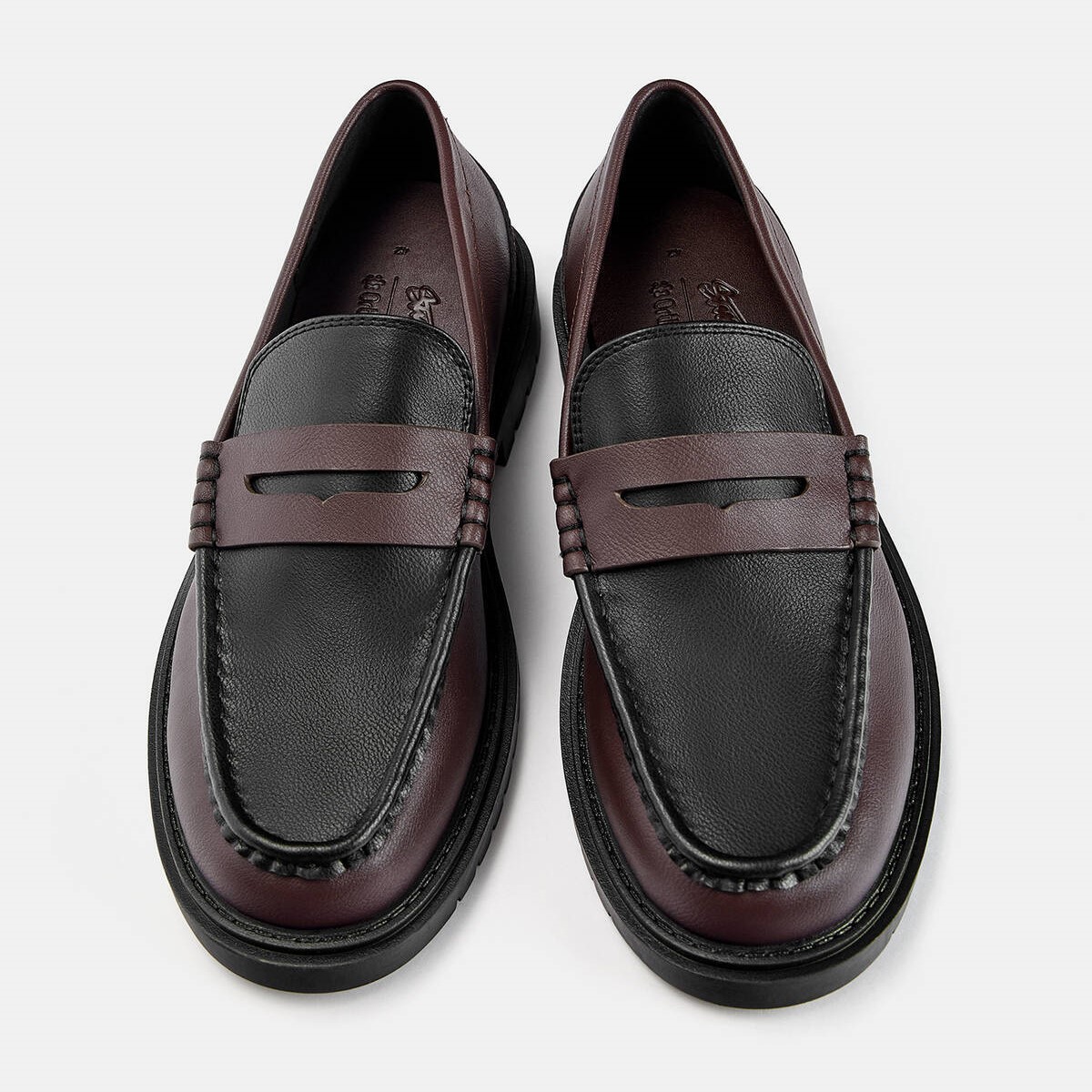 Pull & Bear – حذاء موكاسين رجالي بتصميم كونتراست ونعل حجمي بلون بوردو