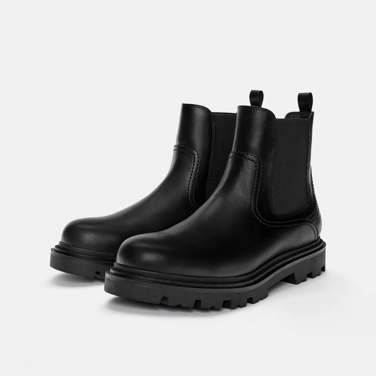 Pull & Bear – بوت رجالي برباط بتصميم كلاسيكي ونعل سميك بلون أسود