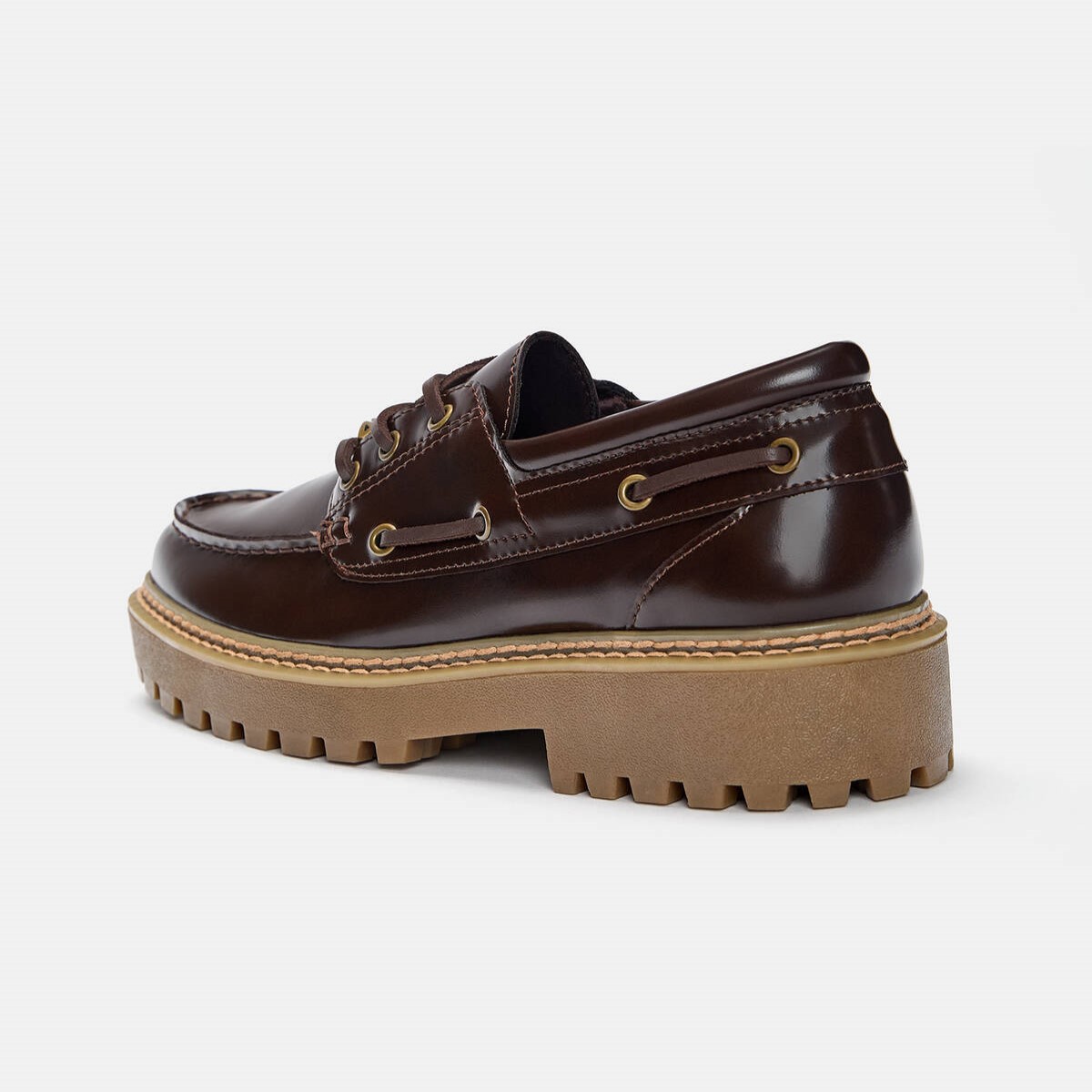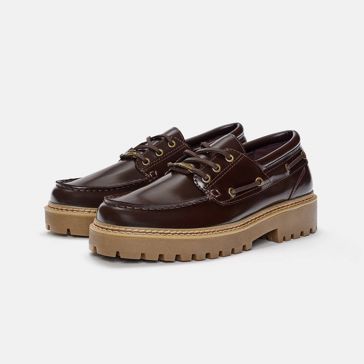 Pull & Bear – حذاء STWD رجالي بتصميم Nautik ونعل حجمي بلون بني