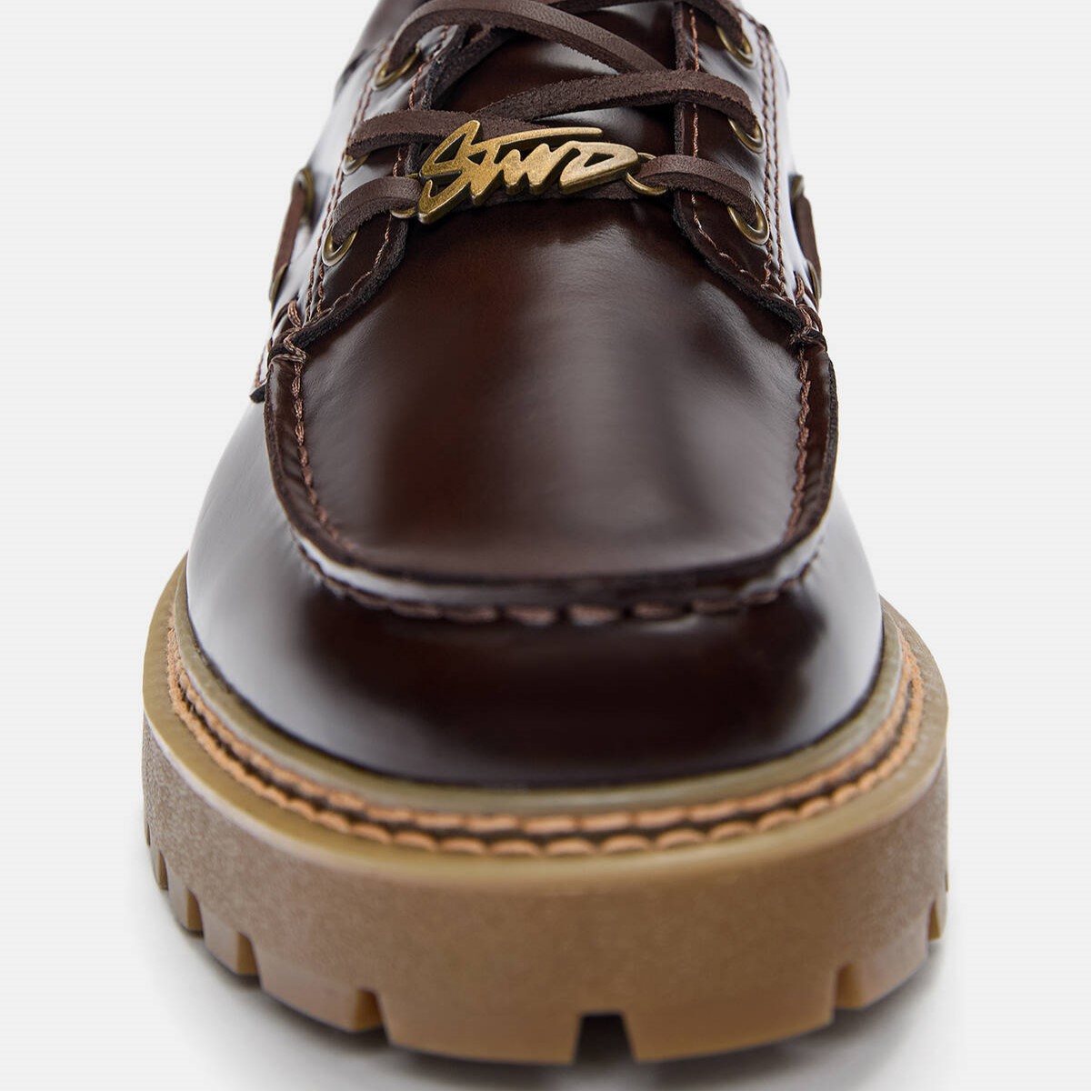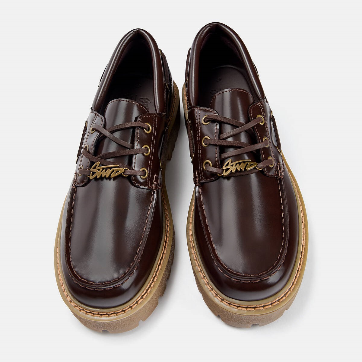 تميّز بإطلالة بحرية عصرية مع هذا الحذاء الرجالي من Pull & Bear، المصمم بأسلوب Nautik يجمع بين الجلد اللامع والنعل الحجمي المضلّع. يأتي بلون بني أنيق مع شعار STWD في المقدمة، ويمنحك راحة فائقة بفضل النعل الداخلي STARFIT® المصنوع من الجلد الطبيعي.