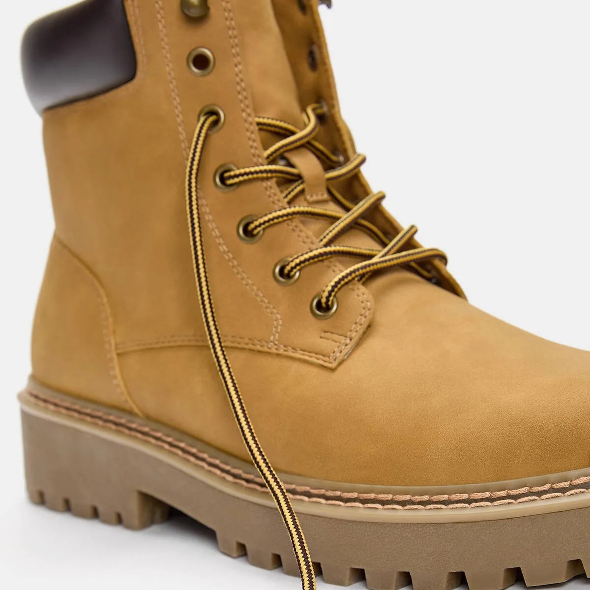 Pull & Bear – بوت رجالي STWD برباط وتصميم عملي بنعل حجمي بلون خردلي