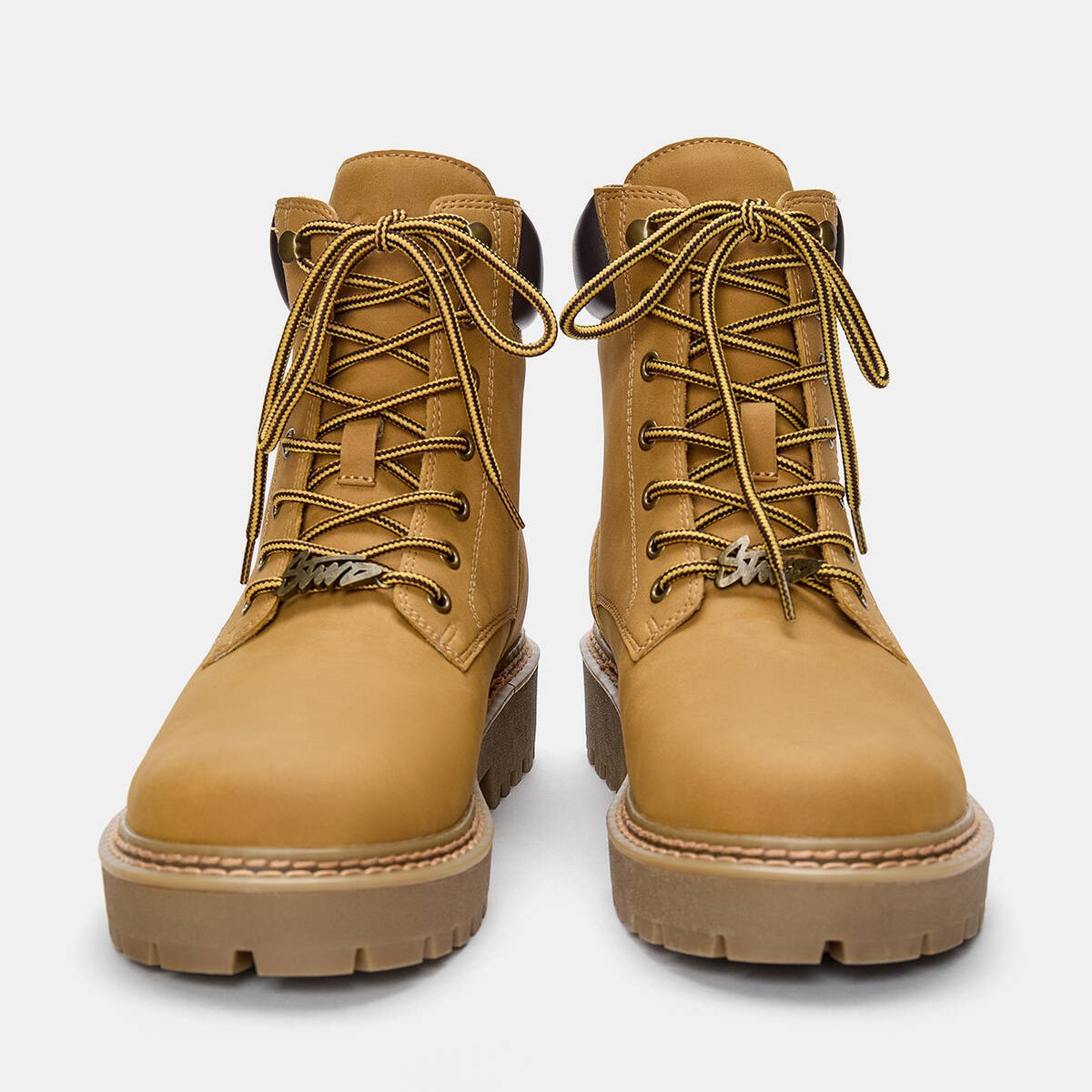 تميّز بإطلالة شتوية جريئة مع هذا البوت الرجالي من Pull & Bear، المصمم بأسلوب STWD العصري مع تفاصيل بارزة مثل الرباط الأمامي، شعار STWD القابل للإزالة، وسحاب جانبي لسهولة الارتداء. يأتي بلون خردلي لافت مع نعل حجمي بارتفاع 3.5 سم، ويمنحك راحة فائقة بفضل النعل الداخلي STARFIT® المصمم لدعم القدم طوال اليوم.