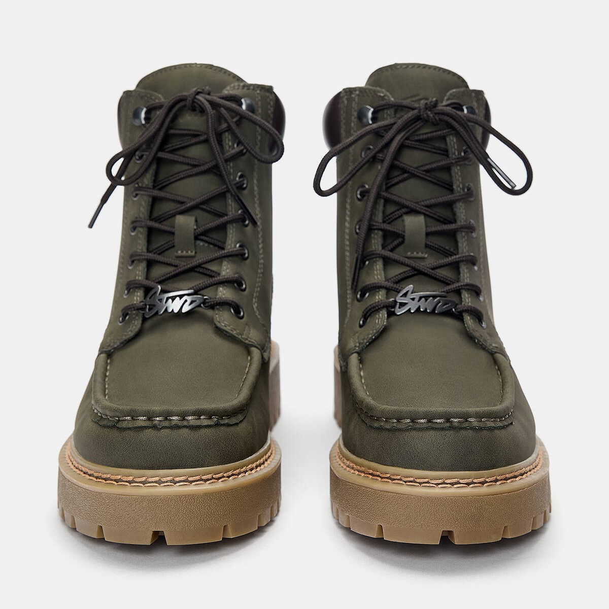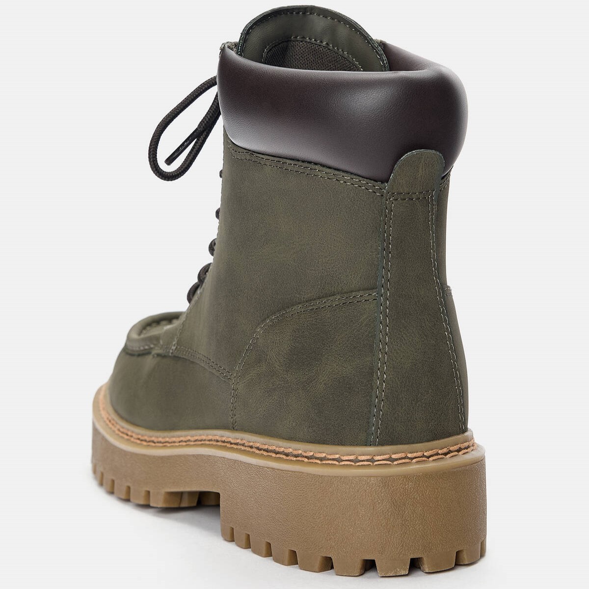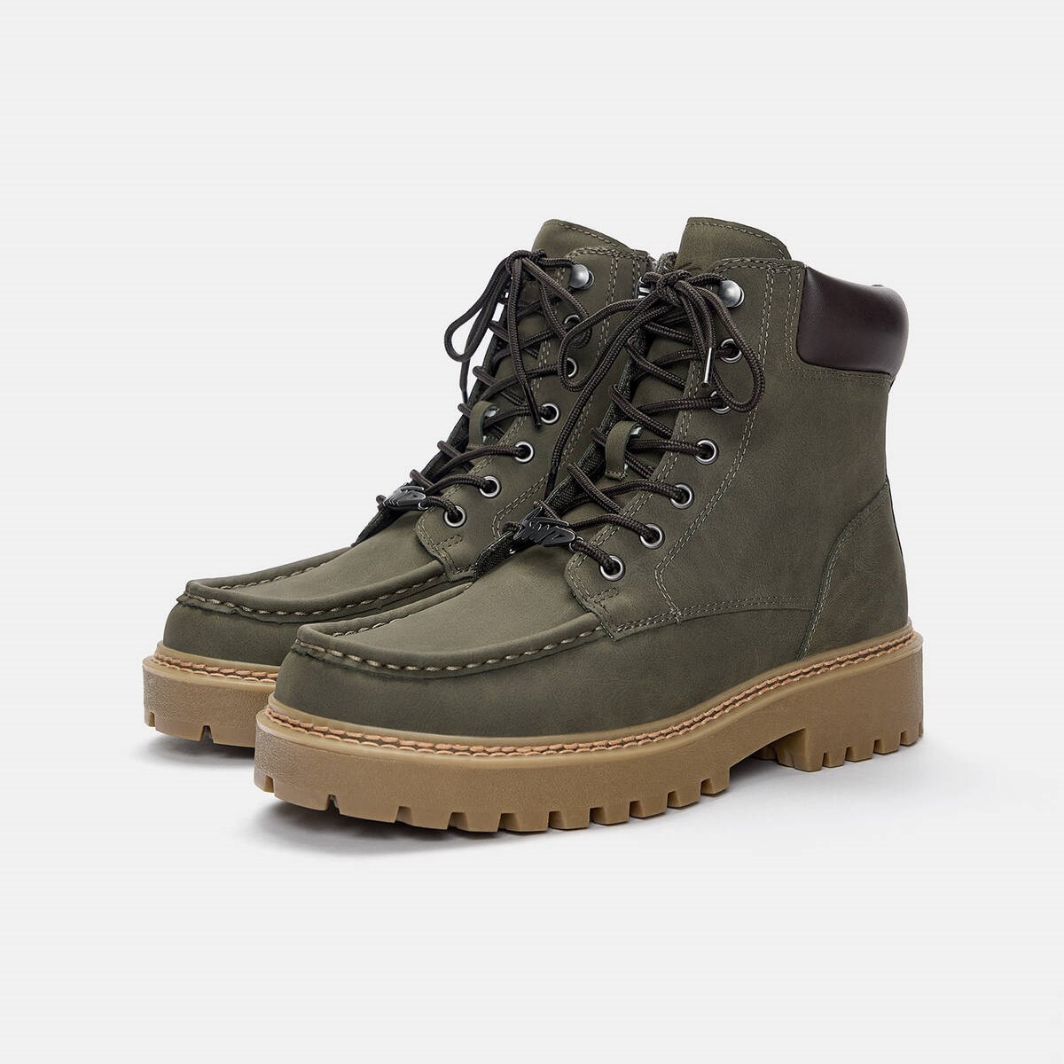 Pull & Bear – بوت رجالي STWD برباط وسحاب جانبي بتصميم عملي ونعل حجمي بلون زيتي