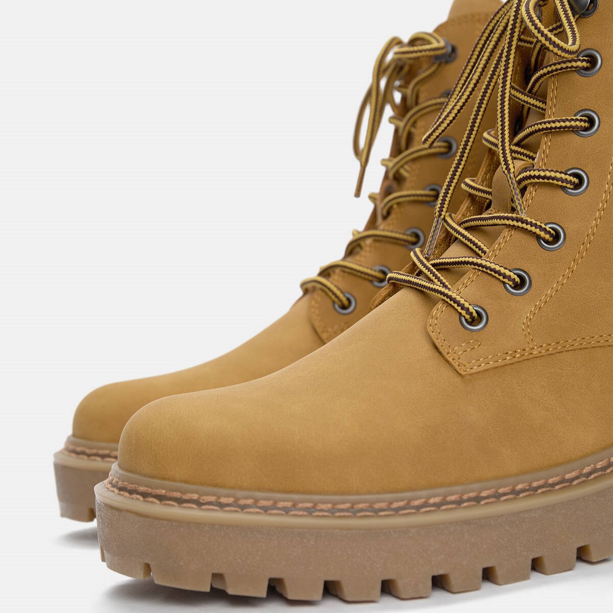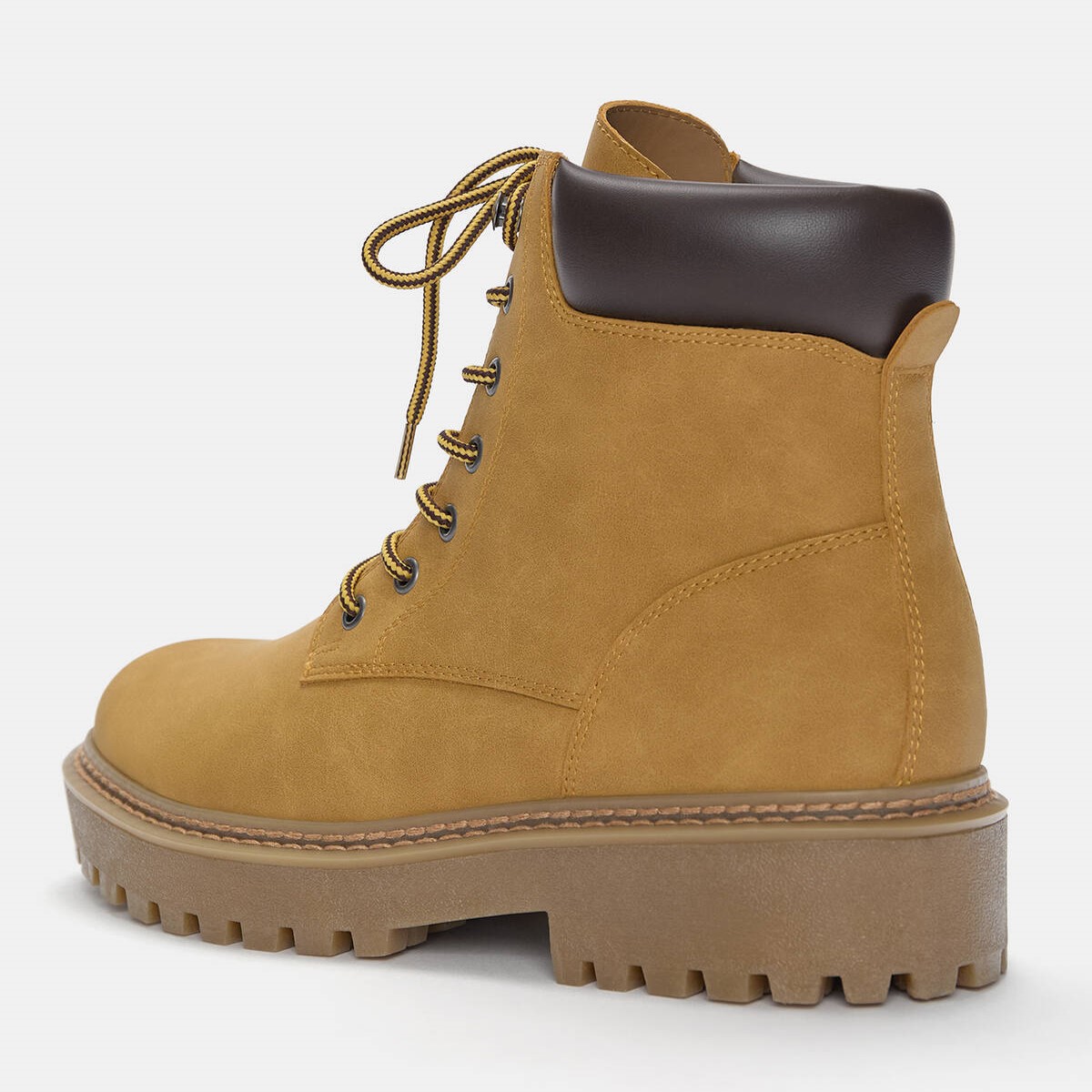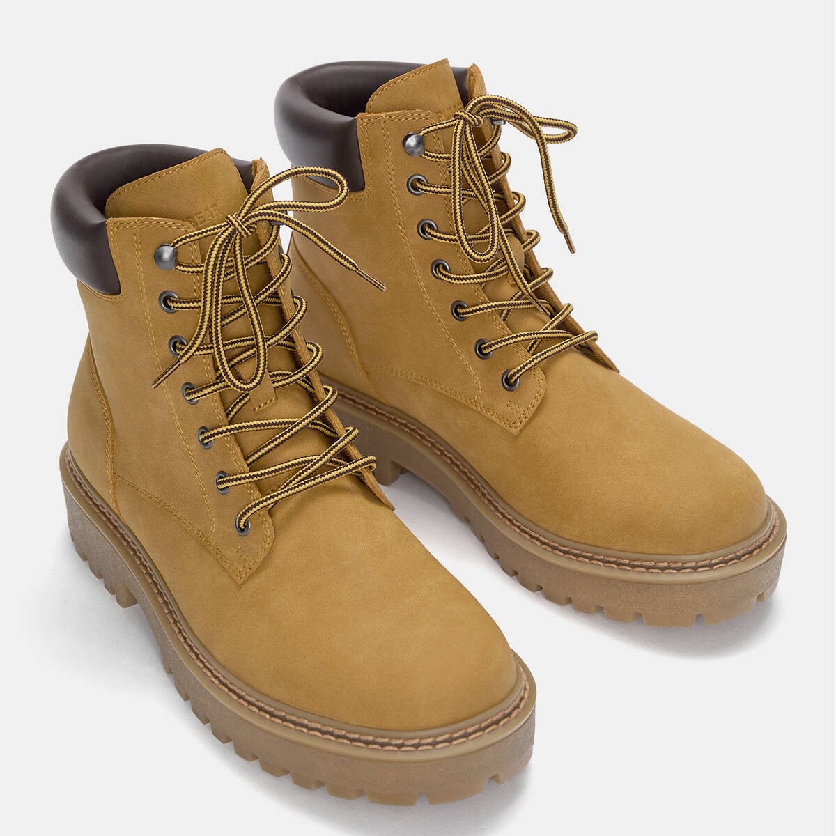 Pull & Bear – بوت رجالي برباط بتصميم مستقيم ونعل حجمي بلون أصفر خردلي