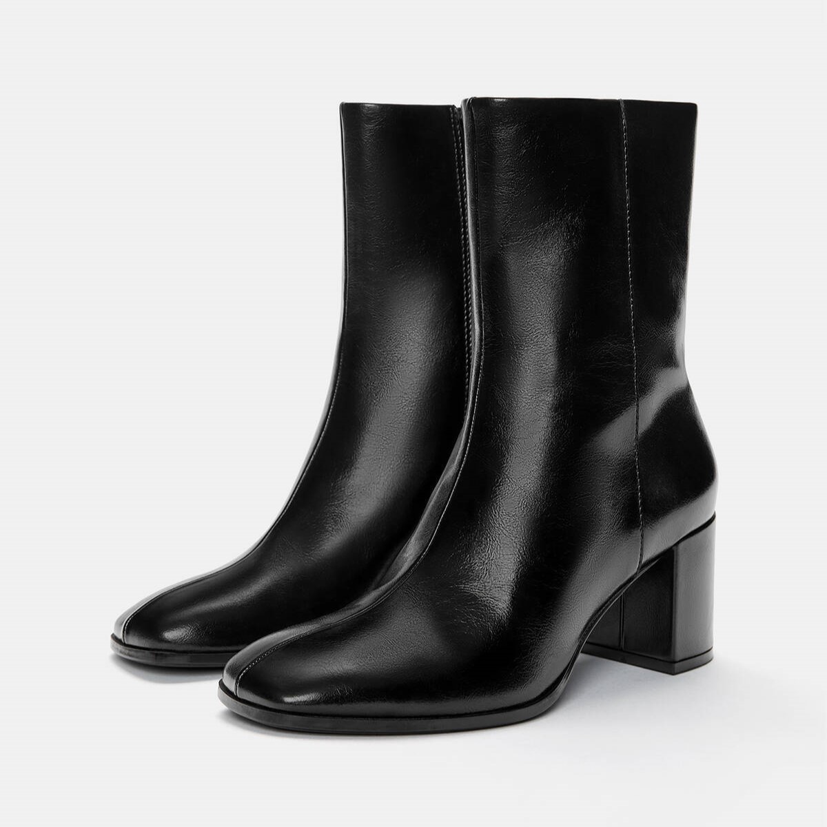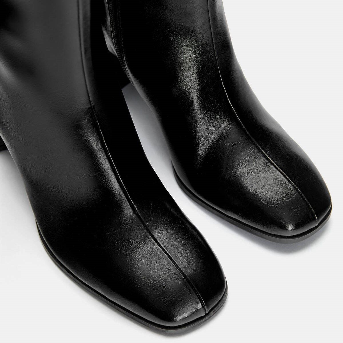 Pull & Bear – بوت نسائي بلمسة كلاسيكية وتصميم مربع عند المقدمة بكعب متوسط بلون أسود
