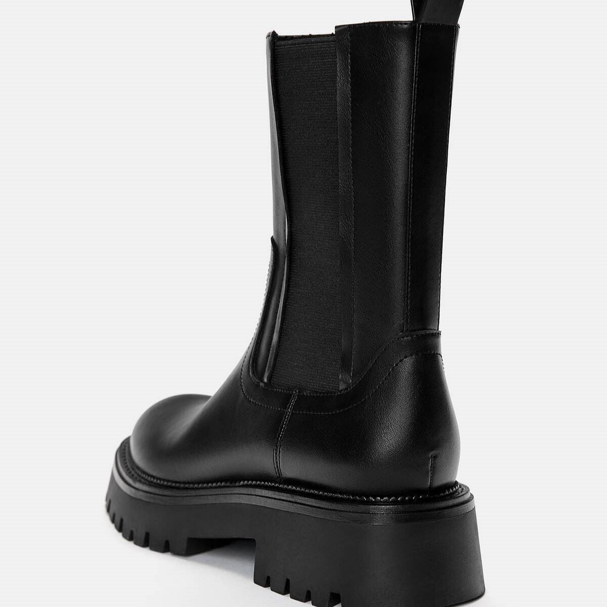 Pull & Bear – بوت نسائي Düz Chelsea بتصميم كلاسيكي ونعل حجمي بلون أسود