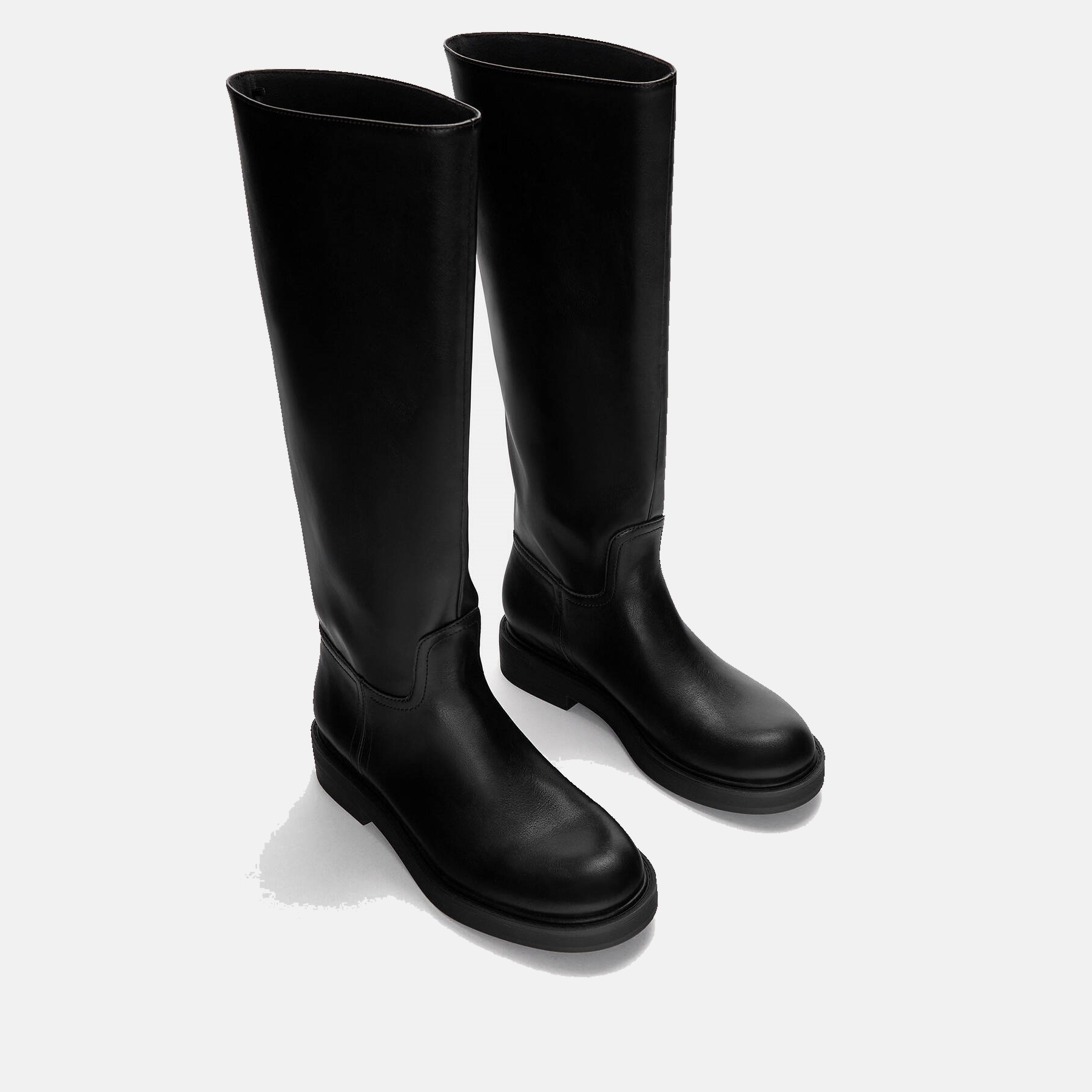 Pull & Bear – جزمة نسائية طويلة بتصميم مستقيم ونعل منخفض بلون أسود