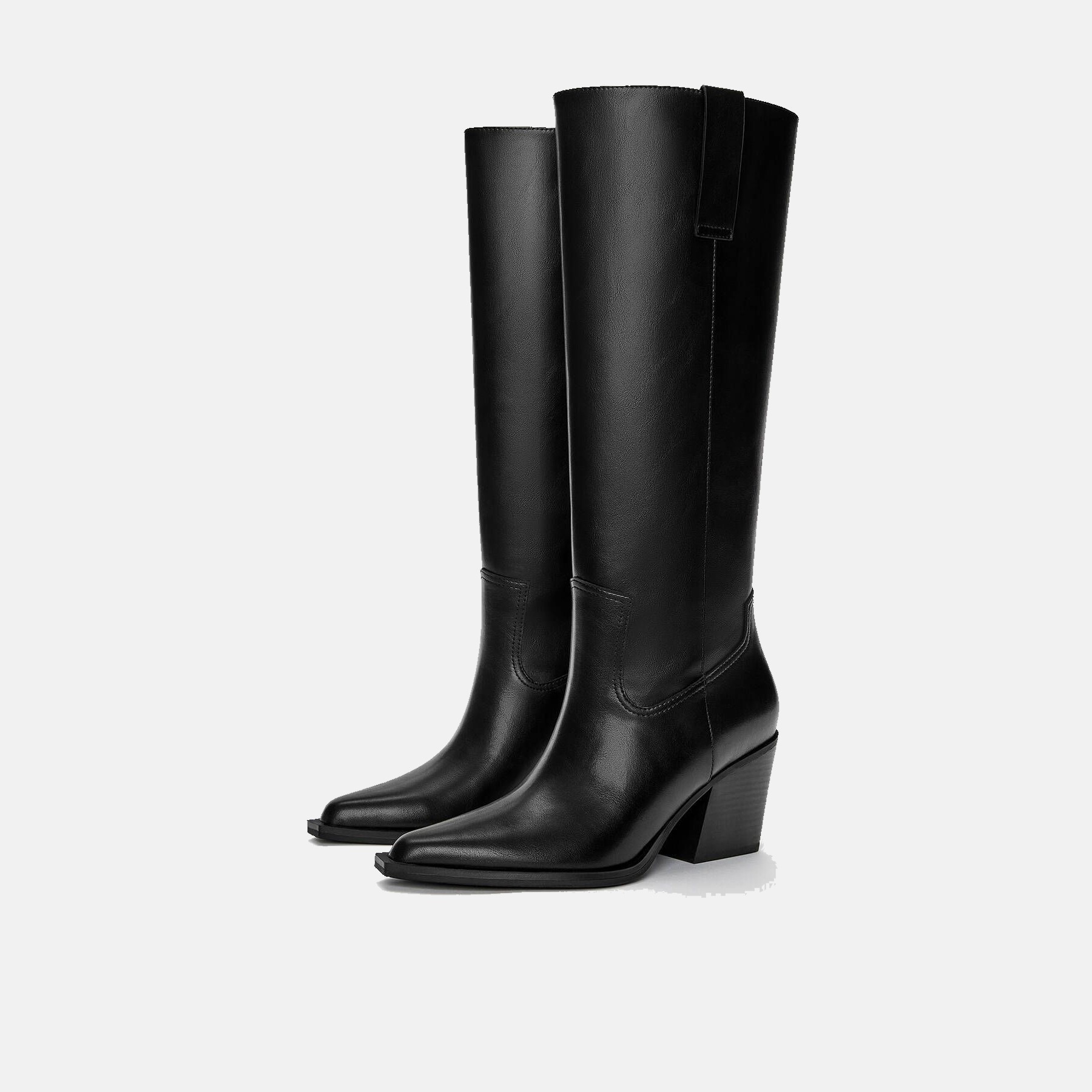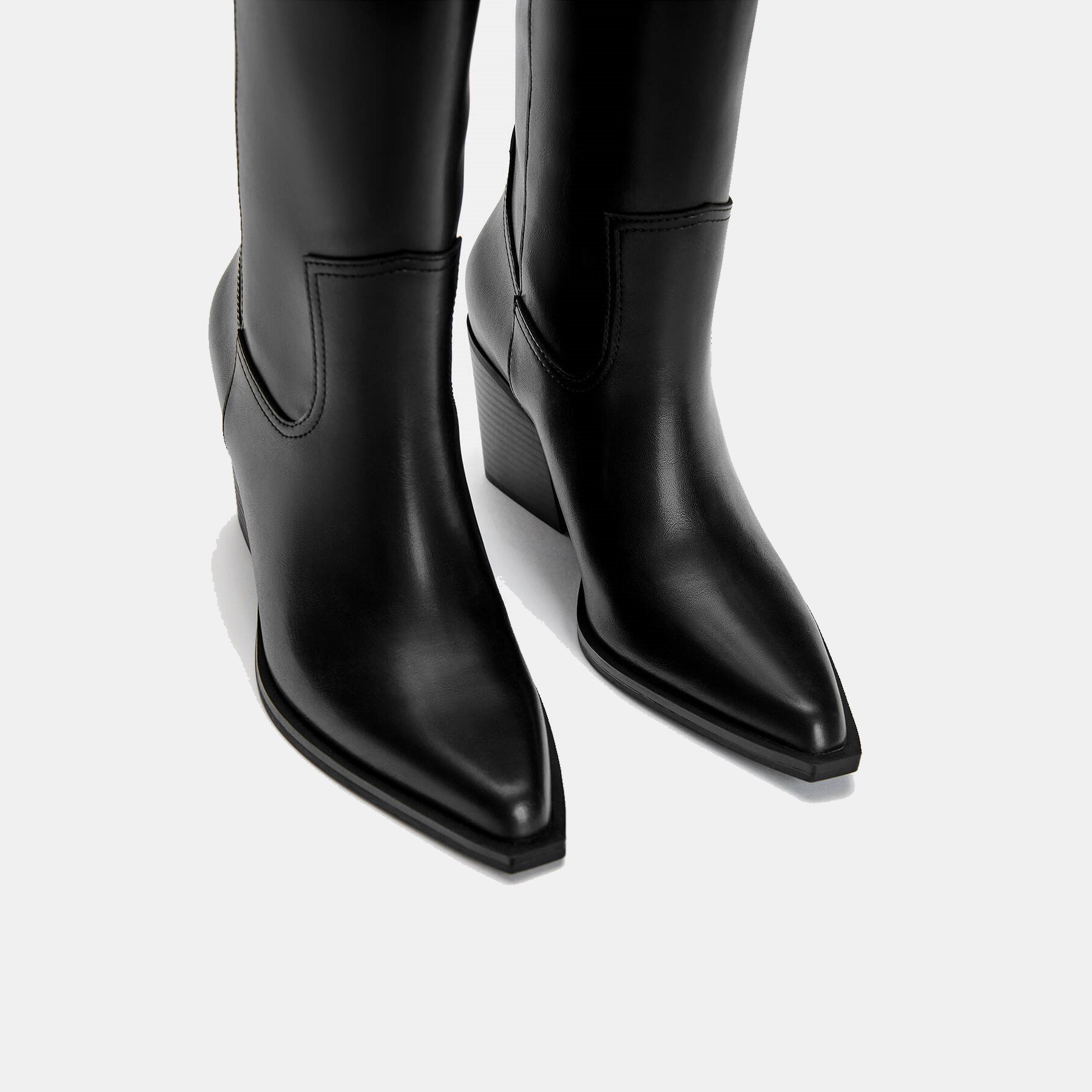 Pull & Bear – جزمة نسائية بكعب عالي بتصميم كاوبوي ومقدمة مدببة بلون أسود