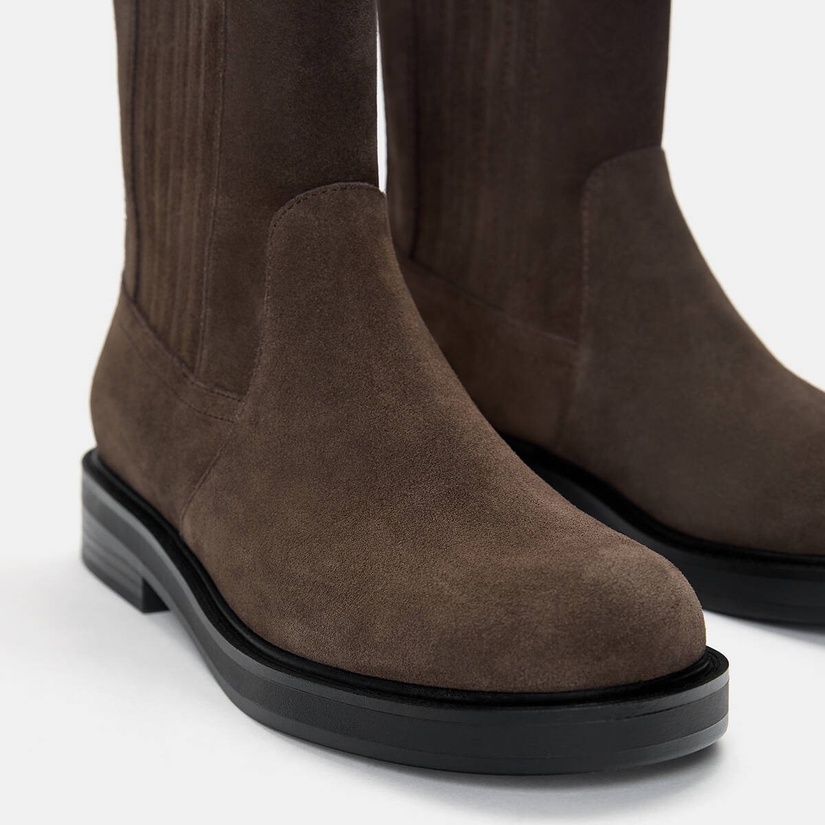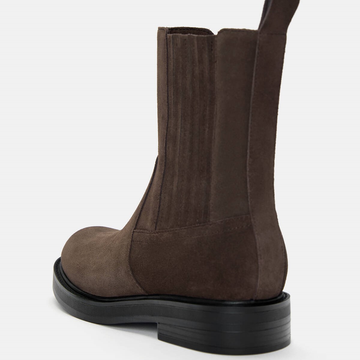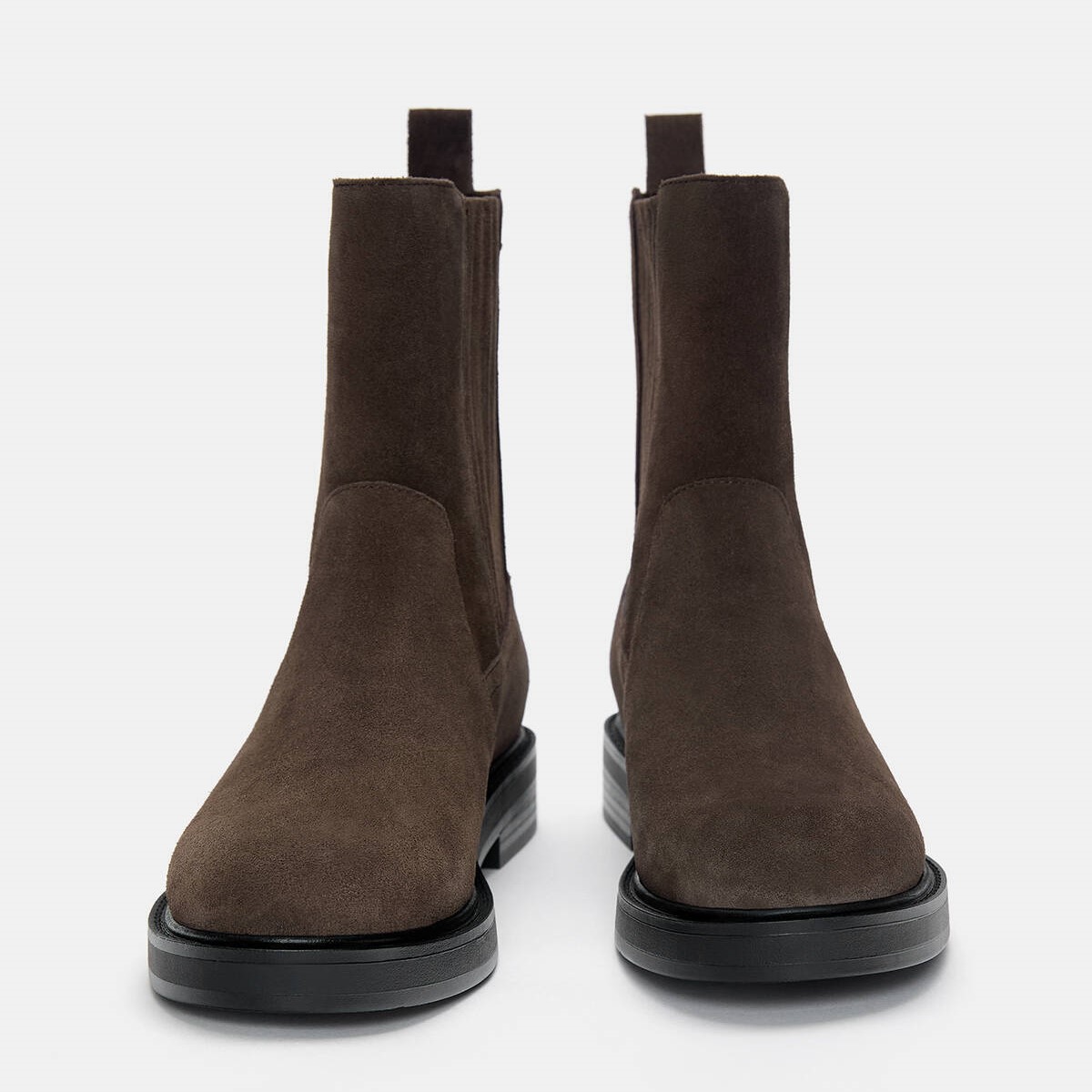 Pull & Bear – بوت نسائي Chelsea من الجلد الطبيعي بكعب منخفض ومقدمة مستديرة بلون بني