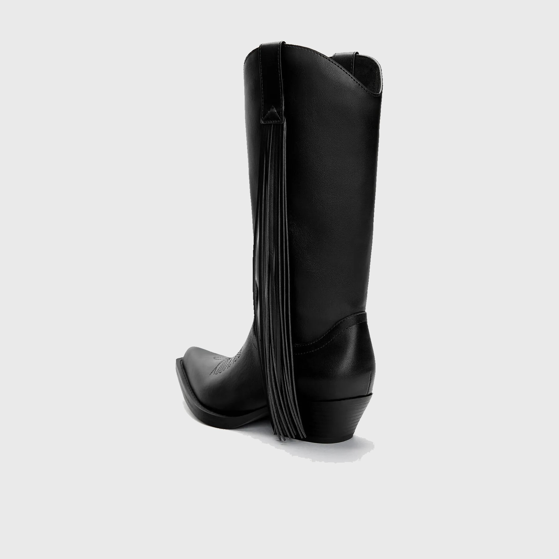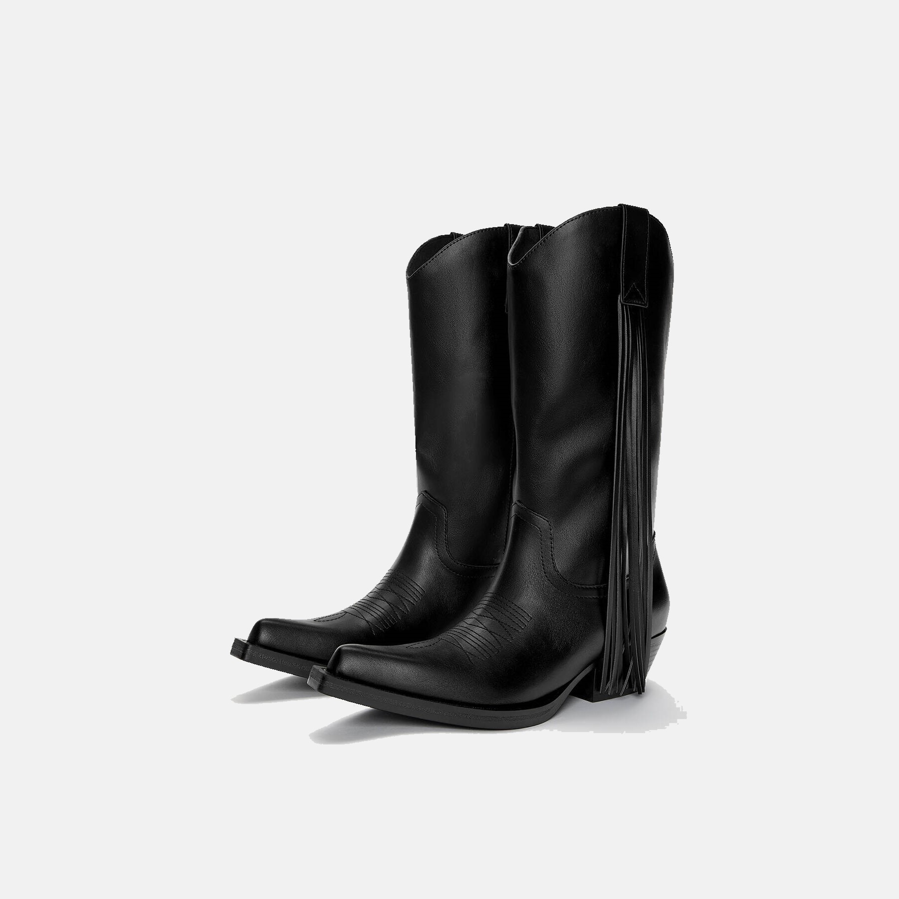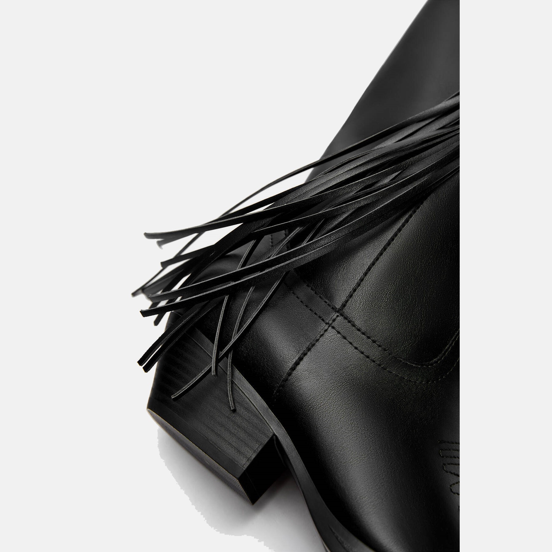 Pull & Bear – جزمة نسائية كاوبوي بتفاصيل شراريب ومقدمة مدببة بلون أسود