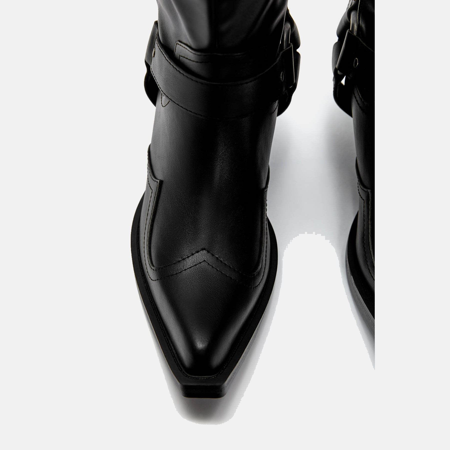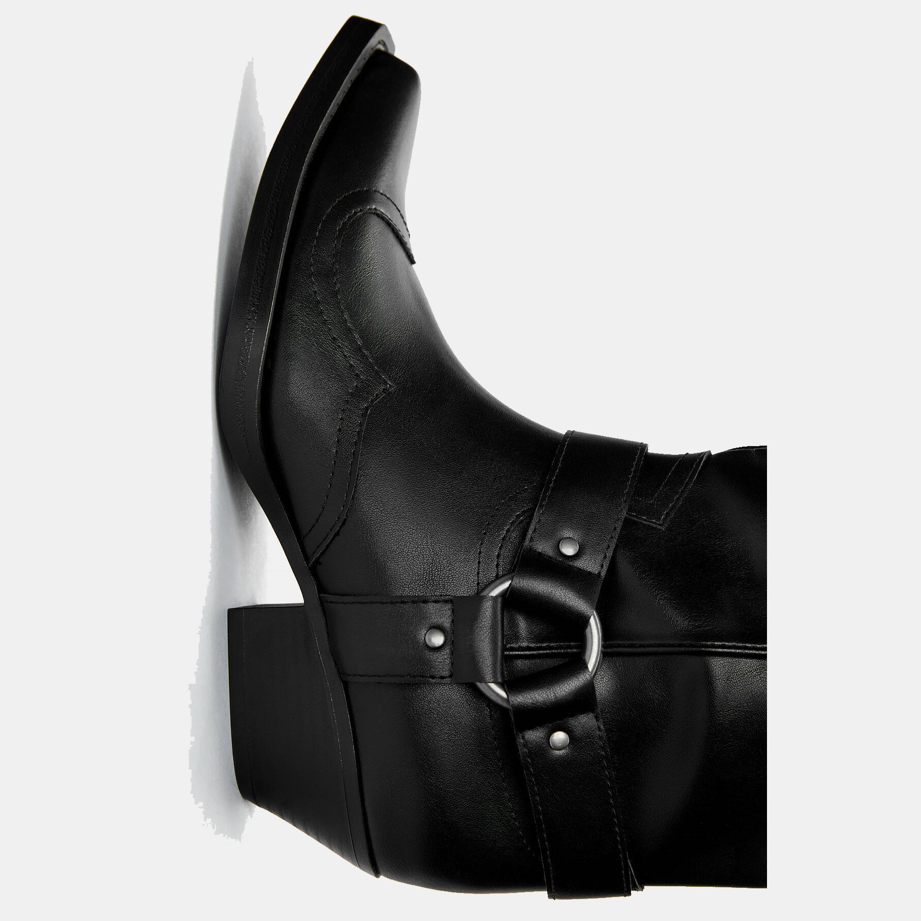 Pull & Bear – جزمة نسائية كاوبوي بكعب متوسط ومقدمة مدببة بلون أسود مزينة بمعدن