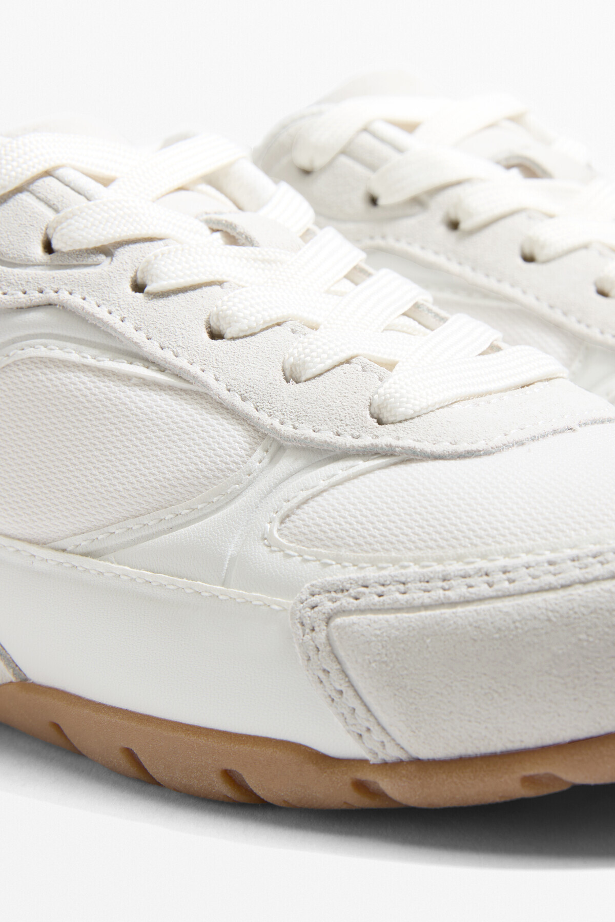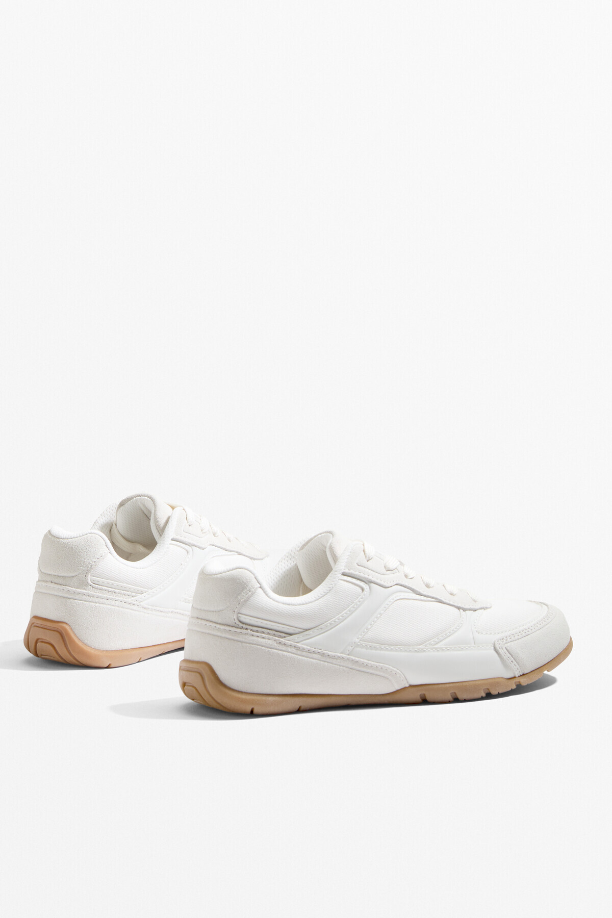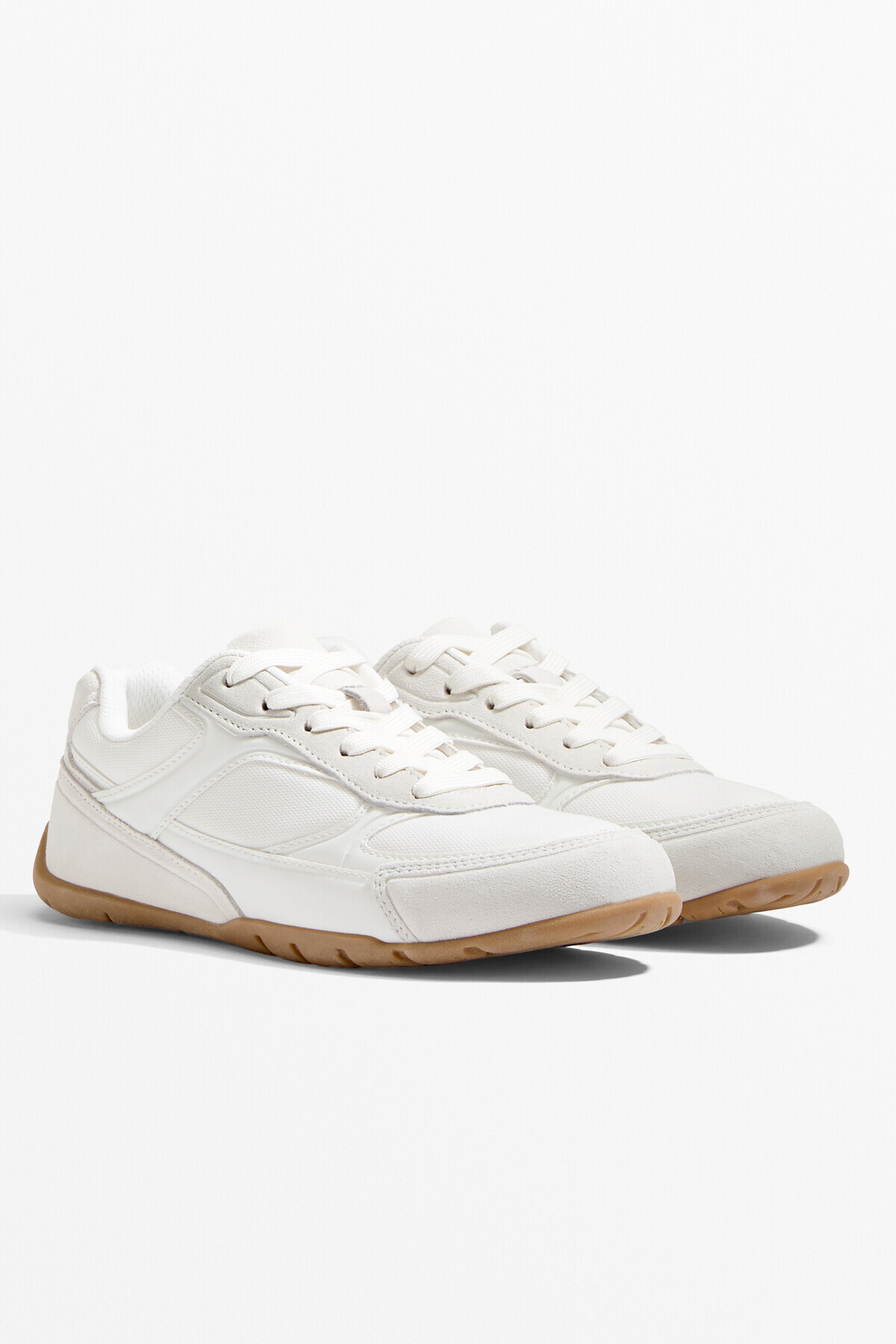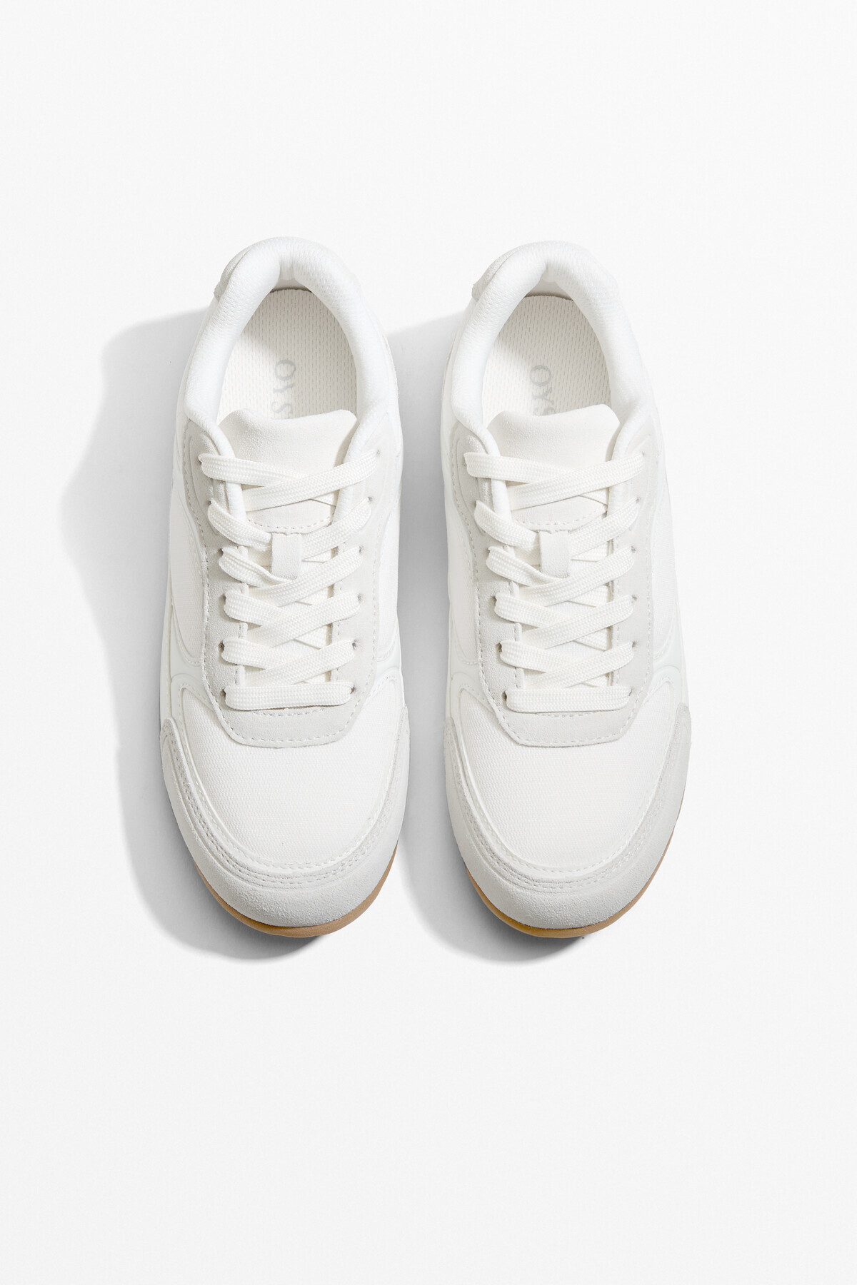 Oysho – حذاء رياضي نسائي بقماش منسوج وتفاصيل سويد بلون أبيض
