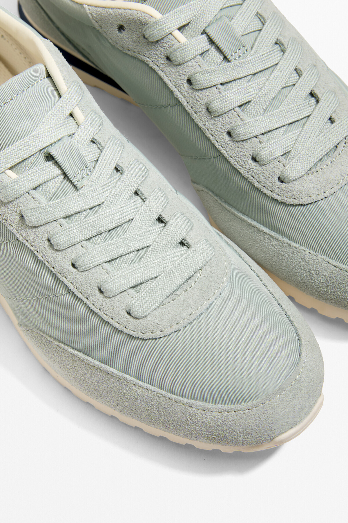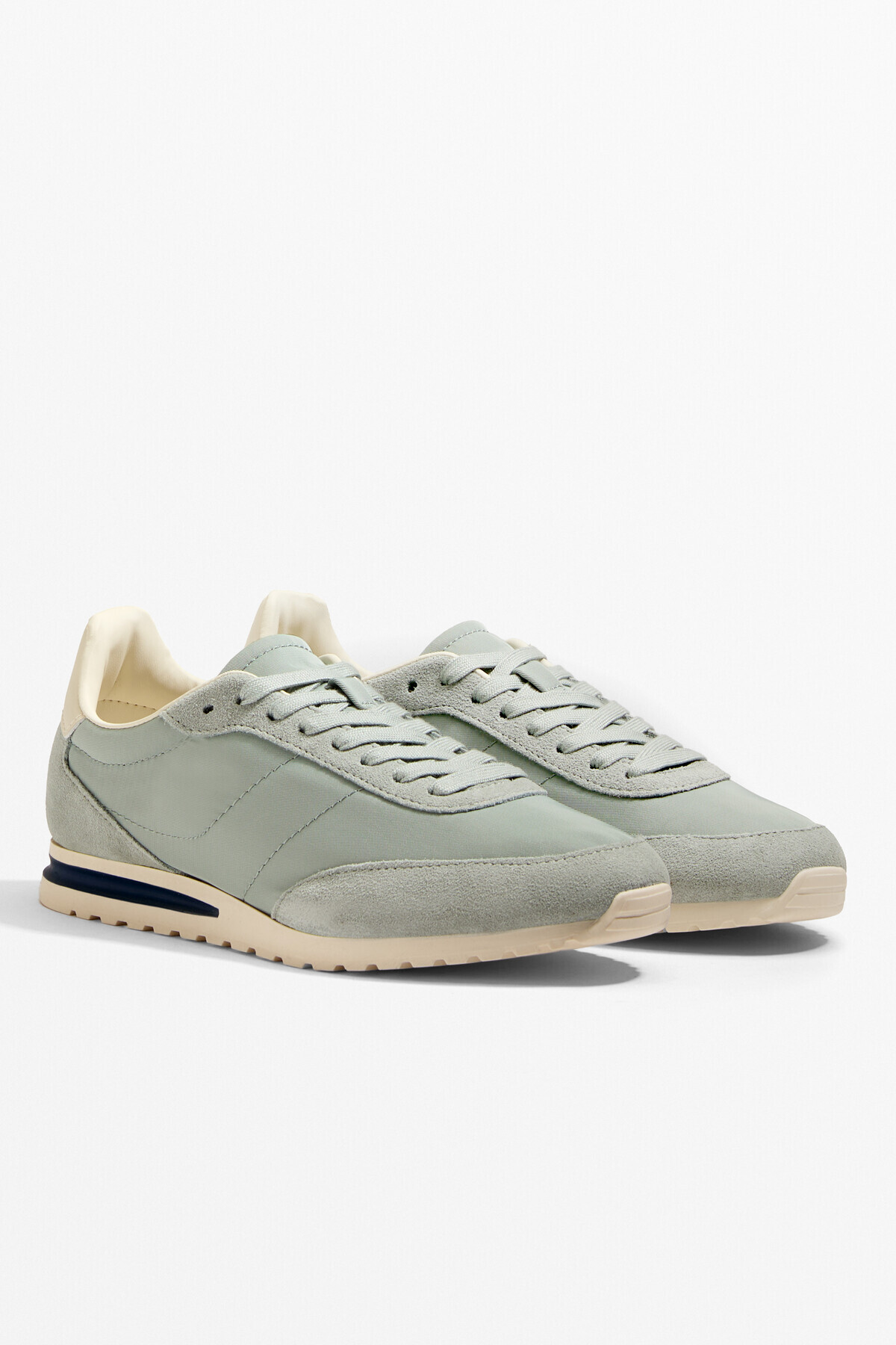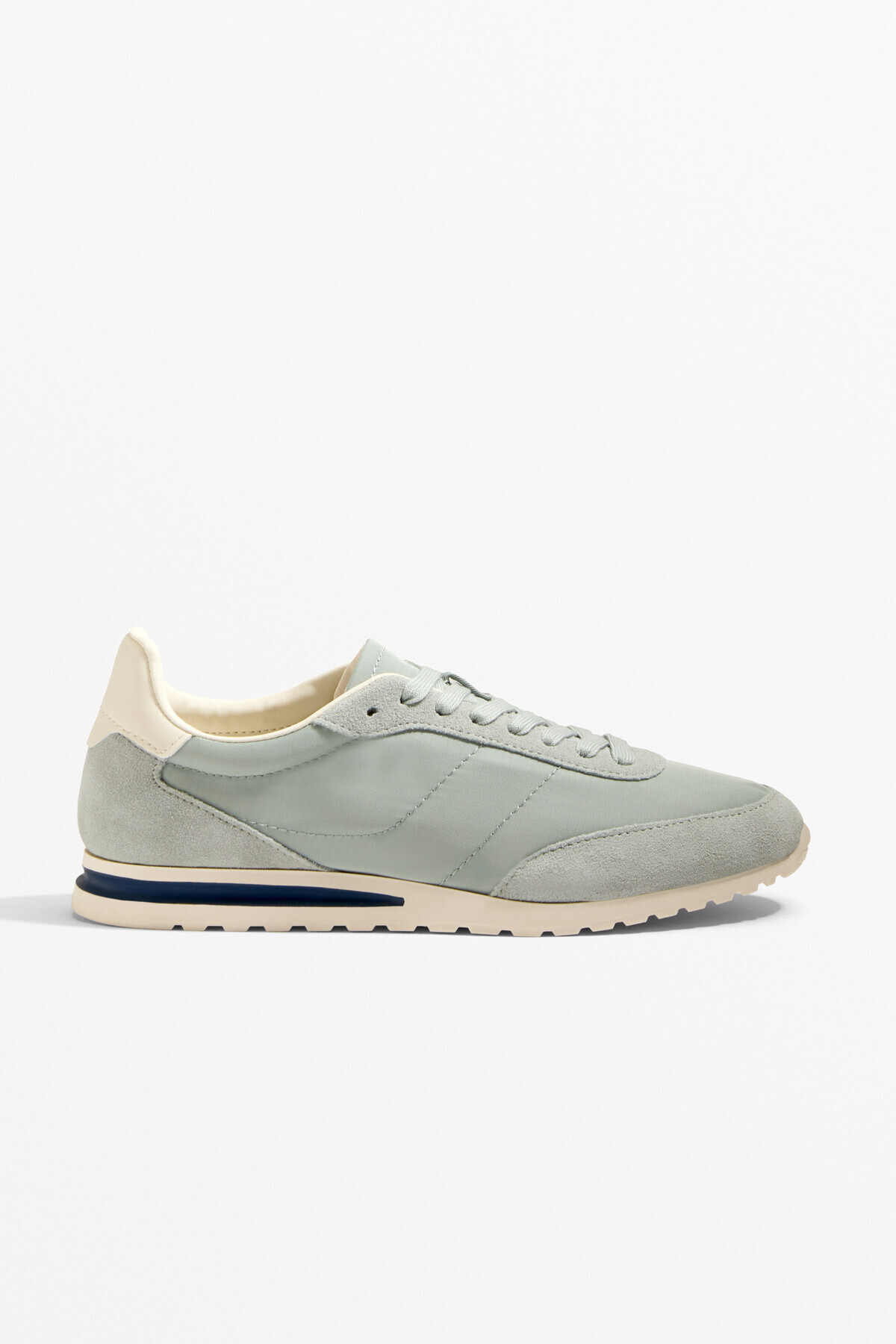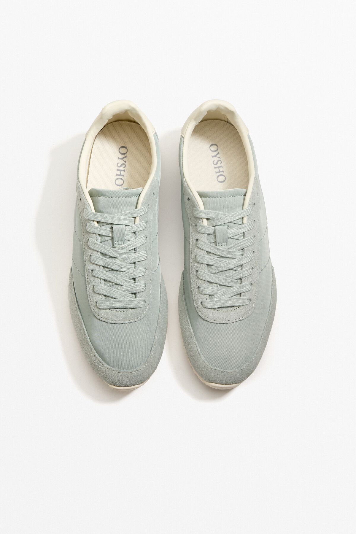 Oysho – حذاء رياضي نسائي بتفاصيل سويد ونايلون بلون أخضر مائي