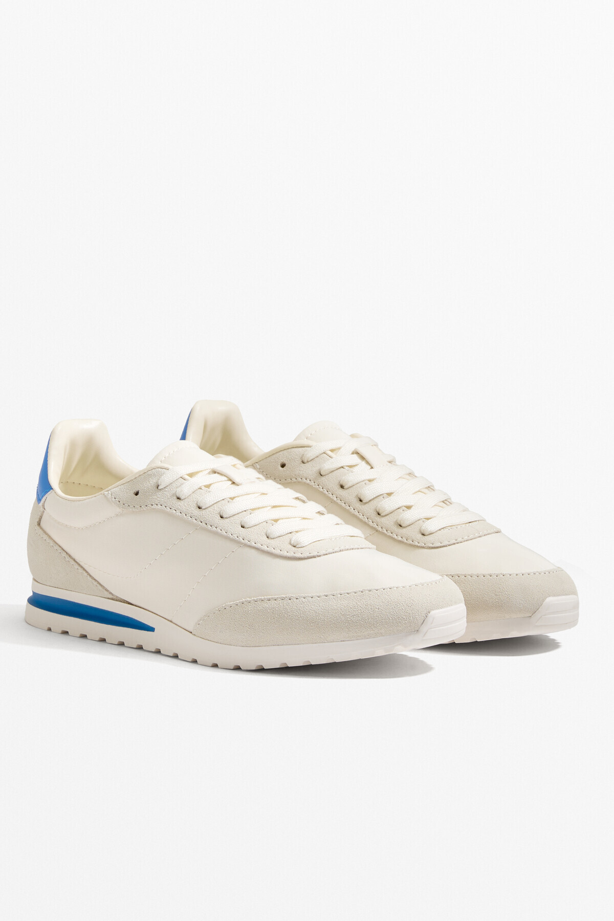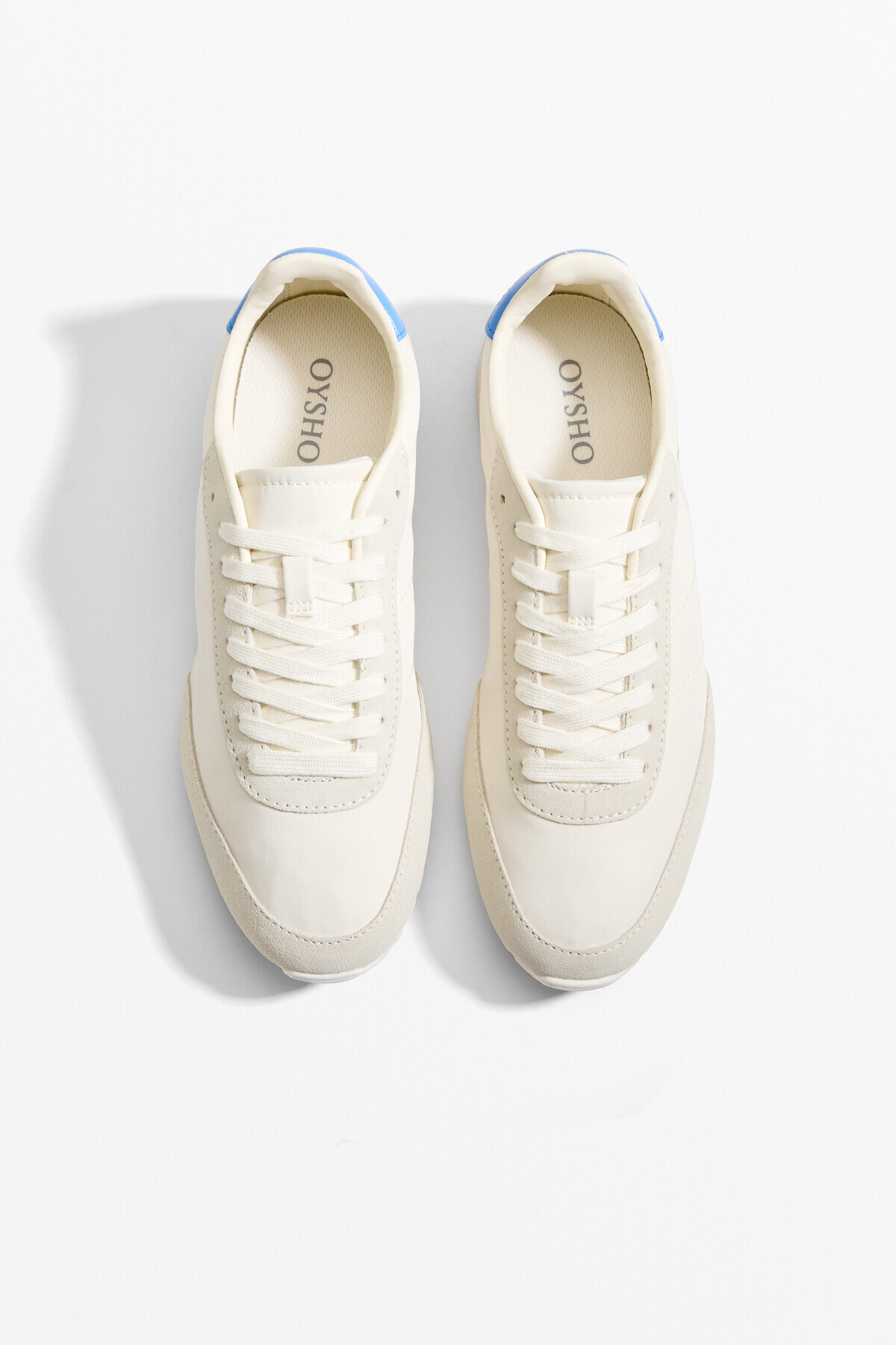 Oysho – حذاء رياضي نسائي بتفاصيل سويد ونايلون بلون إكرو