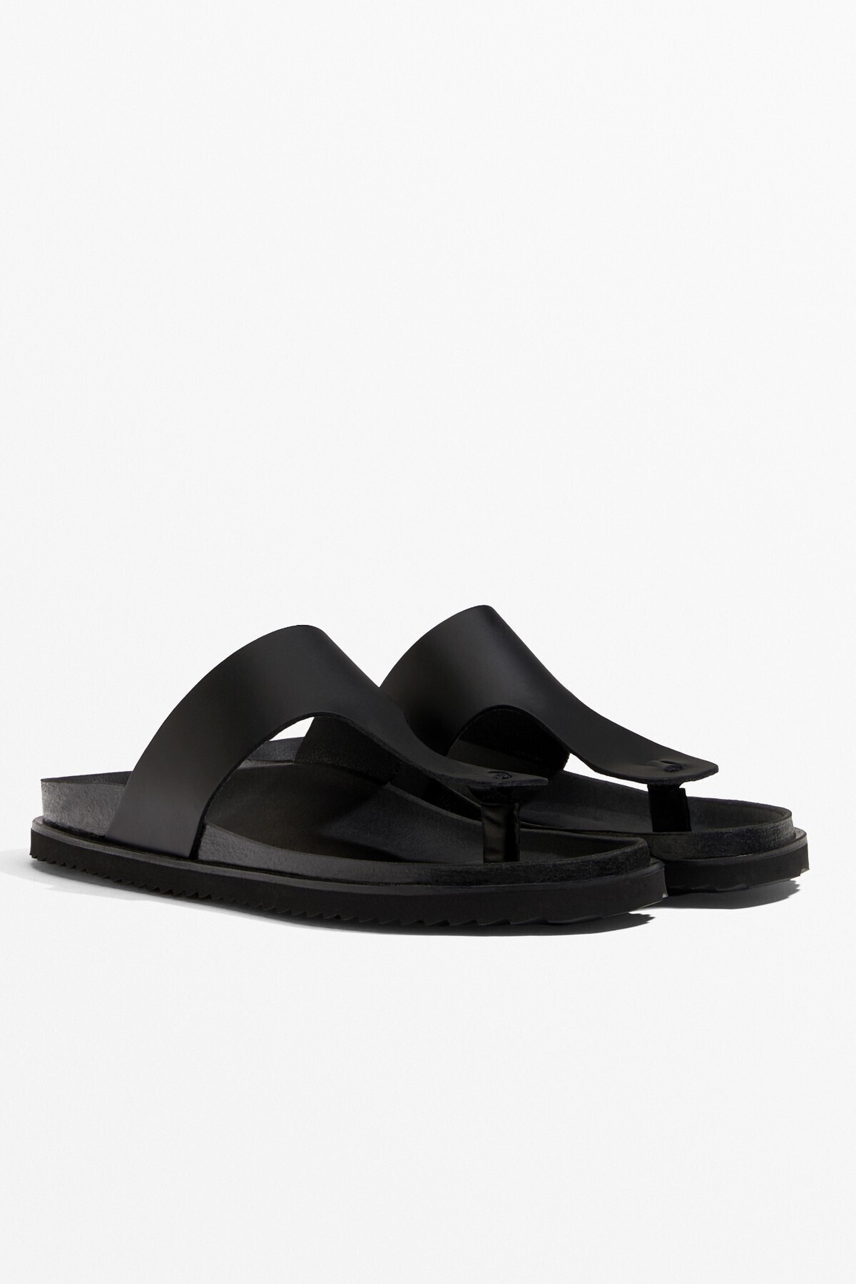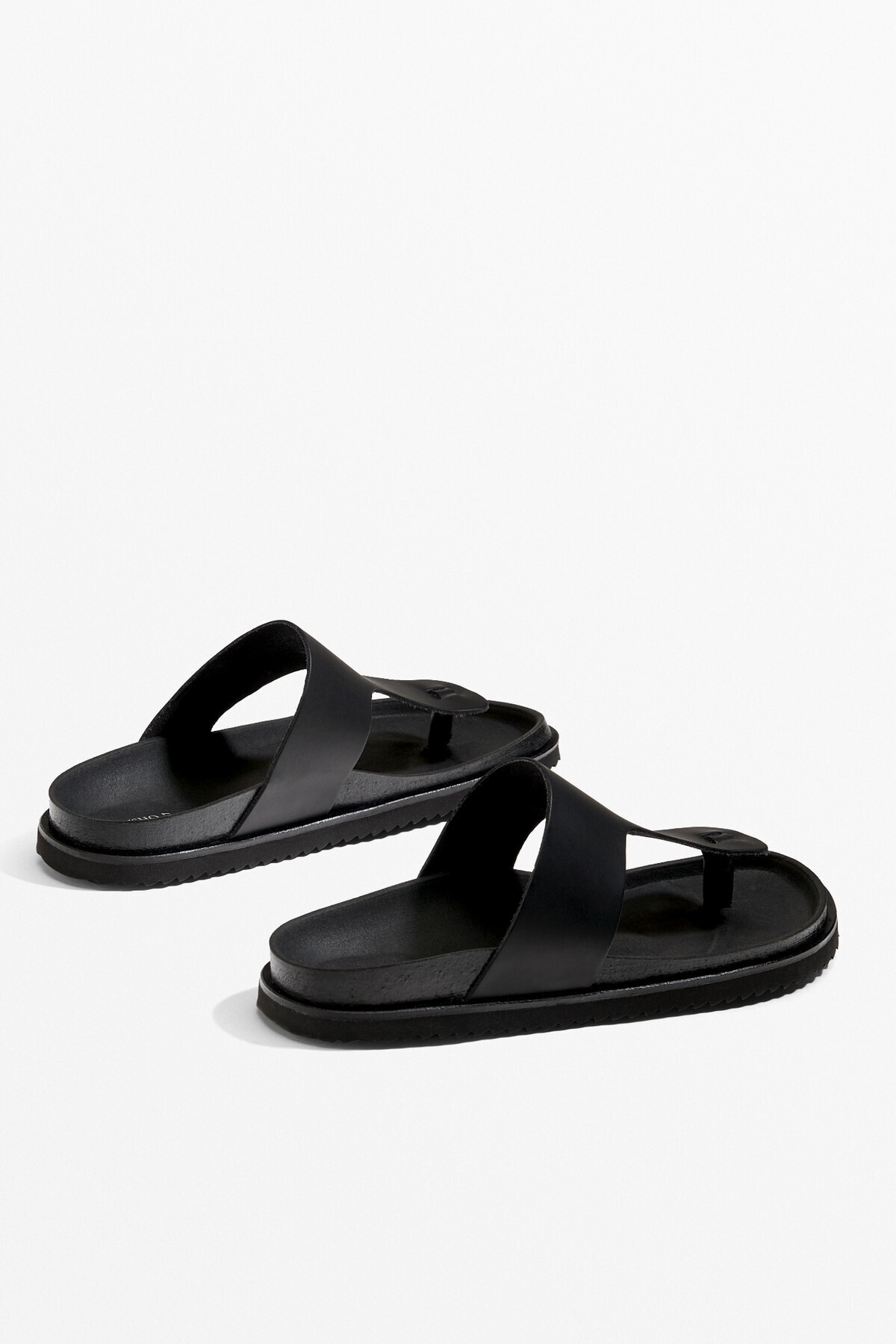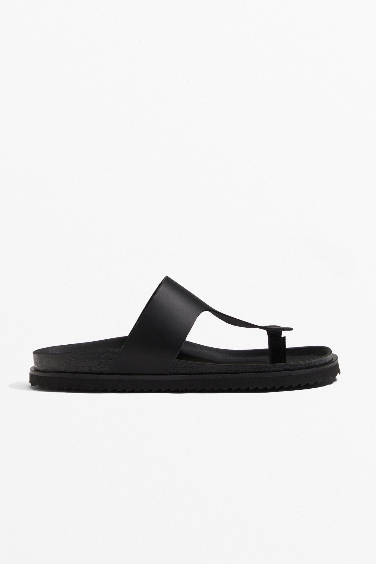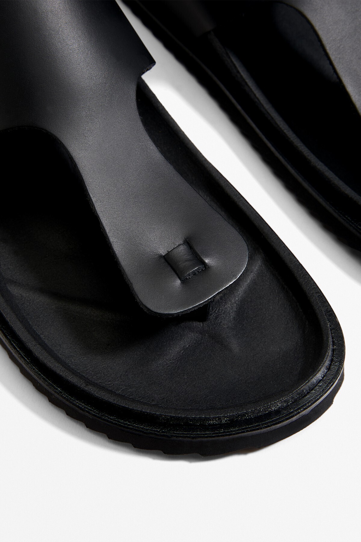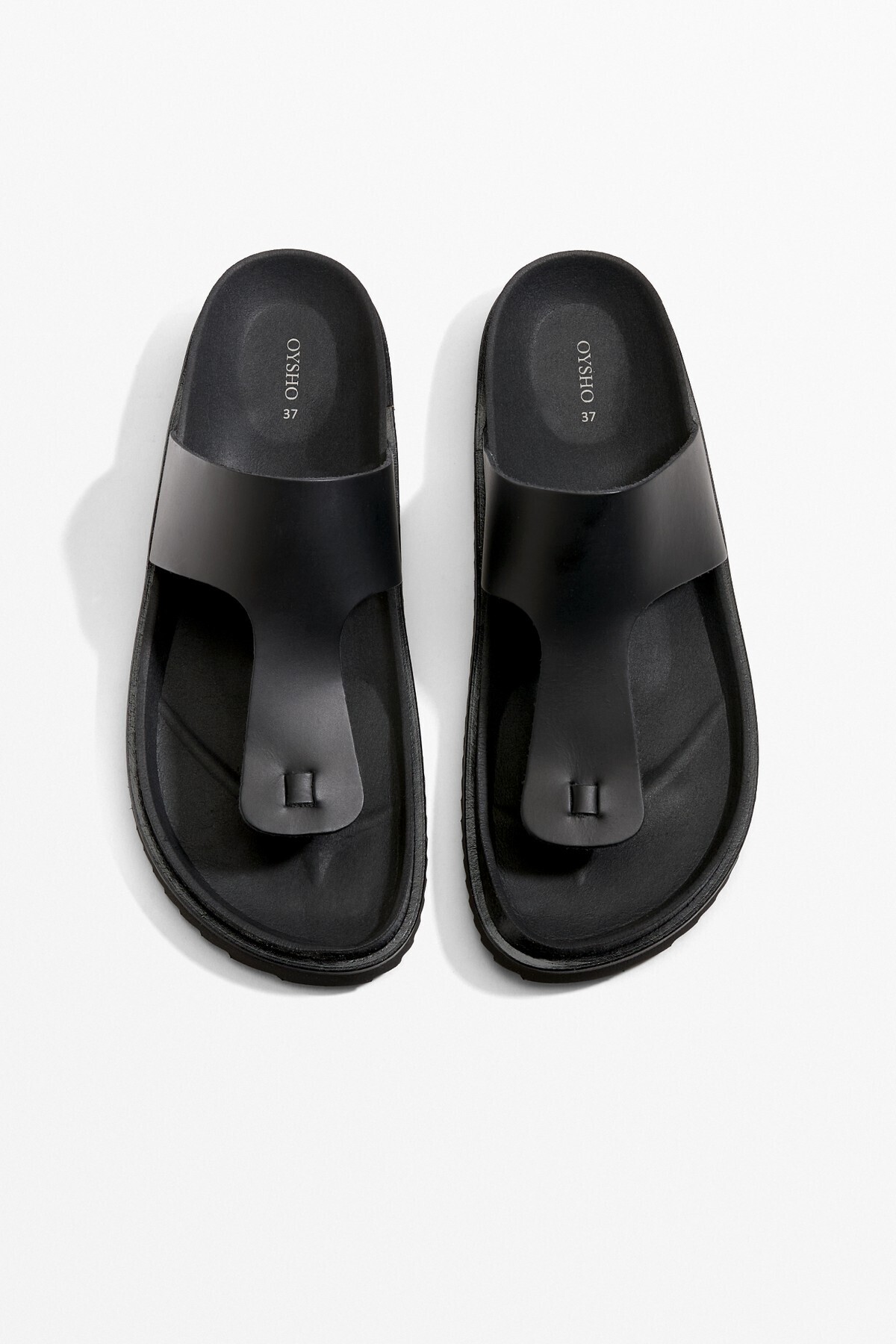 Oysho – صندل نسائي بتصميم T من الجلد الطبيعي بلون أسود