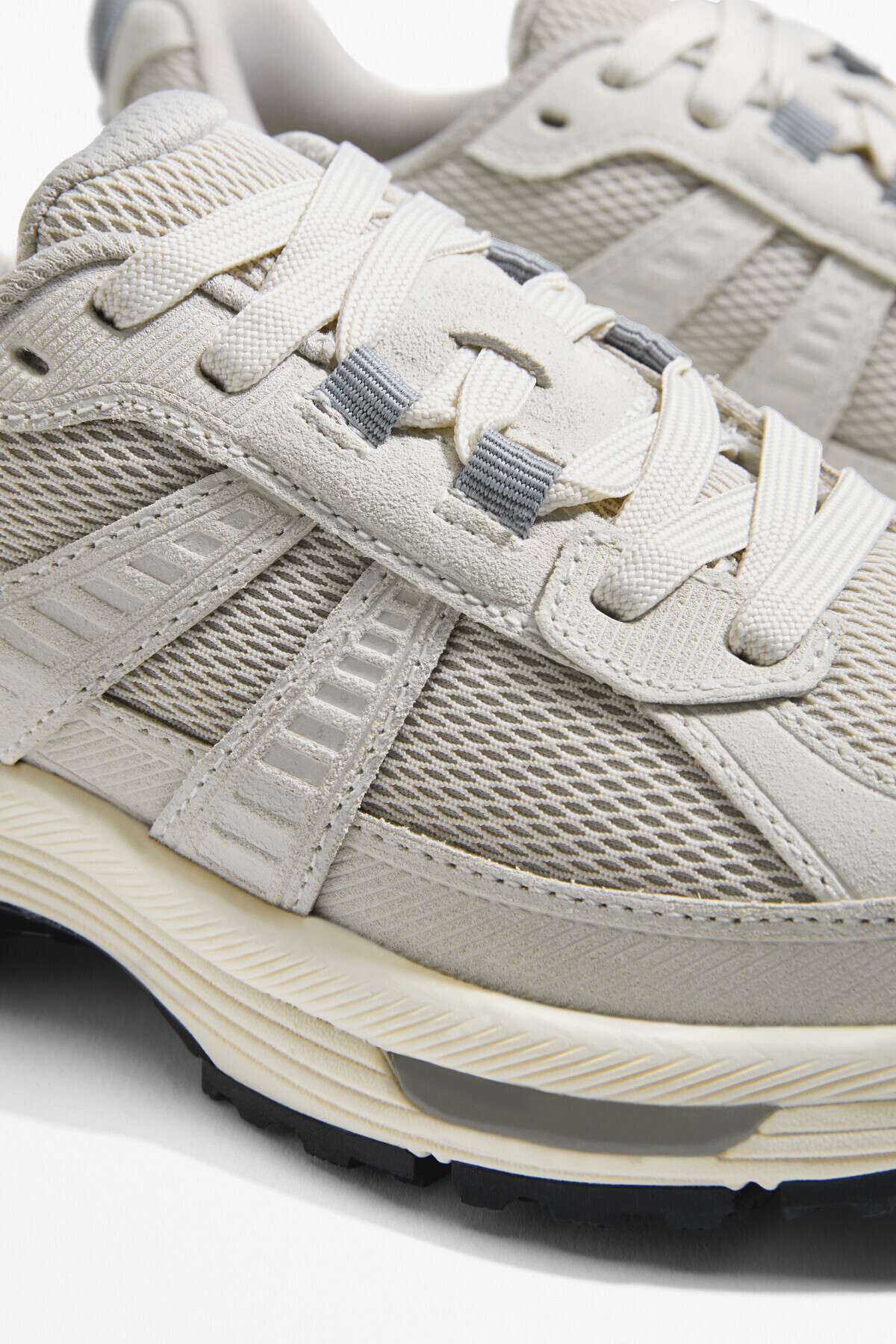 استمتعي بالأداء والراحة مع هذا الحذاء الرياضي من Oysho، المصمم بتفاصيل أنيقة تجمع بين السويد الطبيعي والنسيج الشبكي. يأتي بلون رمادي هادئ مع نعل مسطح بارتفاع قصير، ومقدمة مستديرة، ويتميز بتقنية Ortholite® في النعل الداخلي لامتصاص الصدمات ودعم القدم أثناء الحركة.