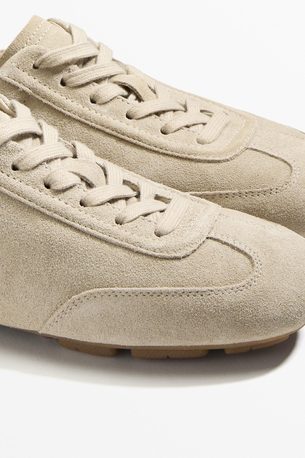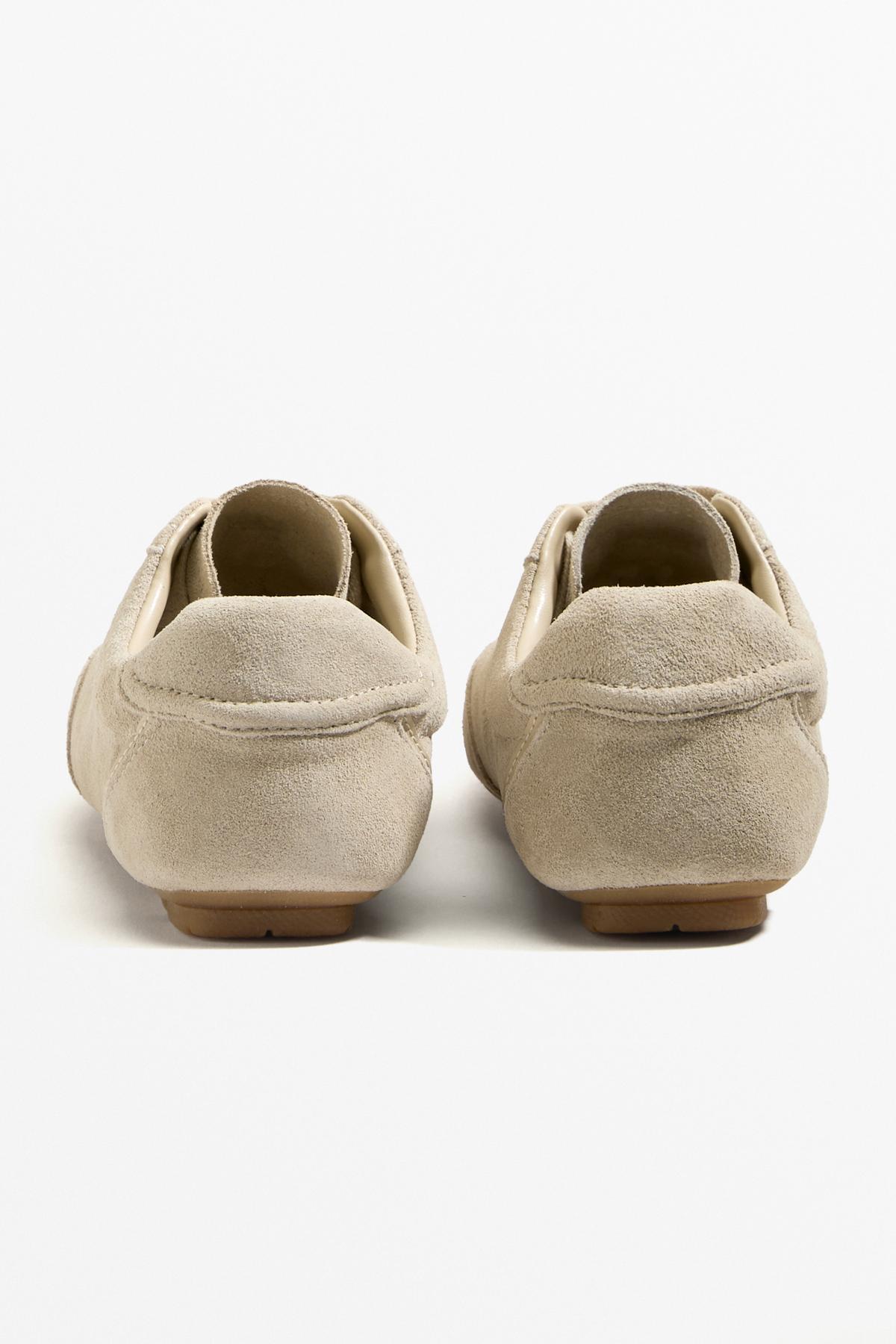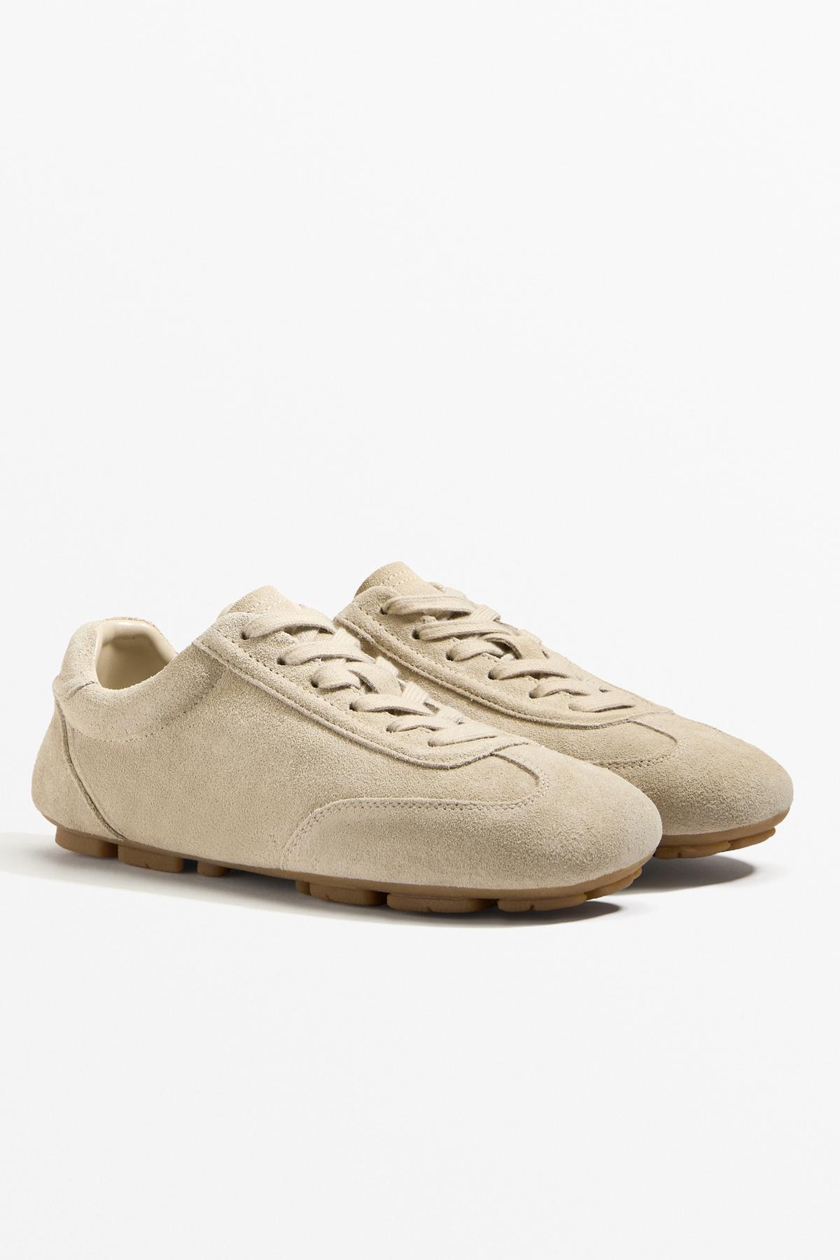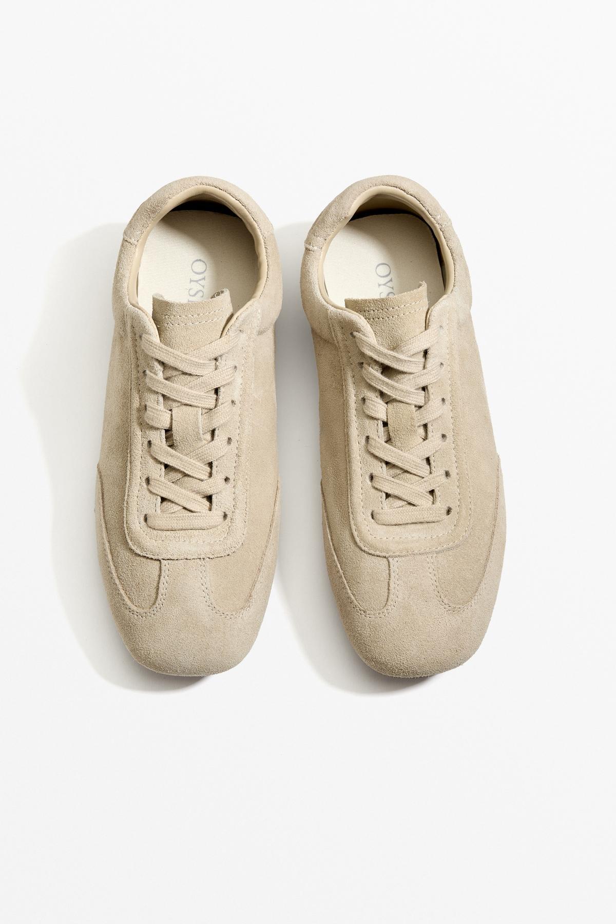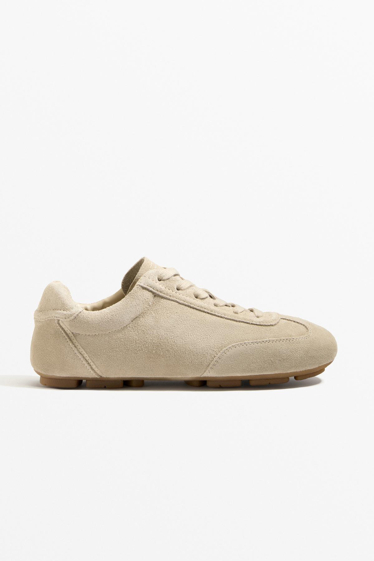 Oysho – حذاء رياضي نسائي من الجلد السويدي الطبيعي بلون بيج
