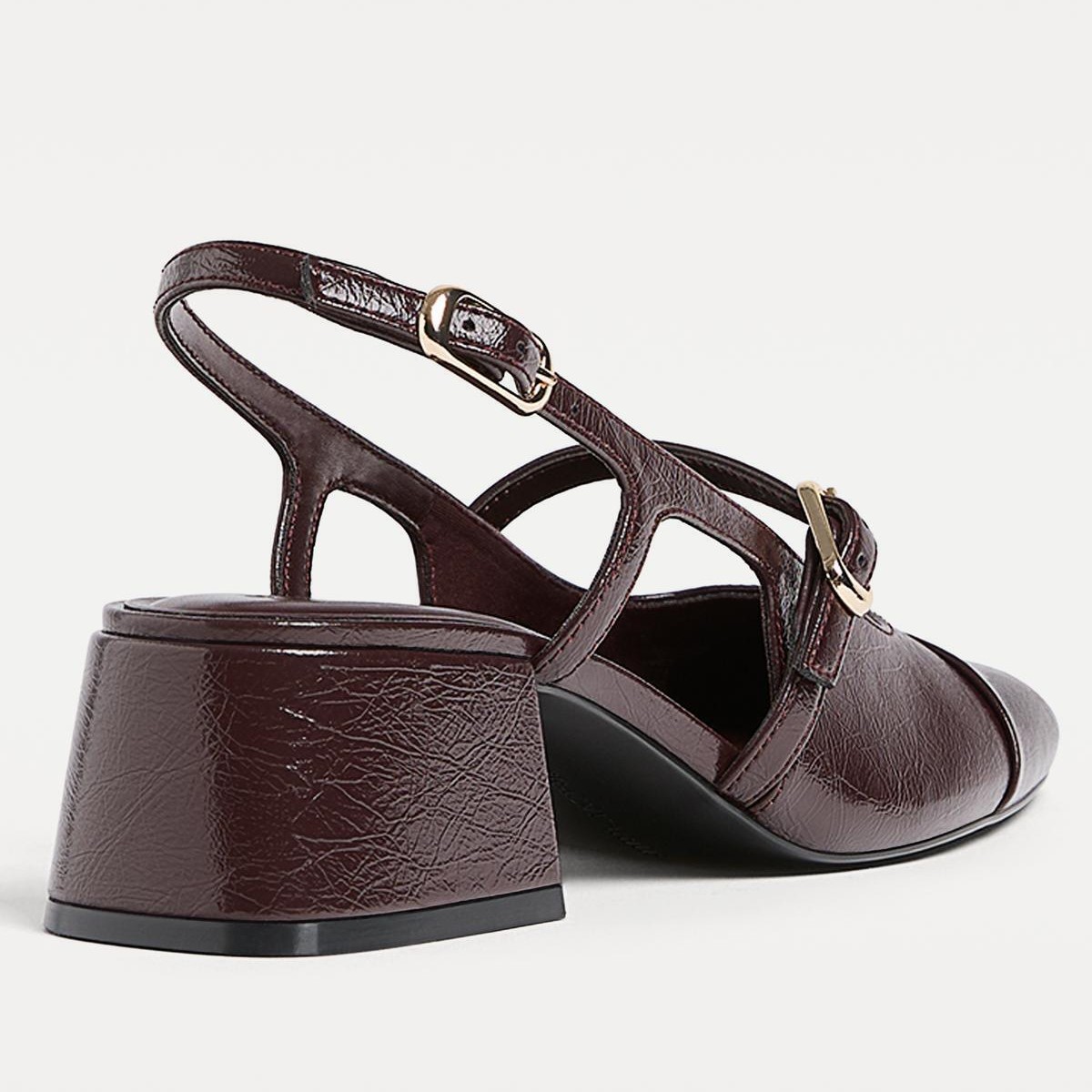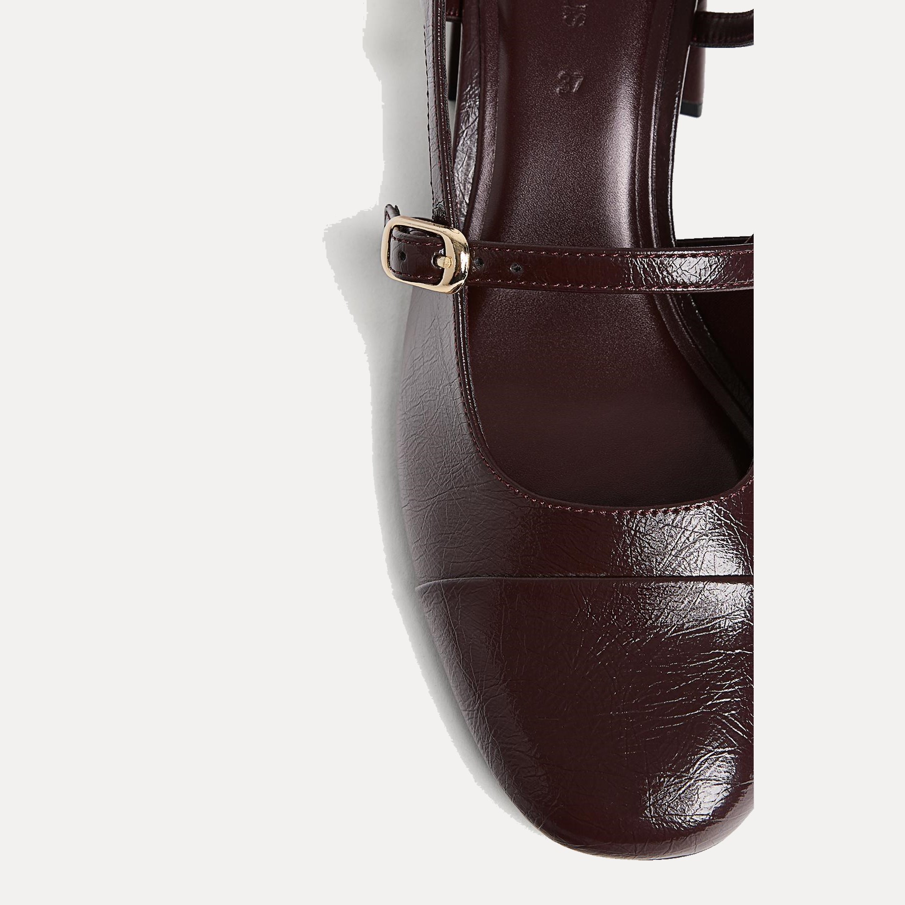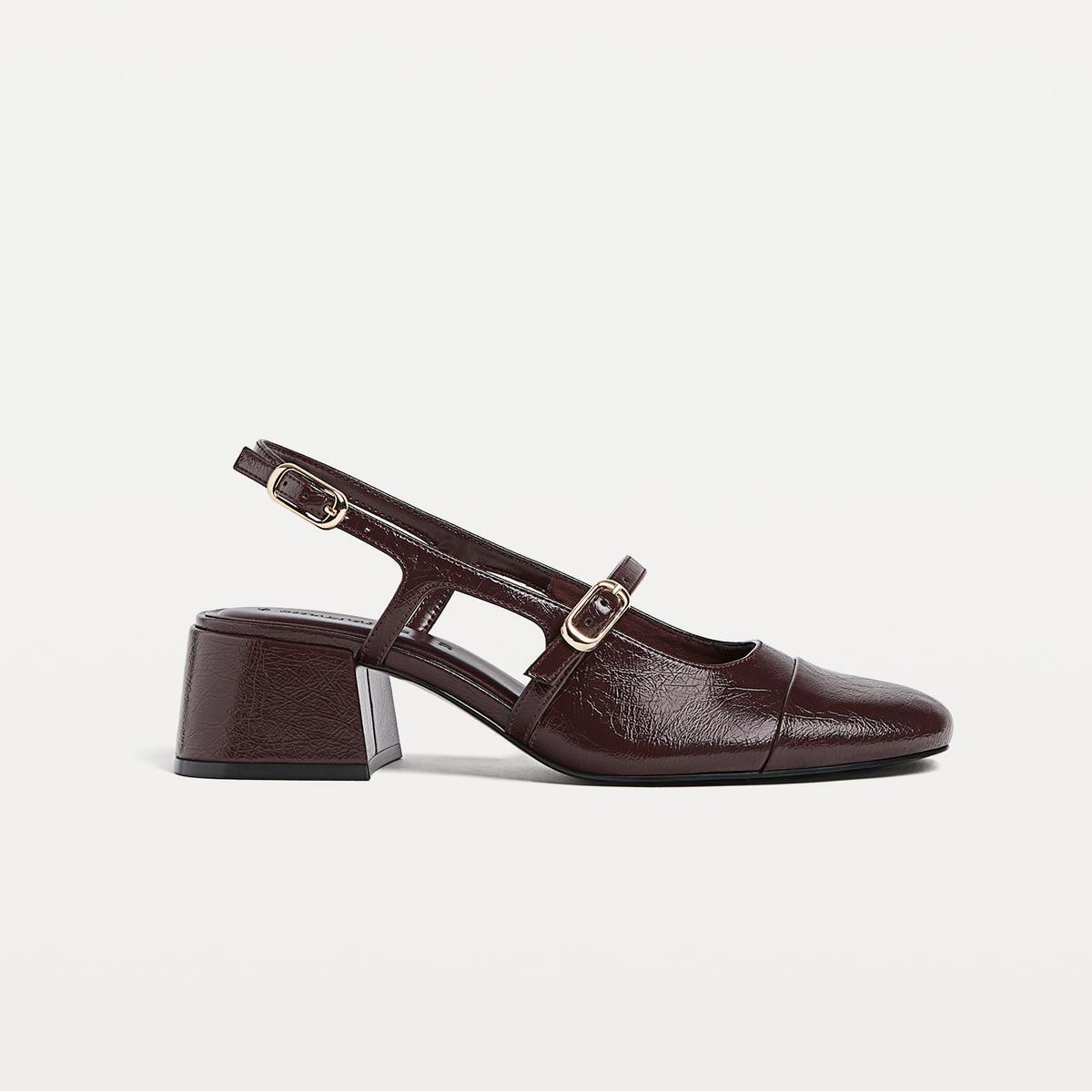 Stradivarius – حذاء نسائي Mary Jane بكعب عريض ولمسة جلد صناعي بلون بوردو