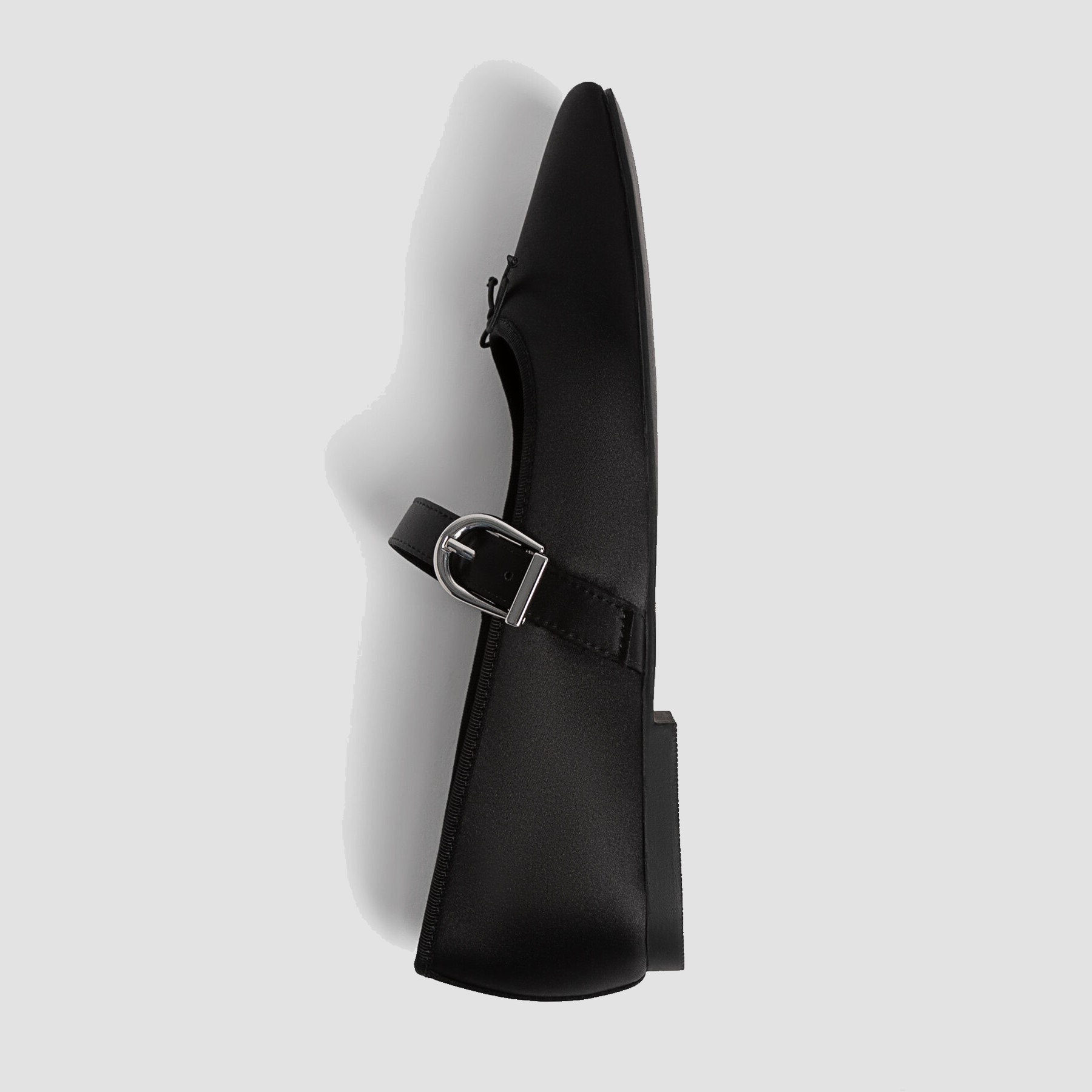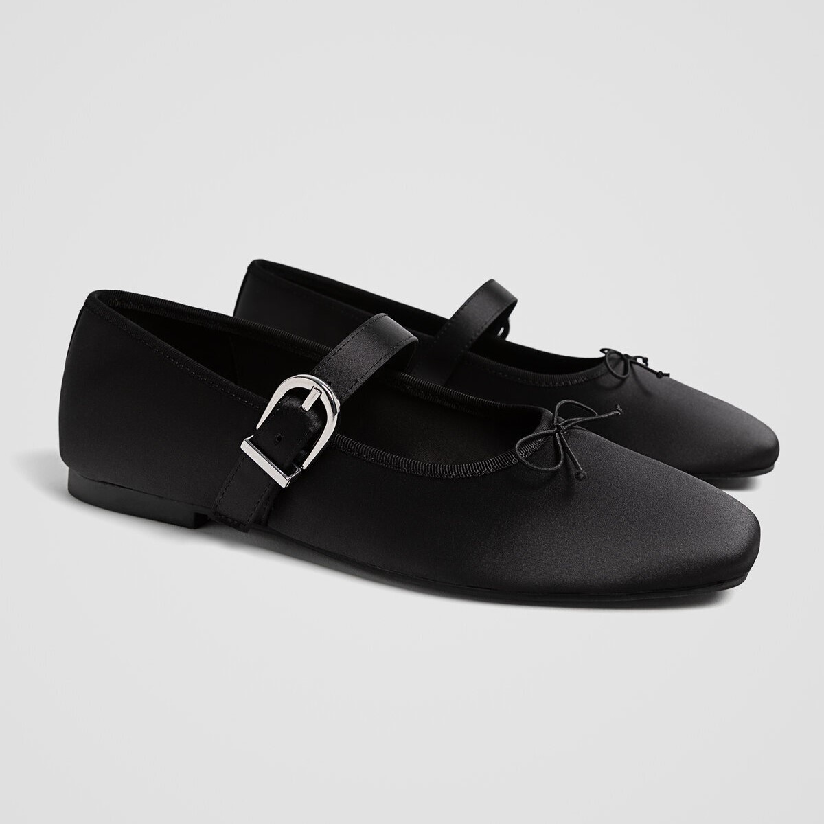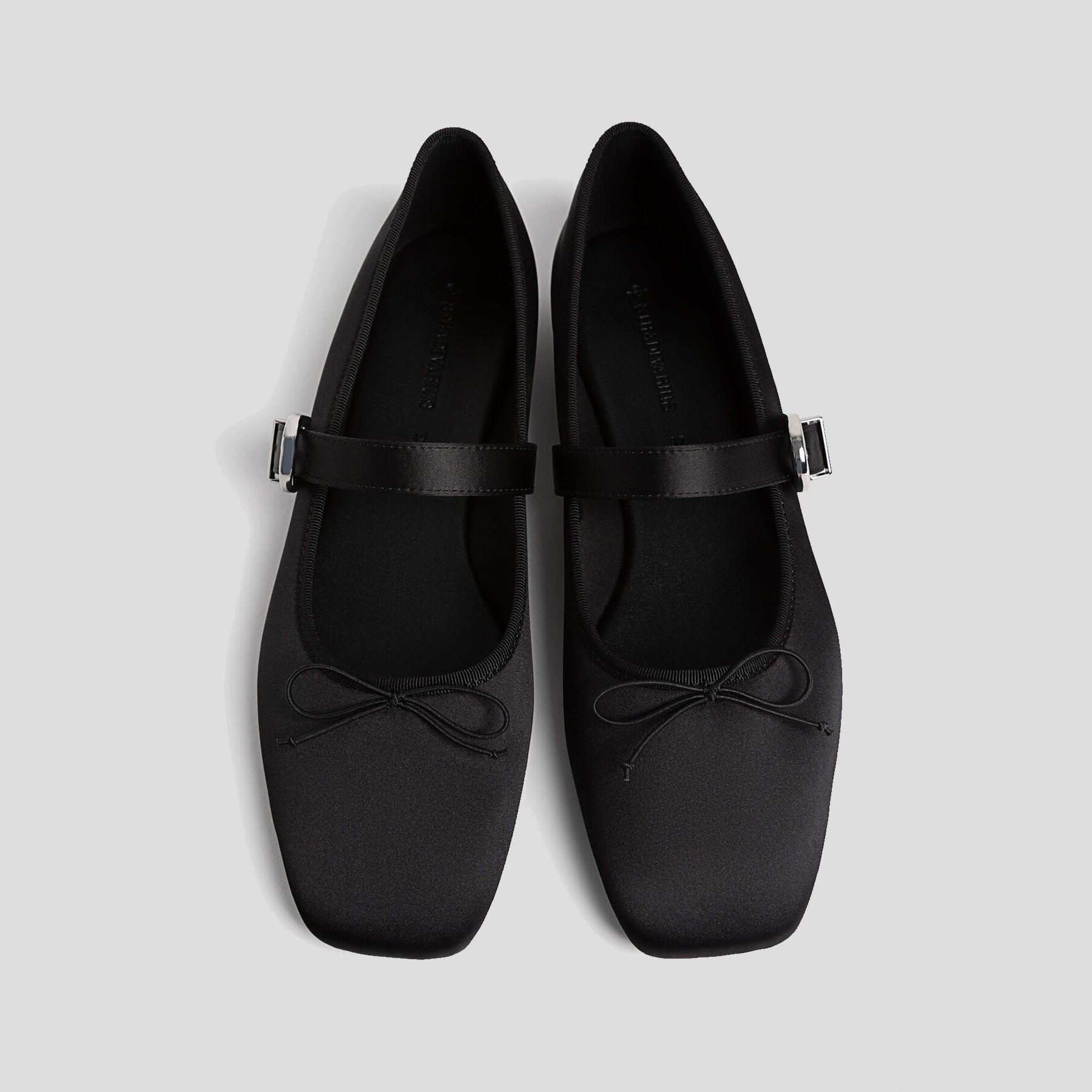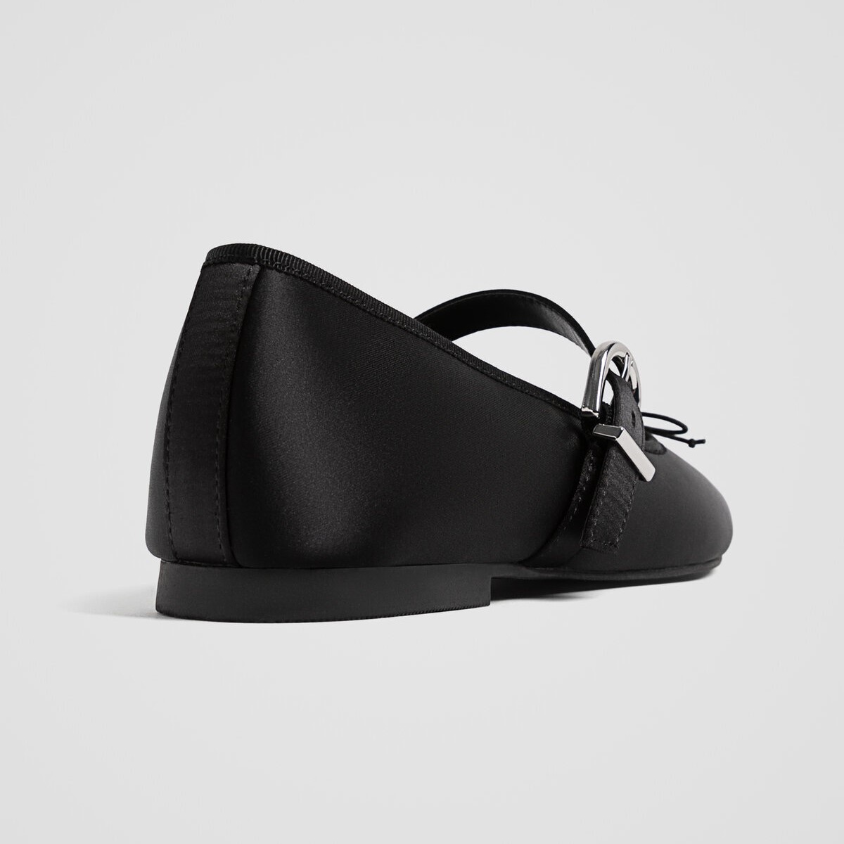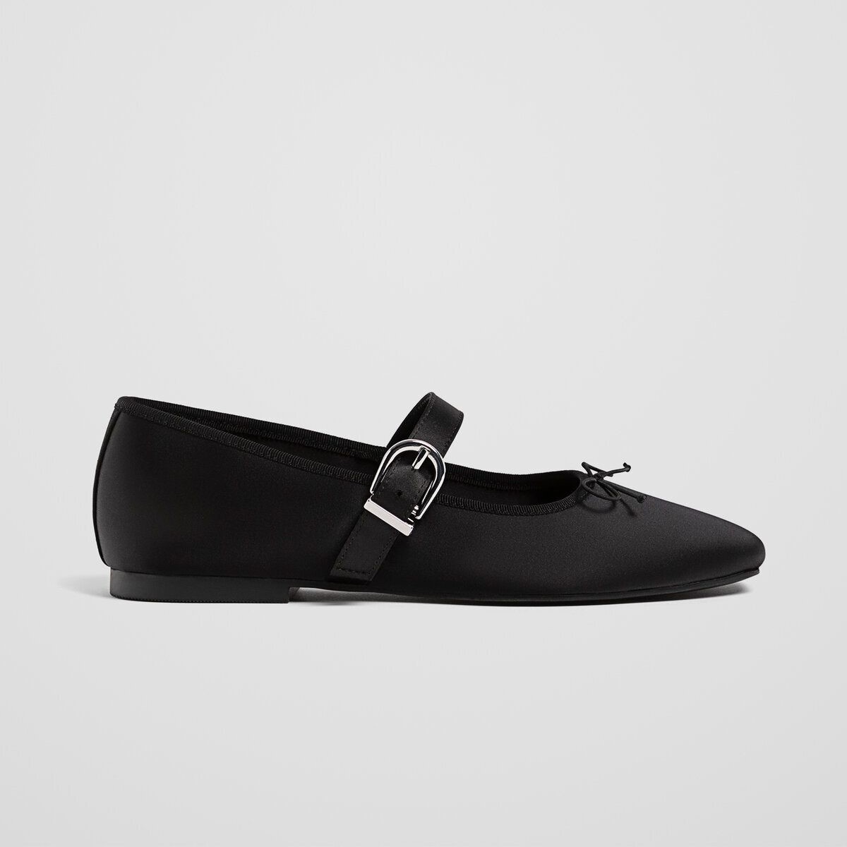 Stradivarius – بَالِرينا نسائية من الساتان بتفصيل فيونكة وشريط متقاطع بلون أسود