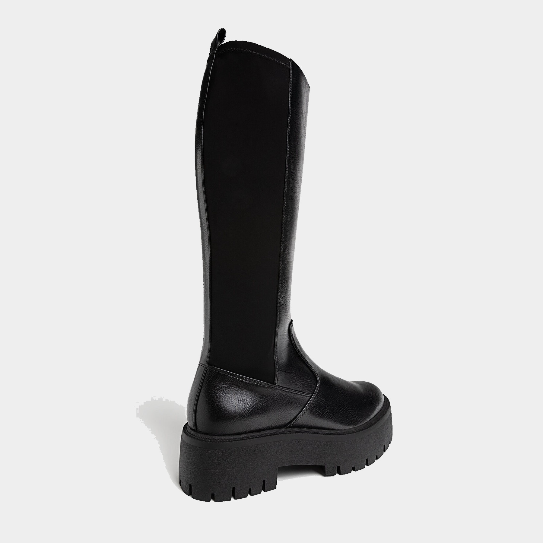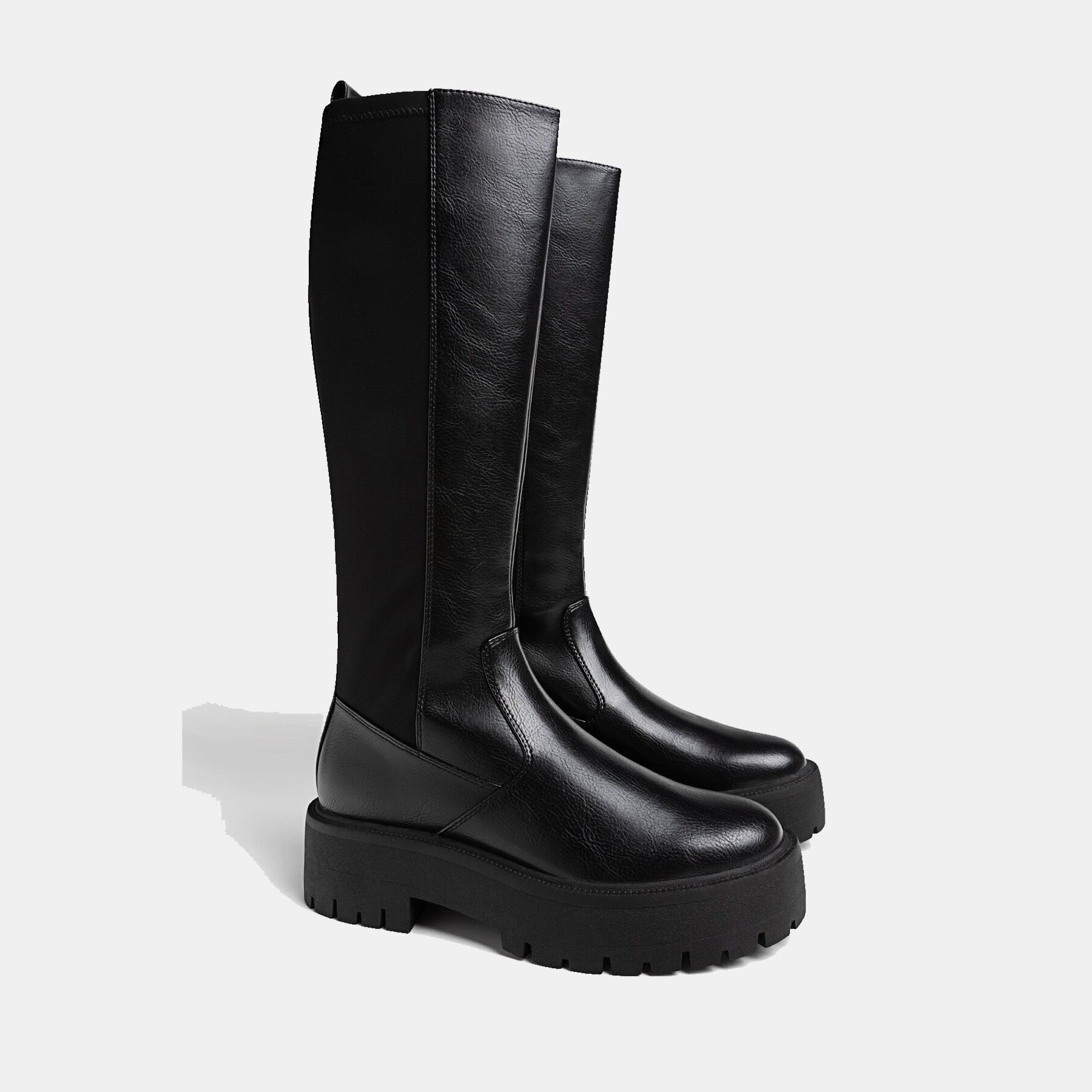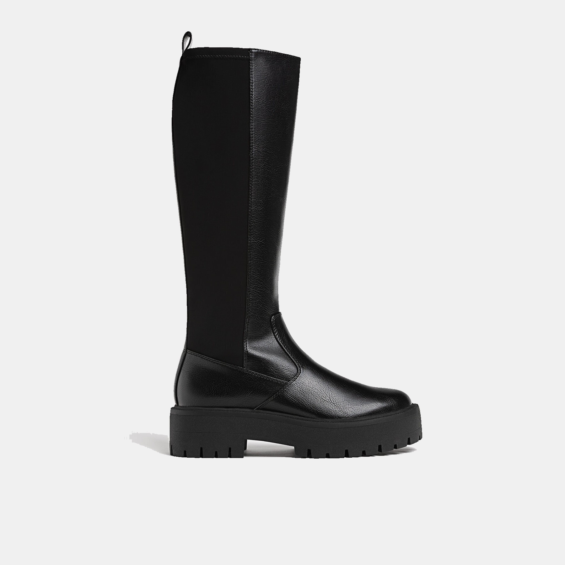 ارتقي بإطلالتك الشتوية مع هذا البوت الطويل من Stradivarius، المصمم بخطوط ناعمة ولمسة جلد صناعي أنيق. يأتي بلون أسود كلاسيكي مع كعب متوسط بارتفاع 5 سم، ومقدمة مستديرة، ليمنحك مظهراً عملياً ومريحاً يناسب الإطلالات اليومية أو الرسمية.