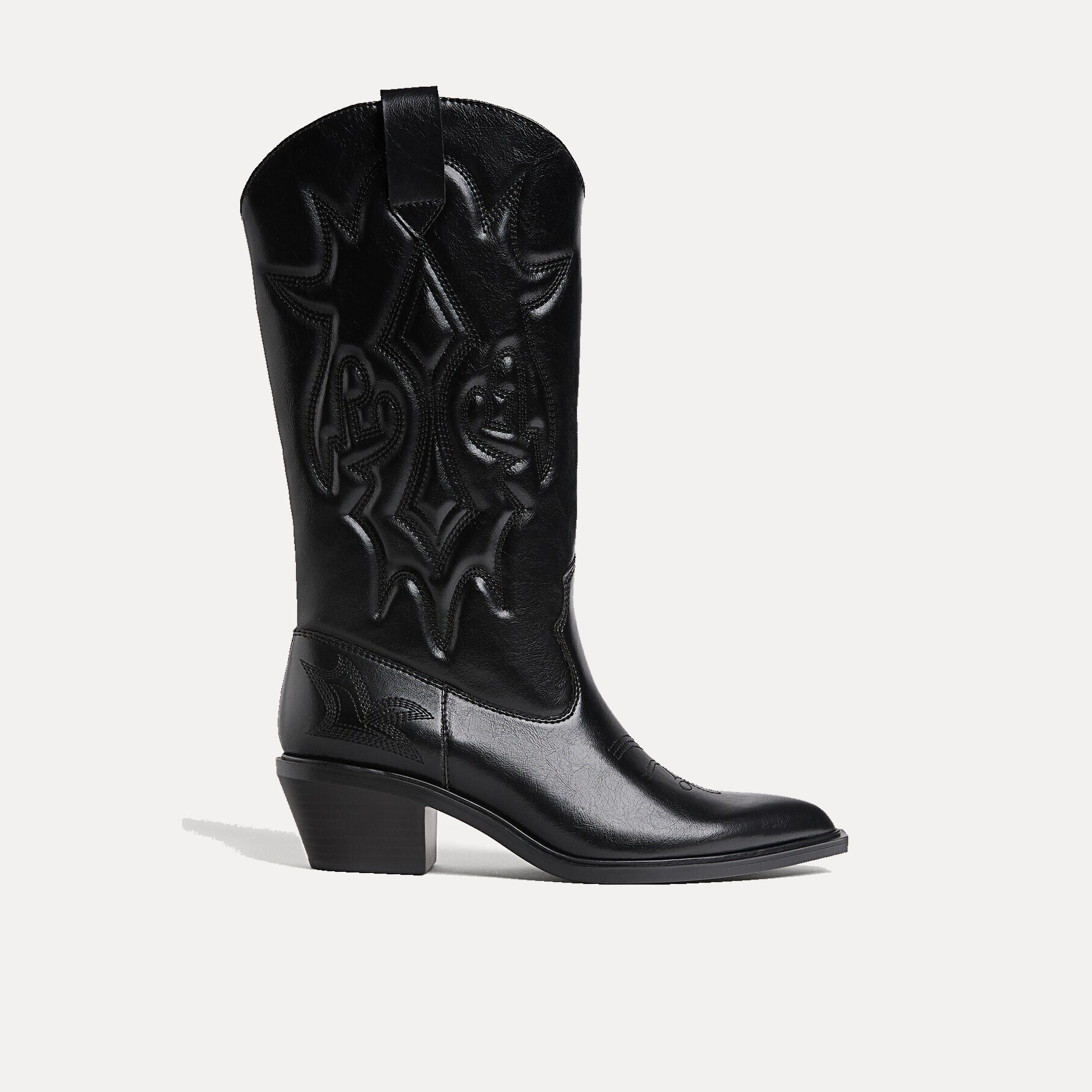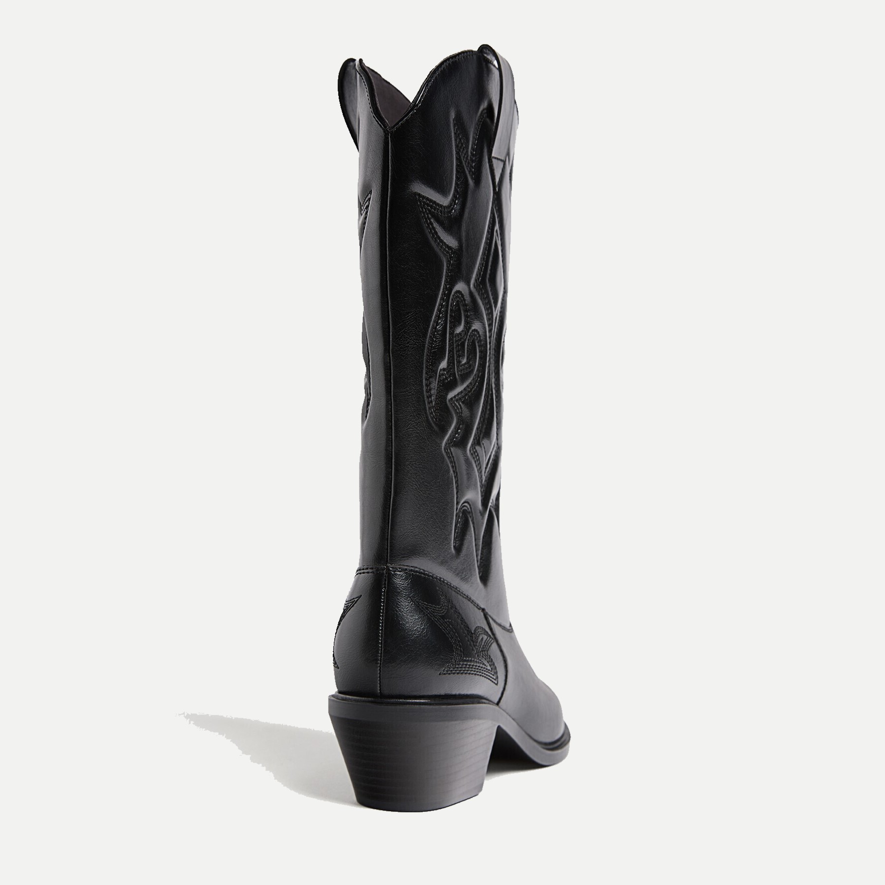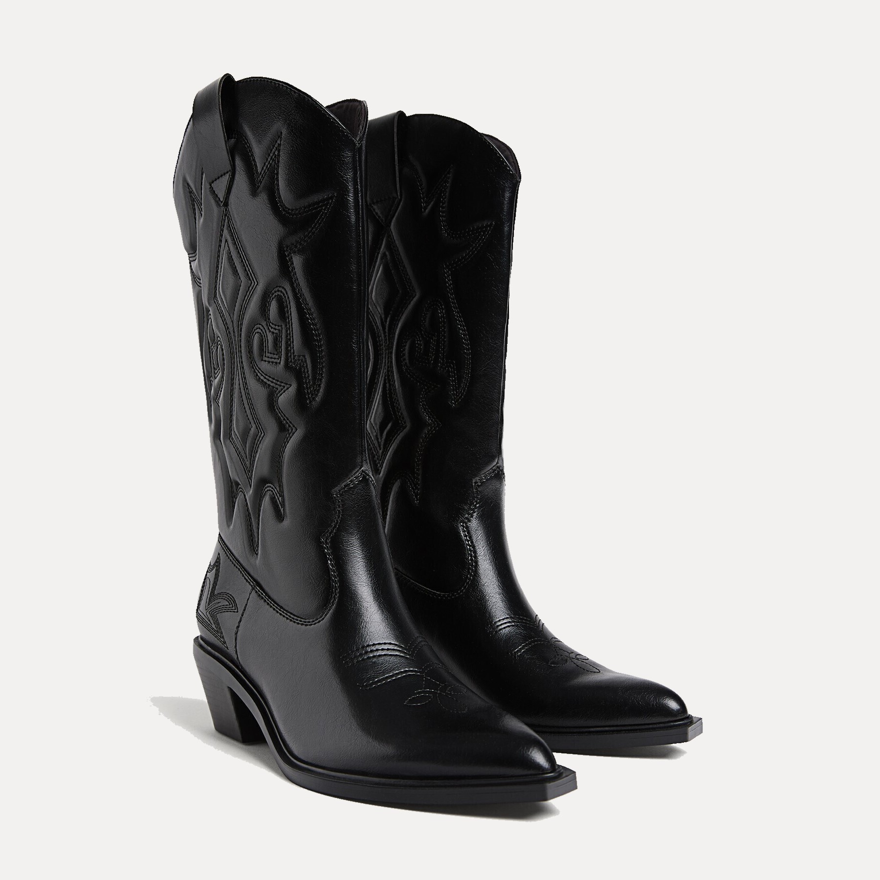 Stradivarius – بوت نسائي بكعب رفيع وتصميم كاوبوي أنيق بلون أسود
