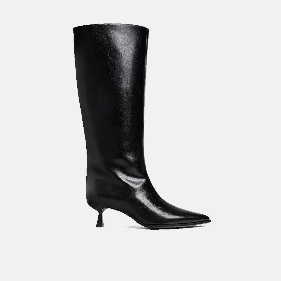 تميّزي بإطلالة عصرية تجمع بين الأناقة والعملية مع هذا البوت القصير من Stradivarius، المصمم بخامة جلد صناعي ناعمة وكعب رفيع بارتفاع 4 سم. يأتي بلون أسود أنيق مع مقدمة مدببة وقصة واسعة عند الساق، مما يمنحك مظهراً جذاباً ومريحاً في آنٍ واحد.