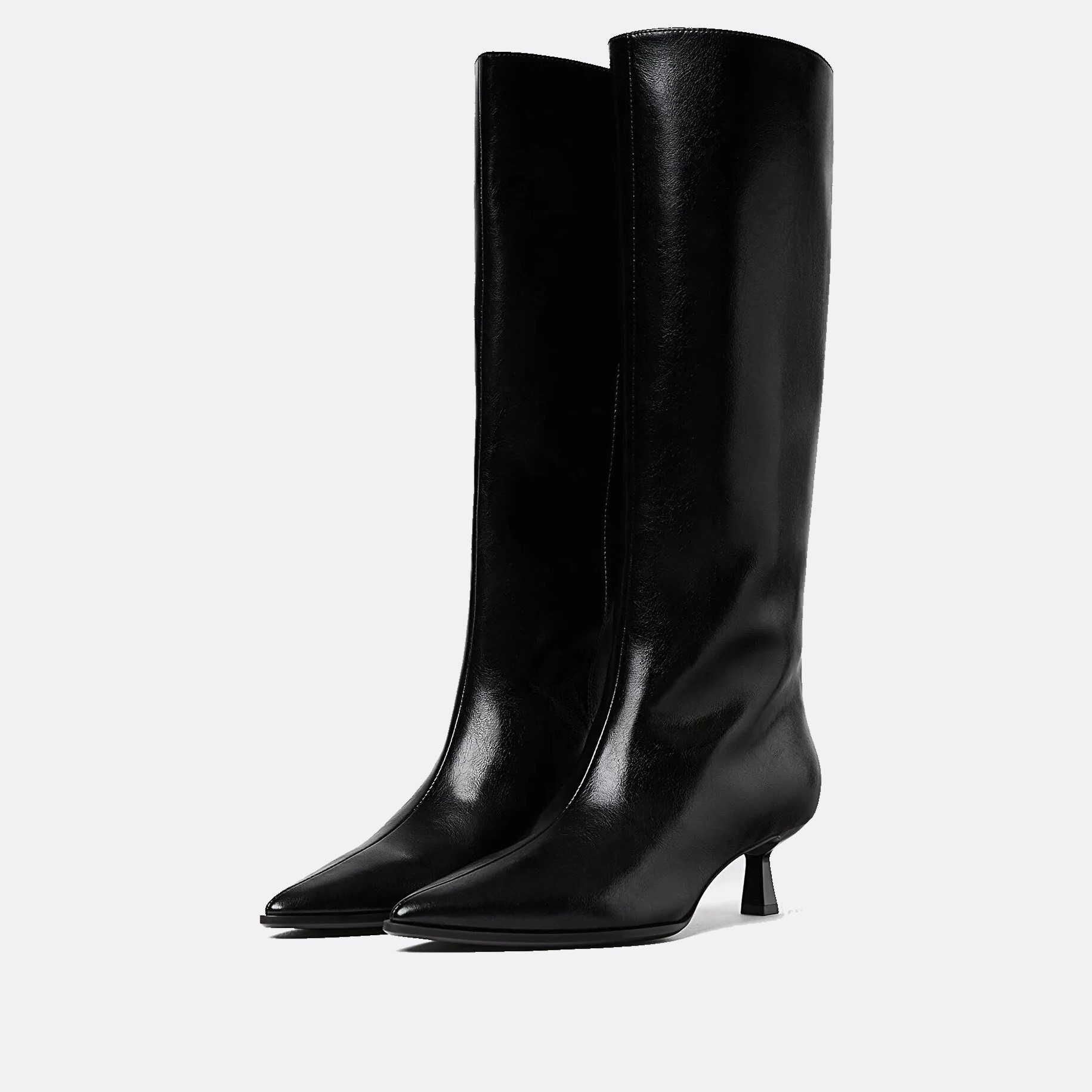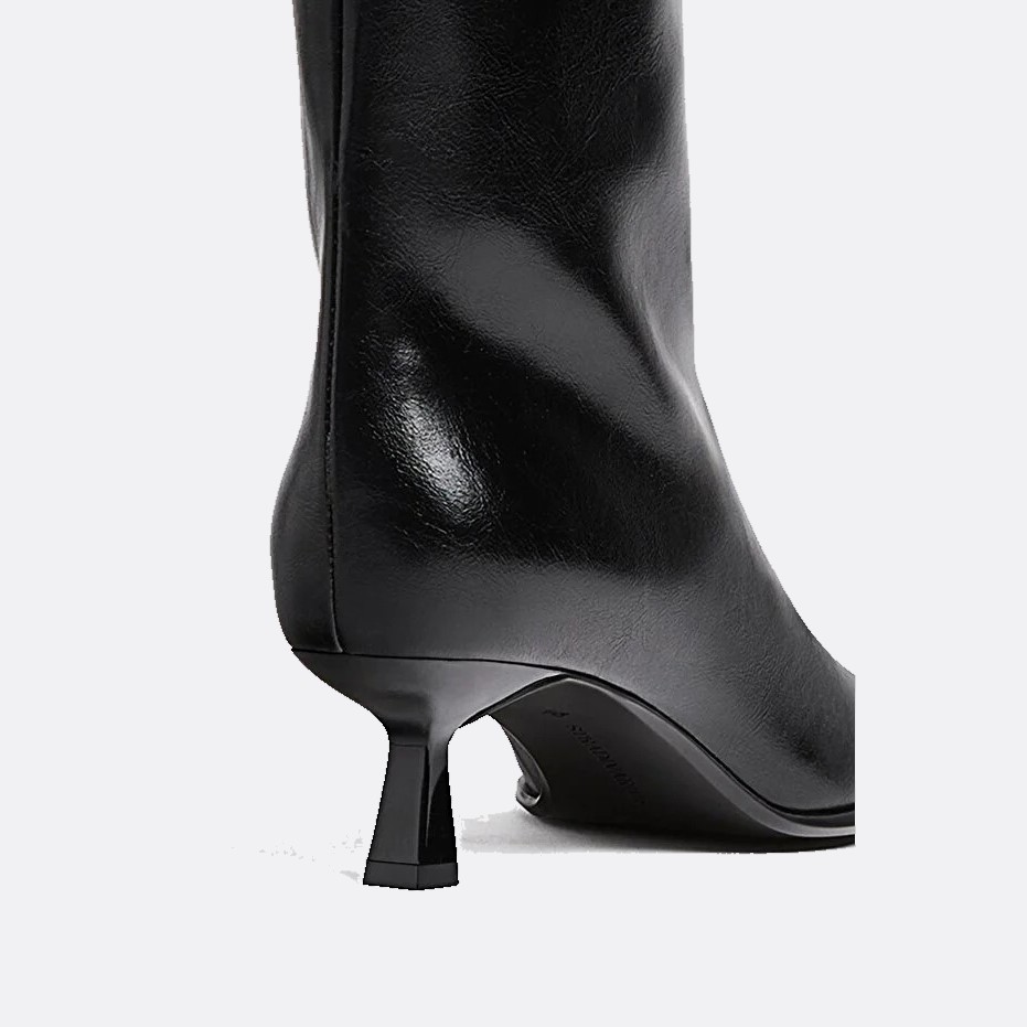 Stradivarius – بوت نسائي قصير بكعب رفيع ومقدمة مدببة بلون أسود