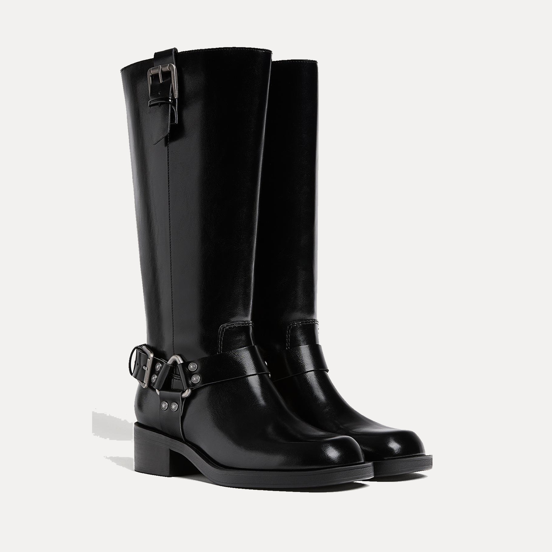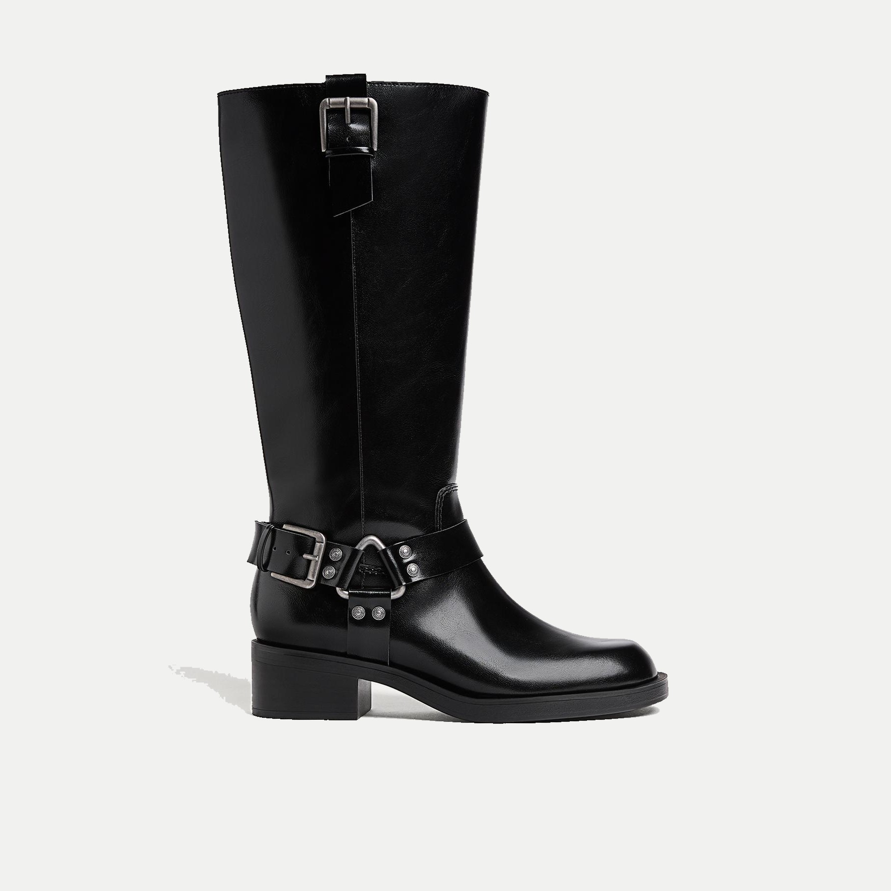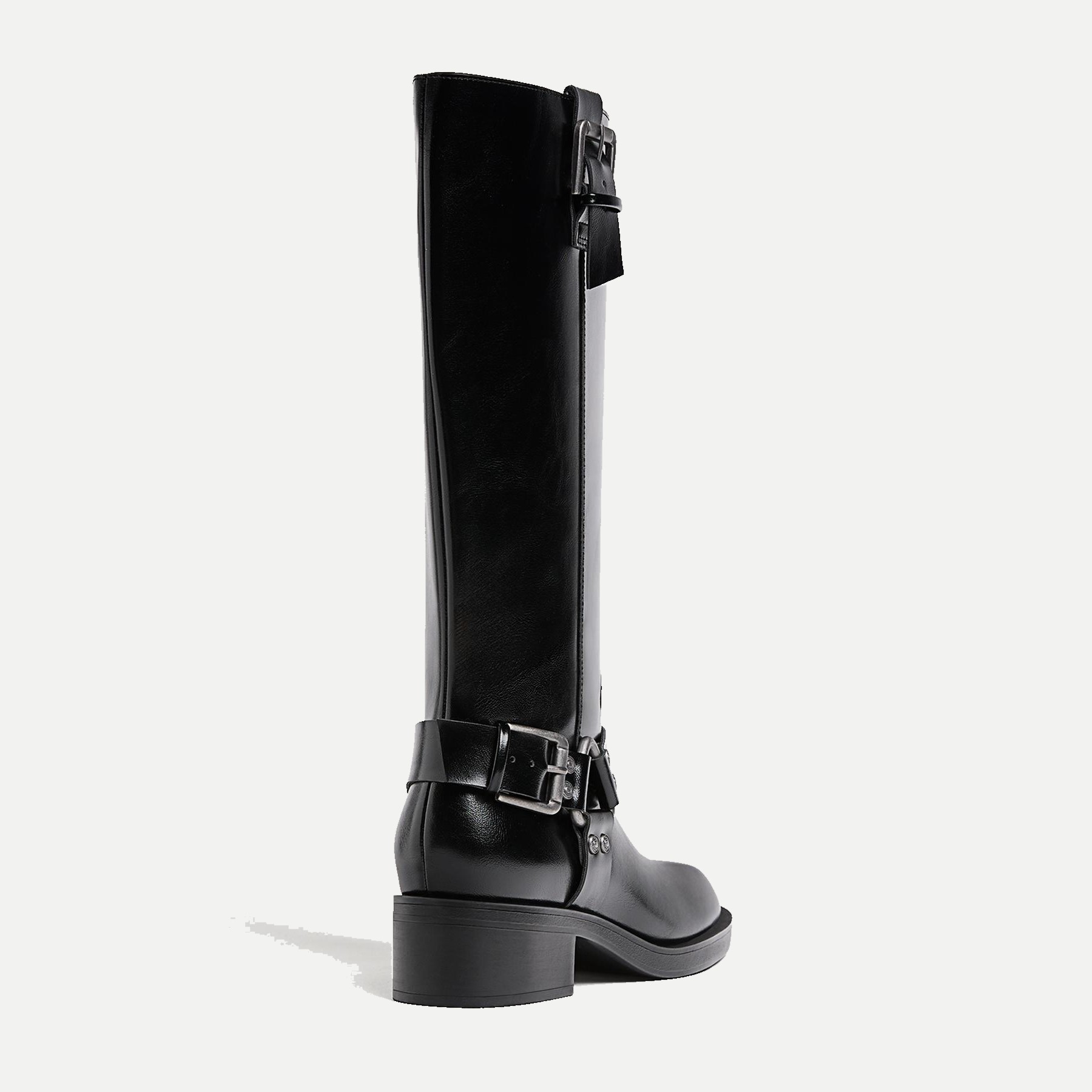 Stradivarius – بوت نسائي طويل بتصميم Binici وكعب رفيع بلون أسود