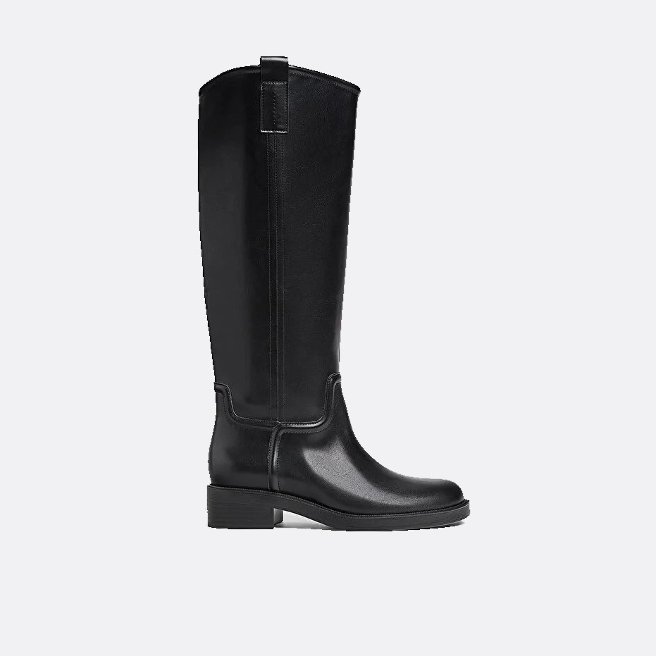 Stradivarius – بوت نسائي طويل بتصميم Binici وكعب عريض بلون أسود