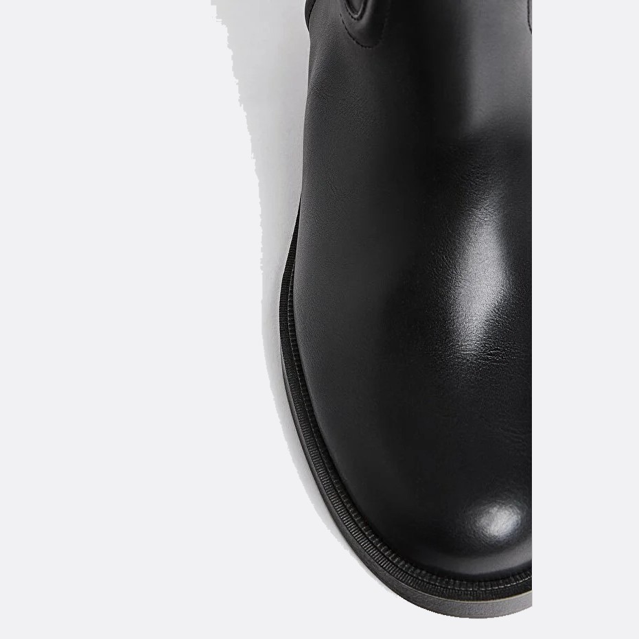 ارتقي بإطلالتك الشتوية مع هذا البوت الأنيق من Stradivarius، المصمم بأسلوب البينيتشي الكلاسيكي بخامة سويد ناعمة ولمسة جلد صناعي متينة. يأتي بلون أسود جذاب، مقدمة مستديرة، وكعب عريض بارتفاع 4.5 سم يمنحك ثباتاً وأناقة في كل خطوة.