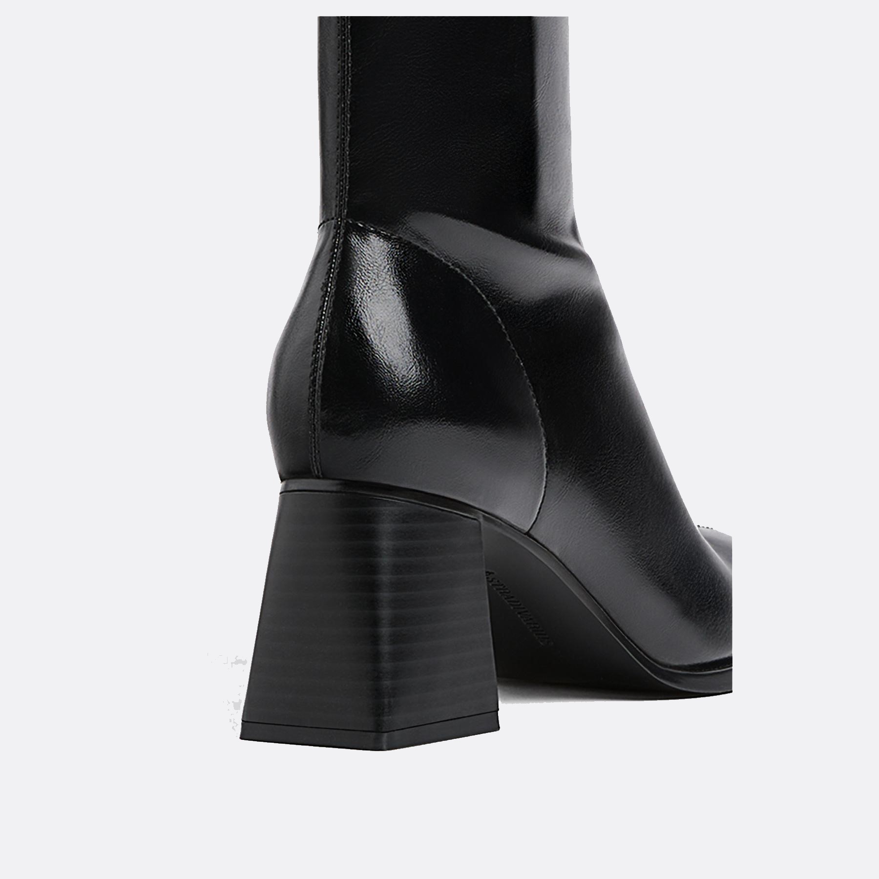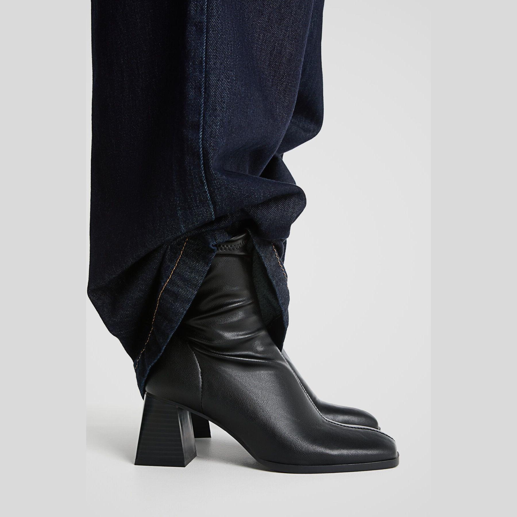 Stradivarius – بوت نسائي متوسط الطول من خامة ستريتش بتصميم عصري بلون أسود
