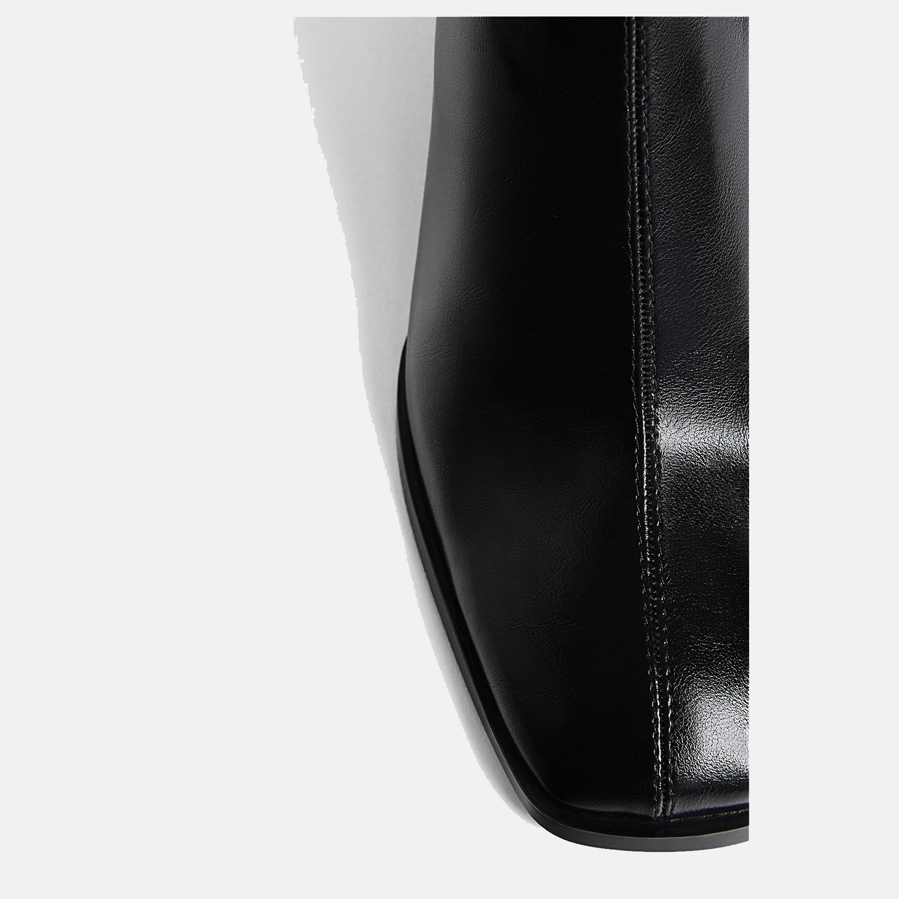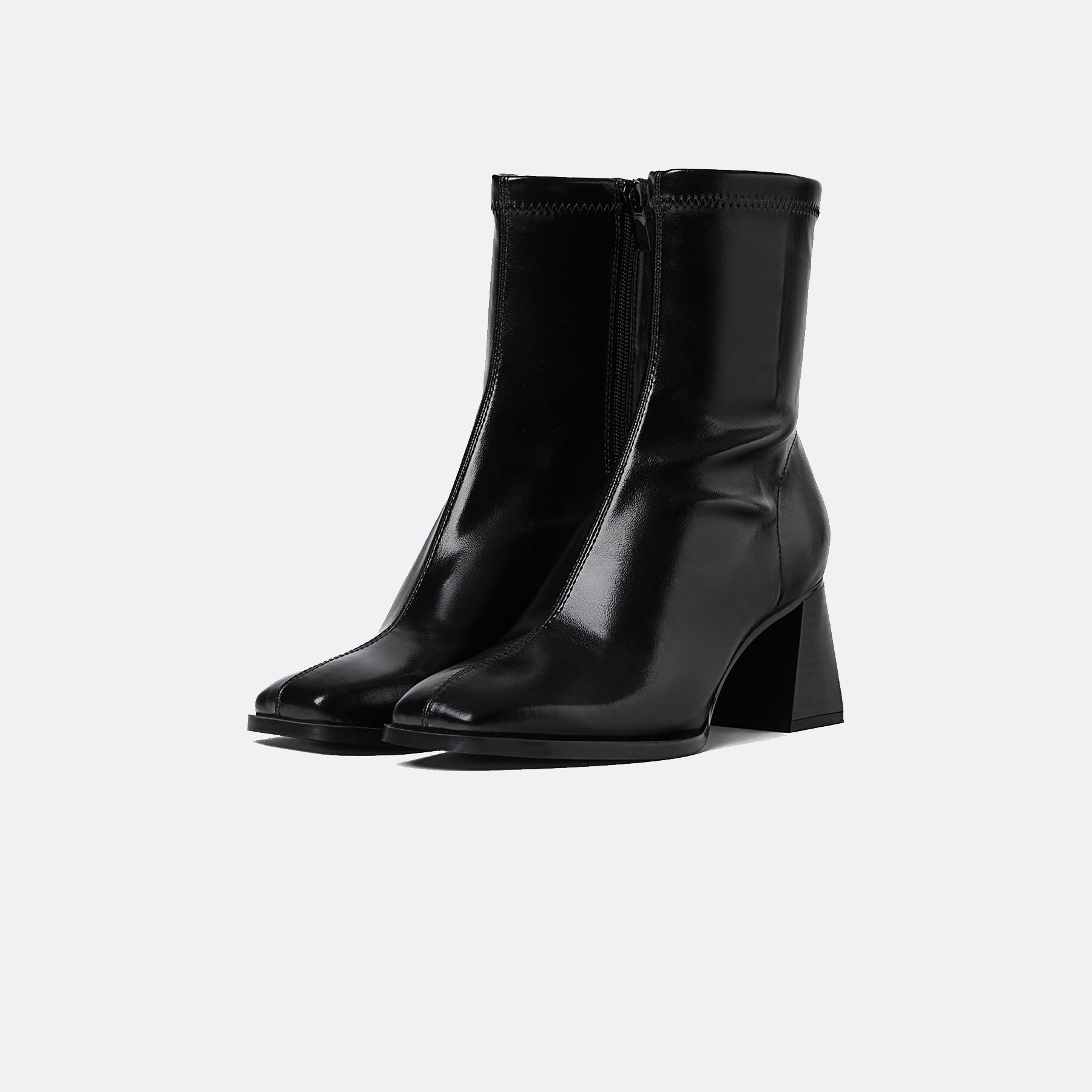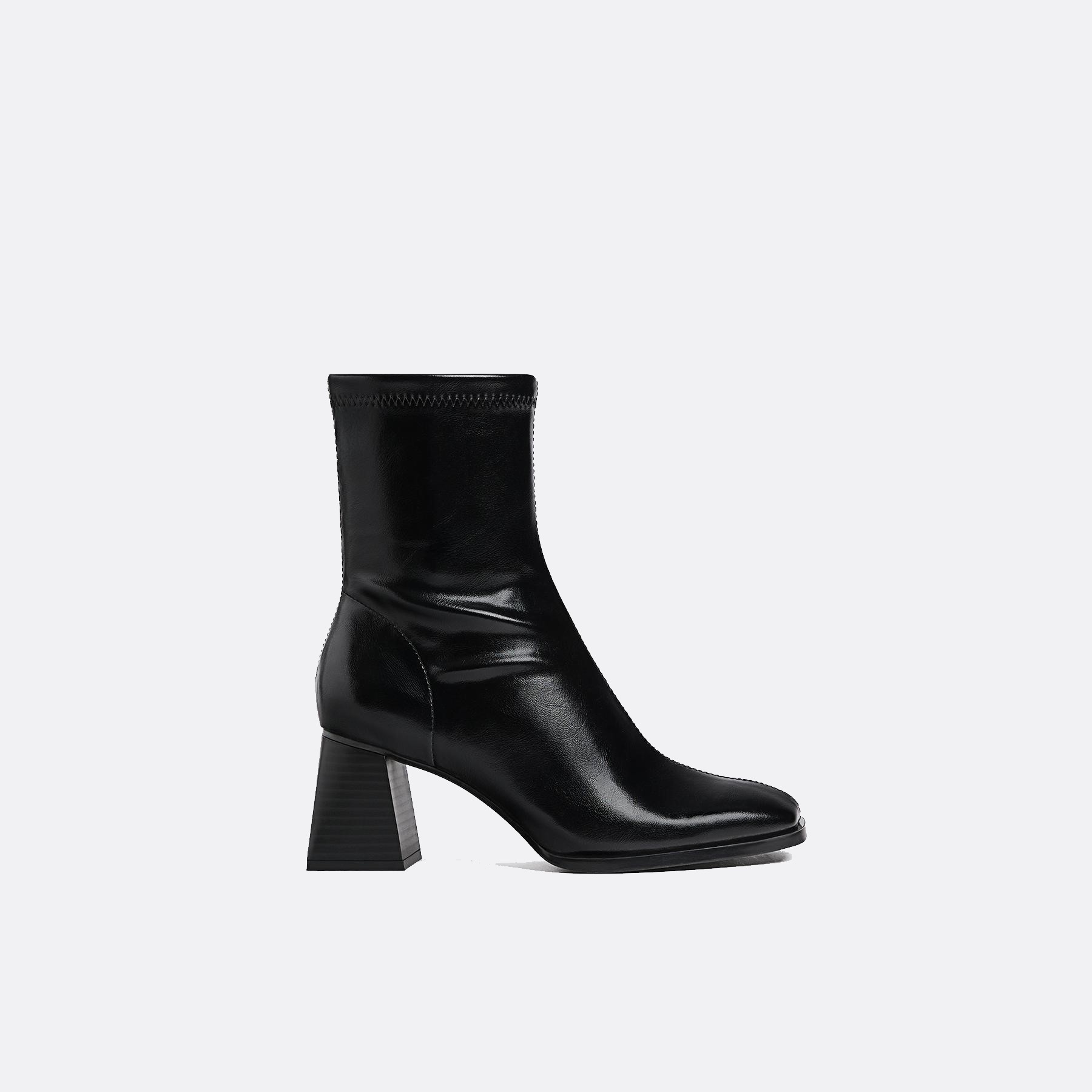 أضيفي لمسة أنيقة وجريئة إلى إطلالتك مع هذا البوت العصري من Stradivarius، المصمم بخامة ستريتش مرنة تلتف حول الكاحل بانسيابية. يأتي بلون أسود كلاسيكي مع كعب عريض بارتفاع 7 سم، وسحاب جانبي عملي، ليمنحك مظهراً أنيقاً وثباتاً طوال اليوم.