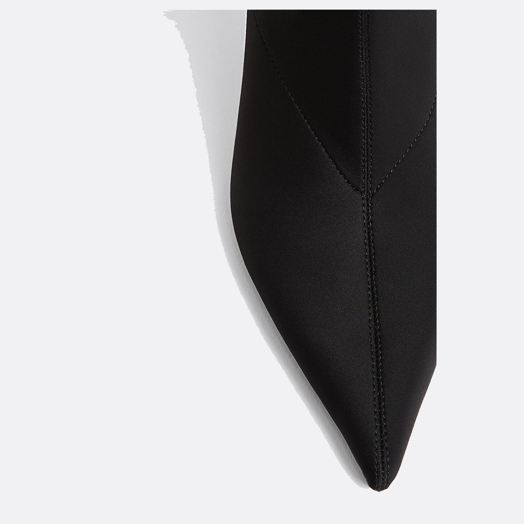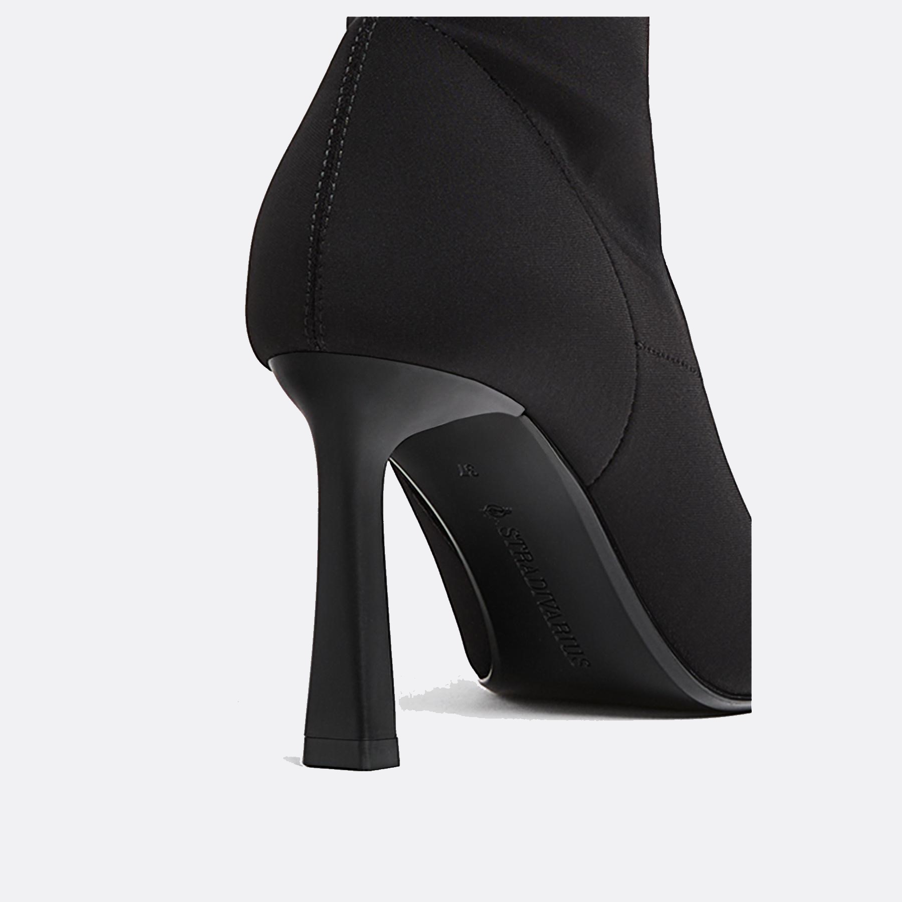 تميّزي بإطلالة جريئة وعصرية مع هذا البوت الفريد من Stradivarius، المصمم بتفاصيل زِمبالية أنيقة ونوافذ جانبية تضيف لمسة غير تقليدية. يأتي بلون أسود كلاسيكي مع كعب عريض بارتفاع 8.5 سم، ليمنحك مظهراً لافتاً وثباتاً في كل خطوة.
